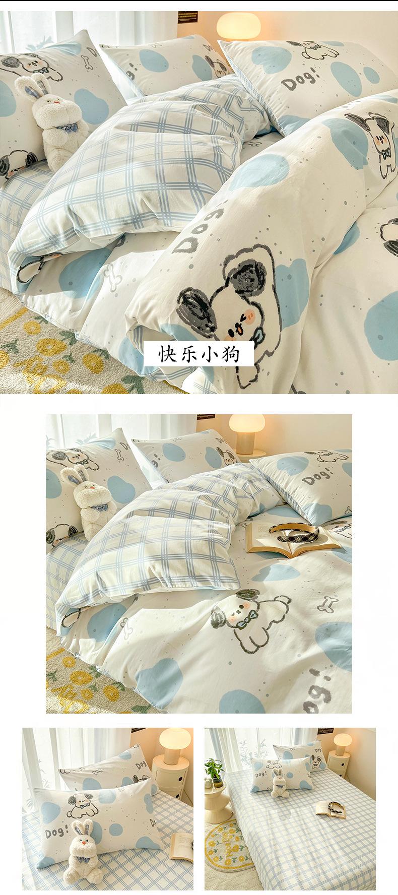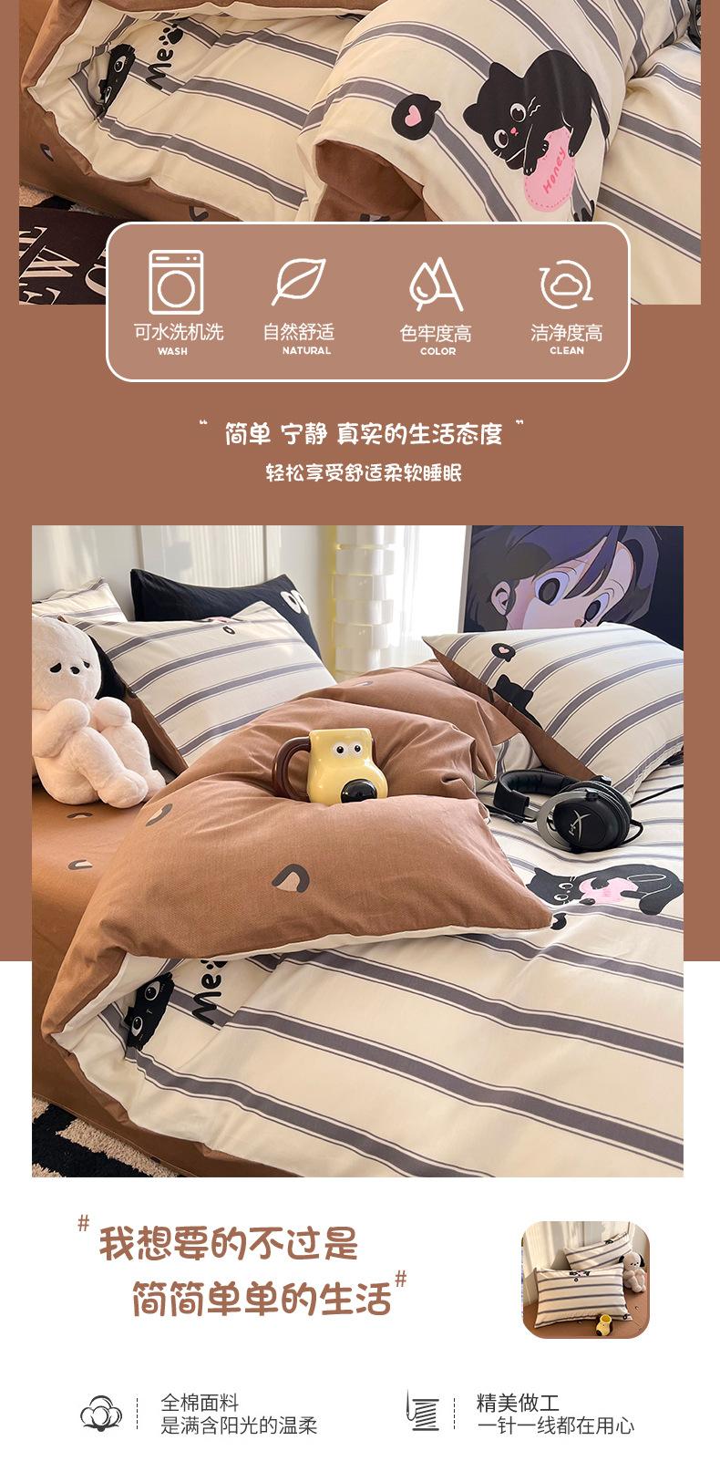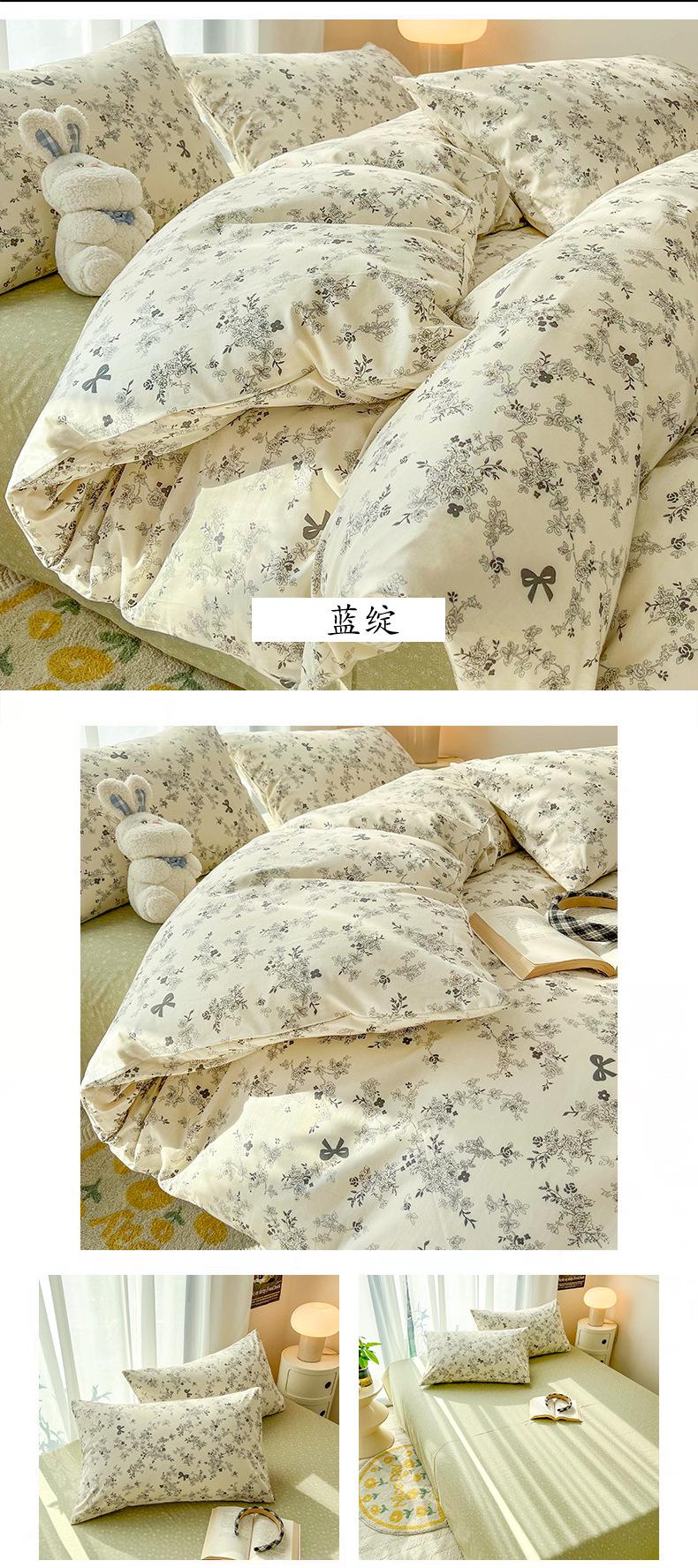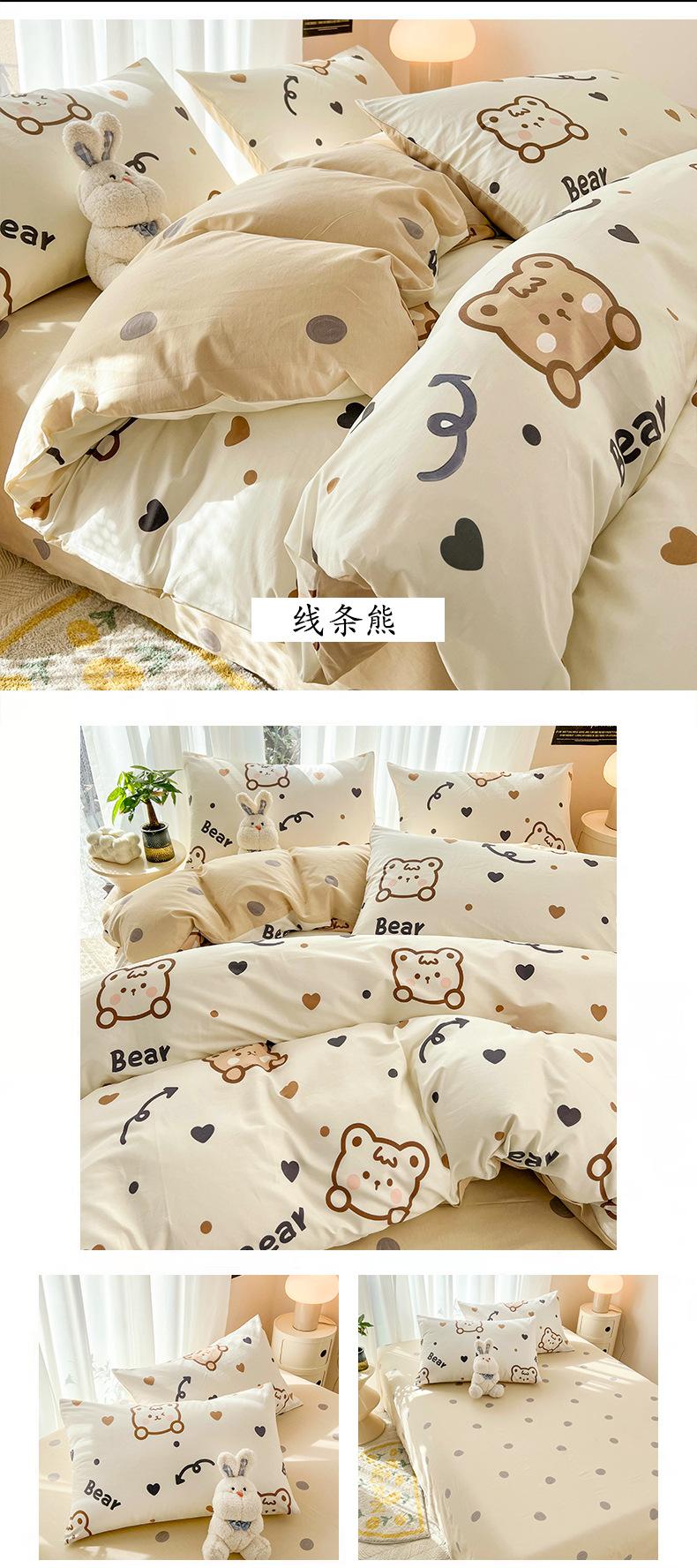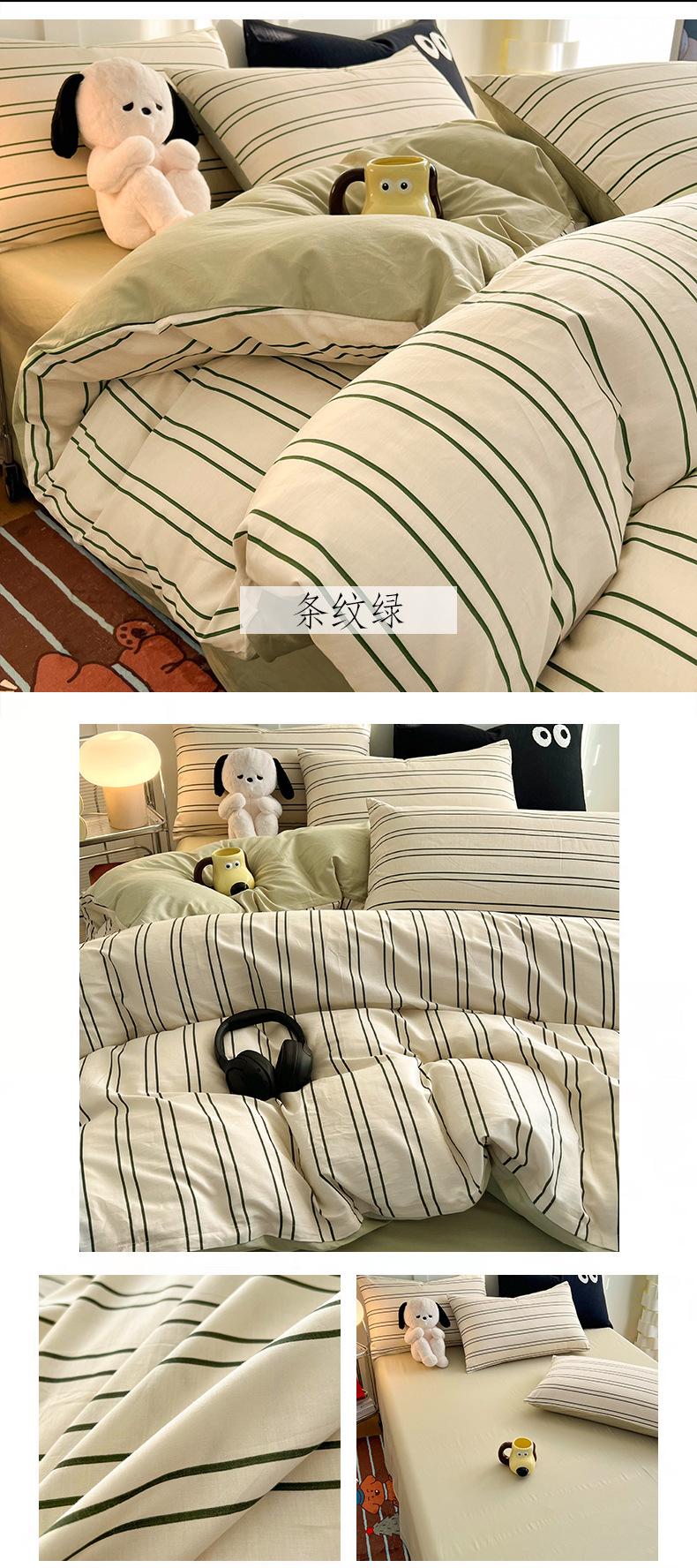 Juego de cama de algodón puro de cuatro piezas, sábana y edredón, sábana ajustable individual para dormitorio de estudiantes, juego de tres piezas.