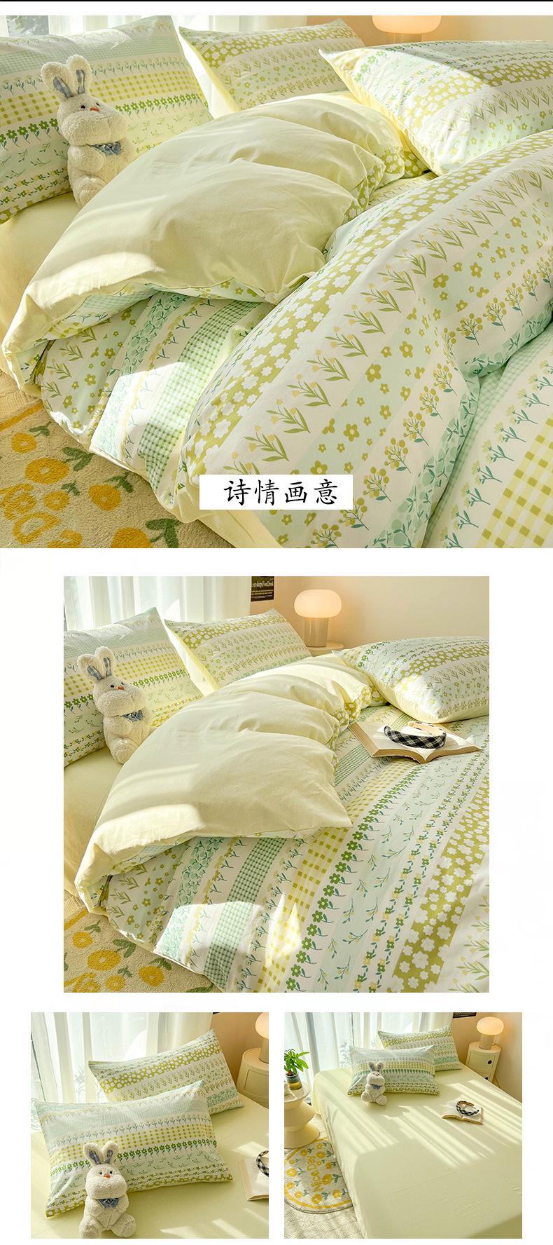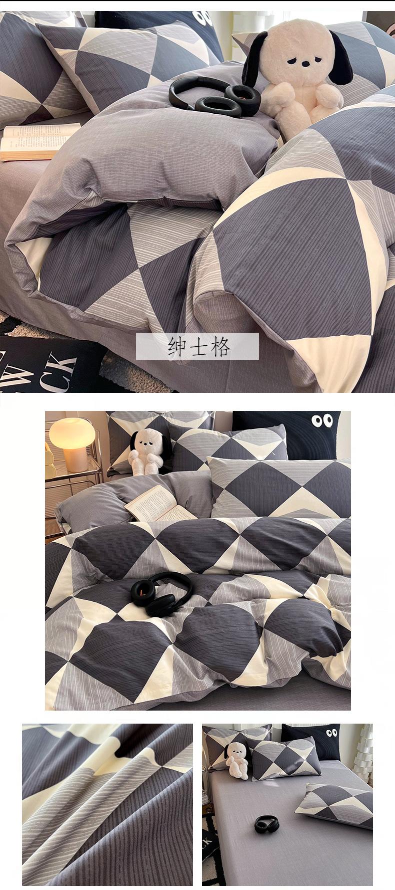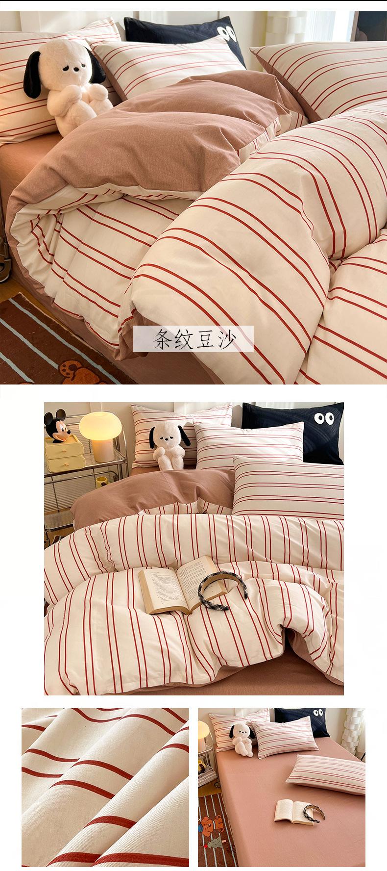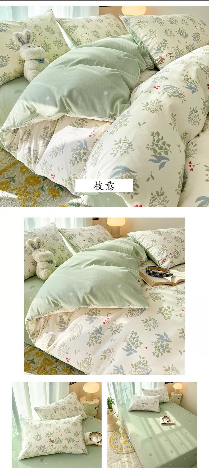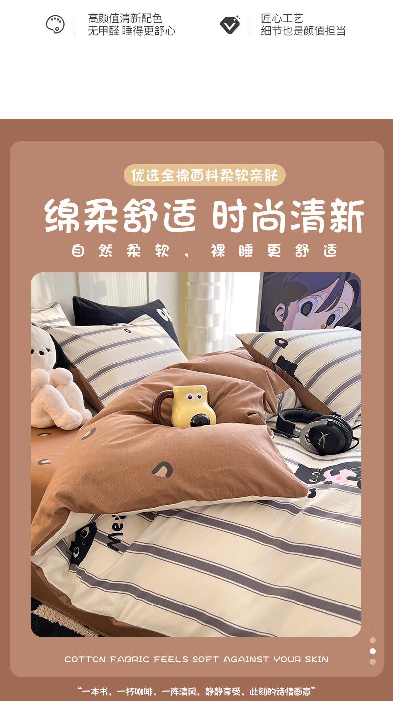 Juego de cama de algodón puro de cuatro piezas, sábana y edredón, sábana ajustable individual para dormitorio de estudiantes, juego de tres piezas.