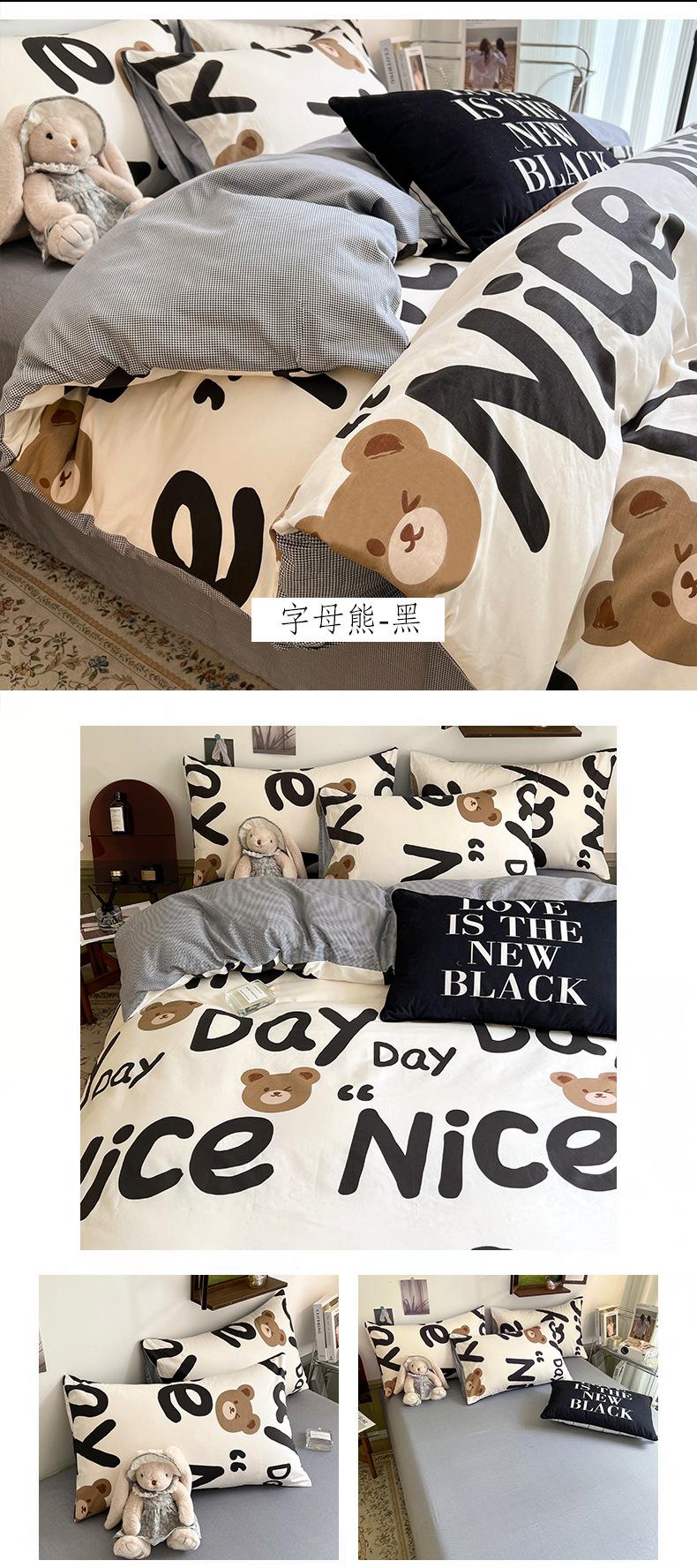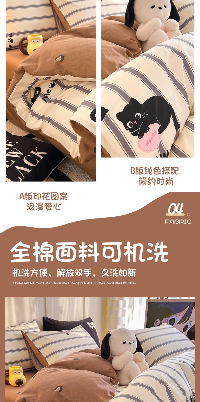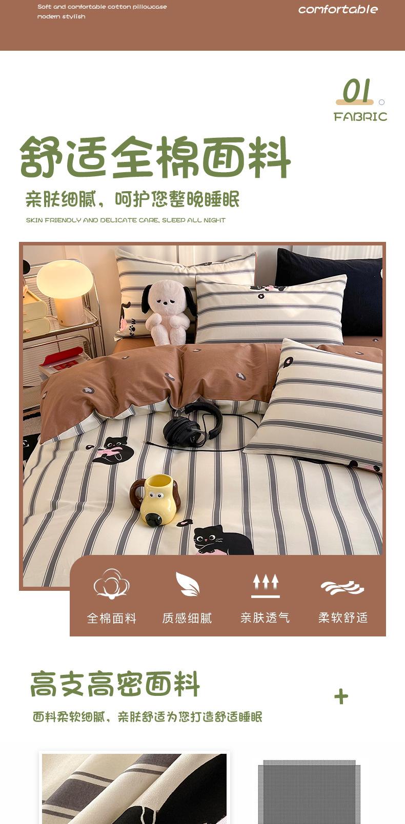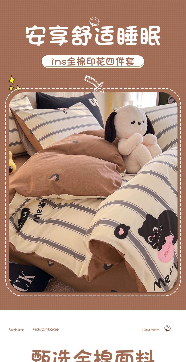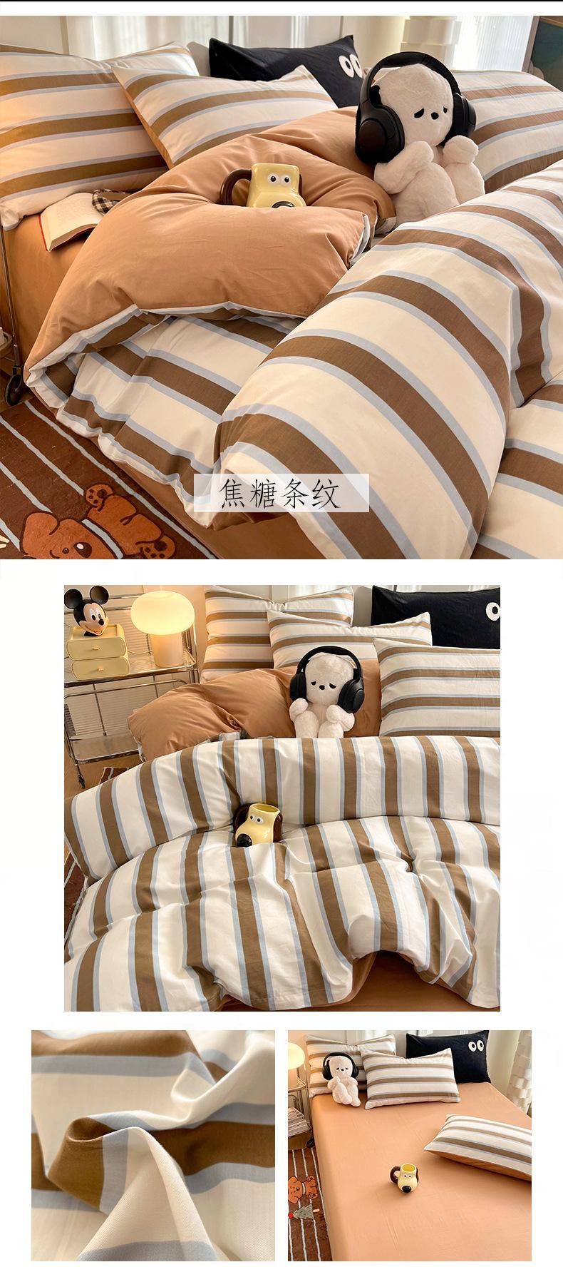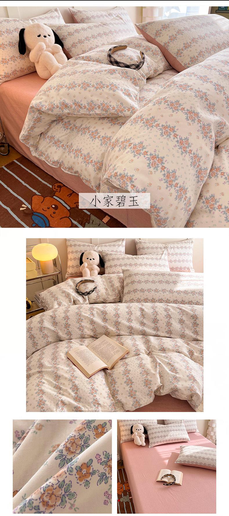 Juego de cama de algodón puro de cuatro piezas, sábana y edredón, sábana ajustable individual para dormitorio de estudiantes, juego de tres piezas.