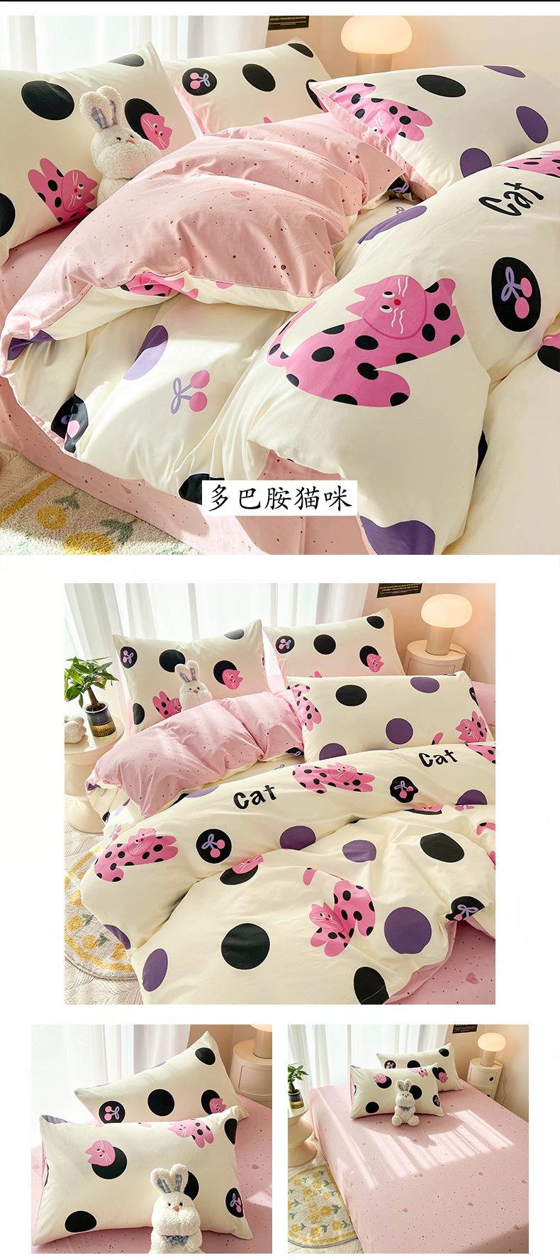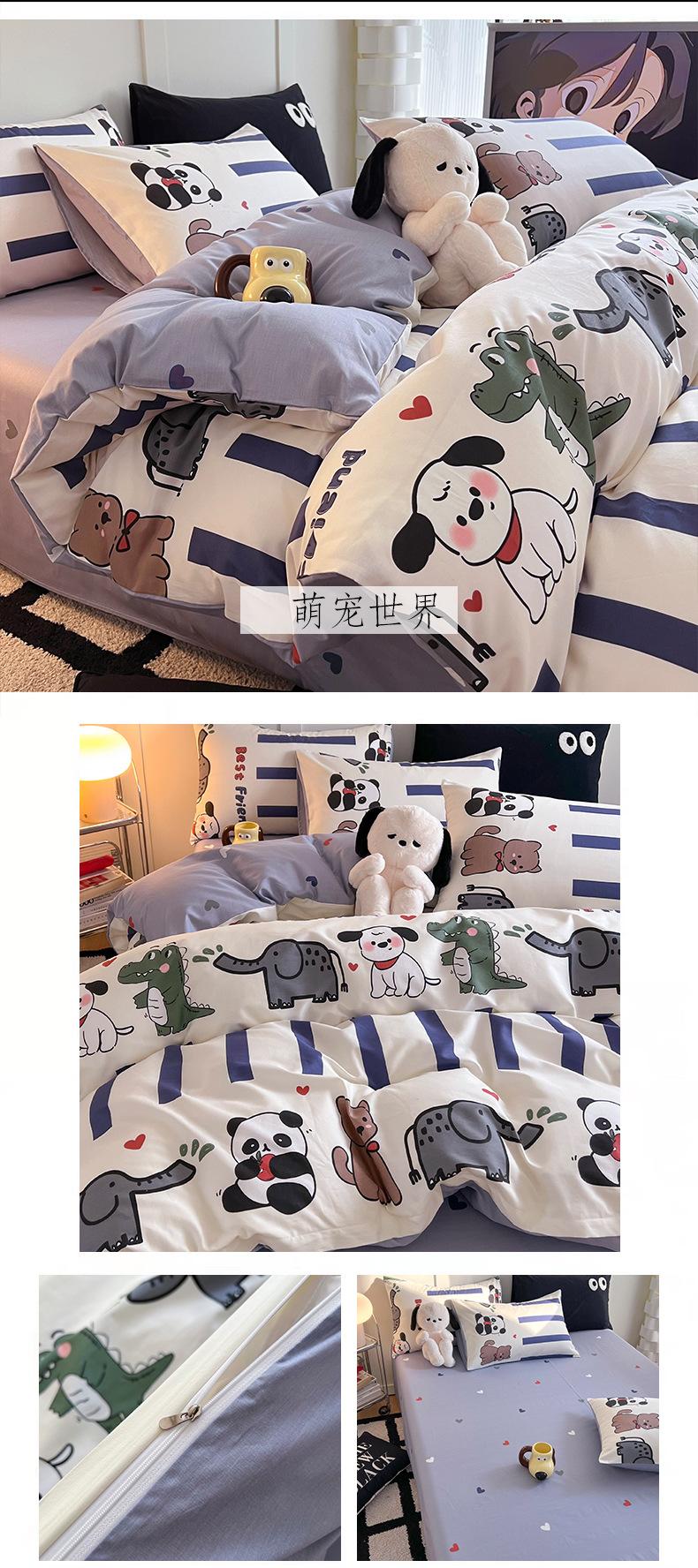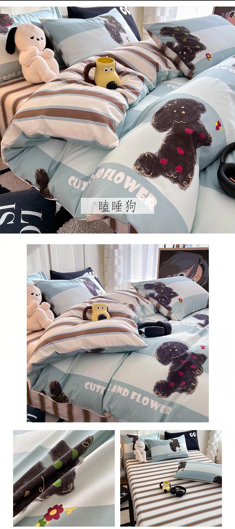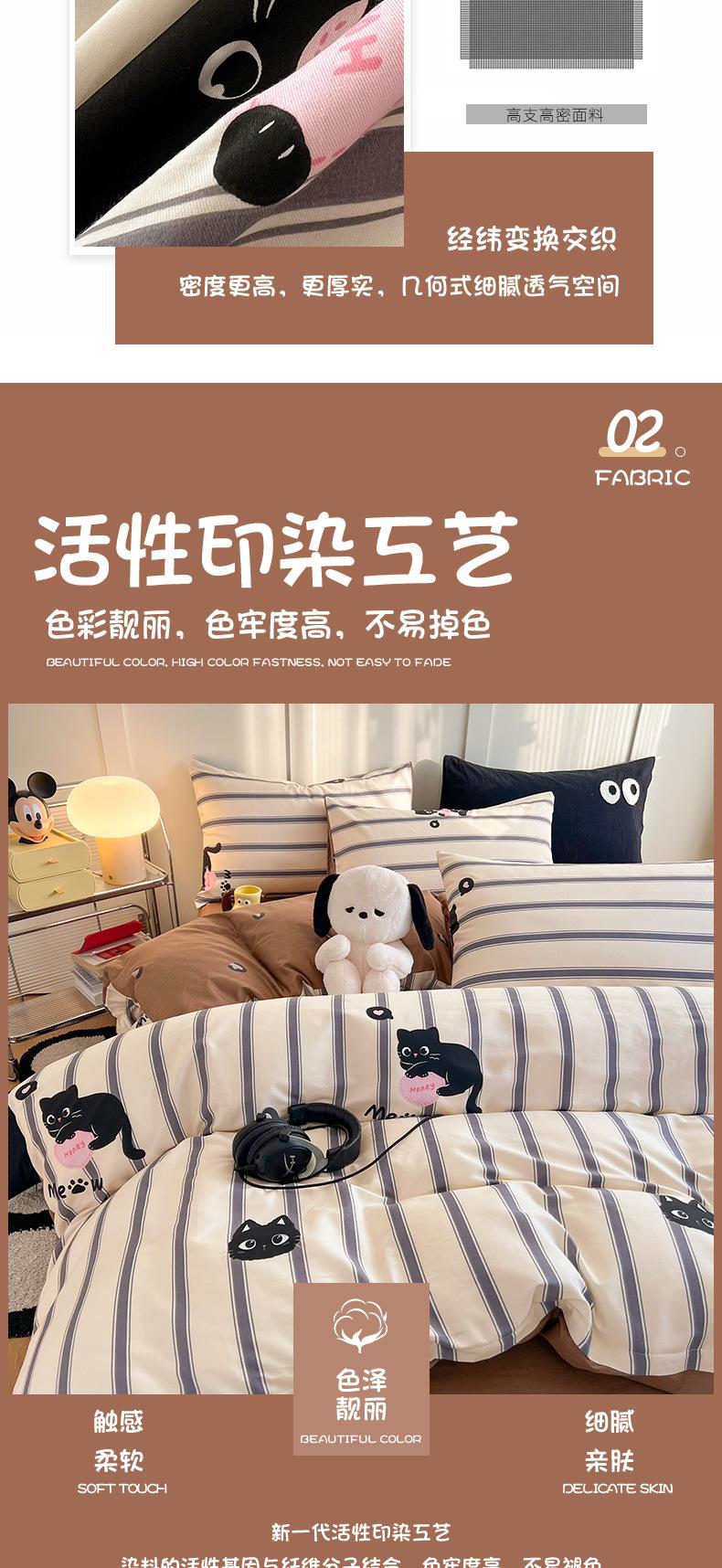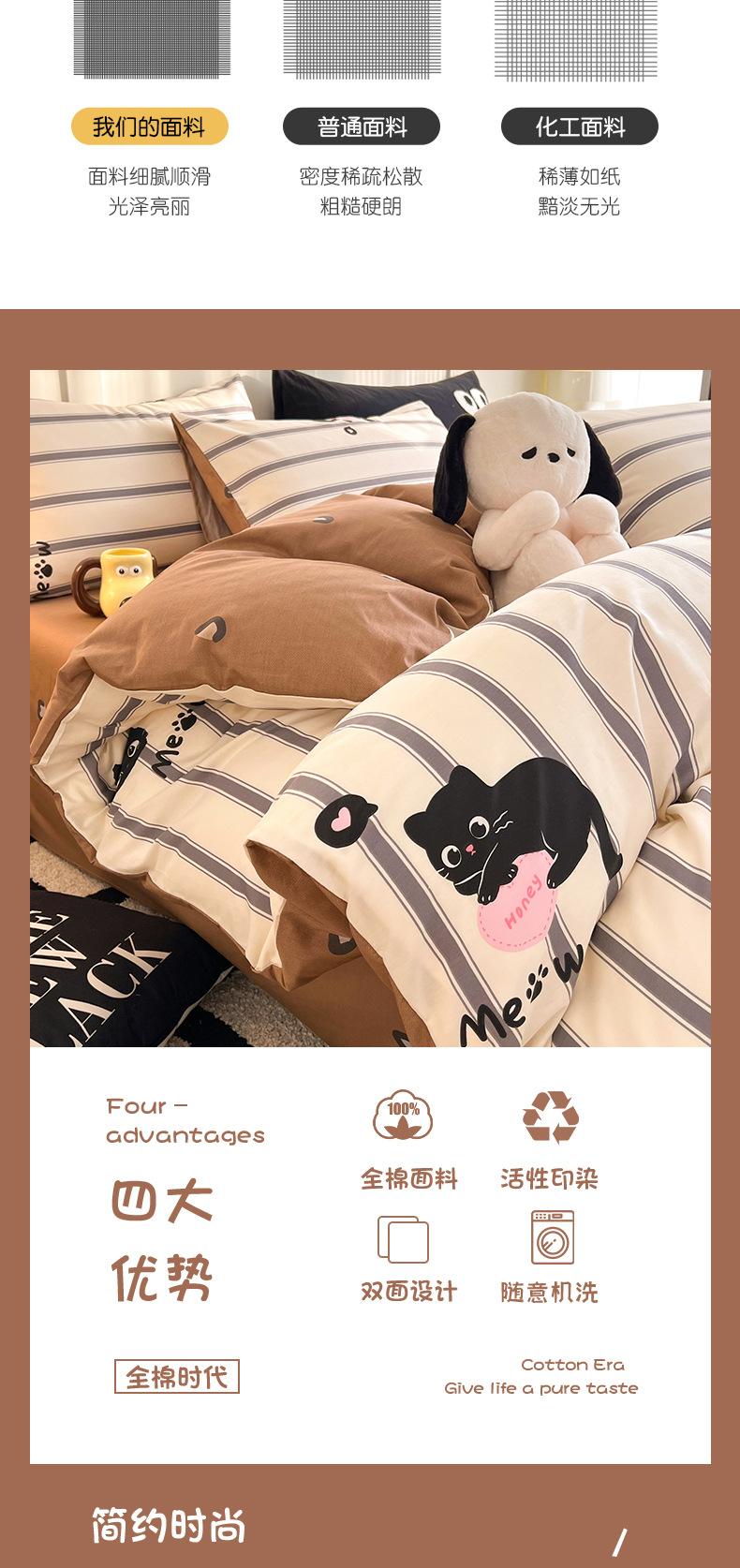 Juego de cama de algodón puro de cuatro piezas, sábana y edredón, sábana ajustable individual para dormitorio de estudiantes, juego de tres piezas.