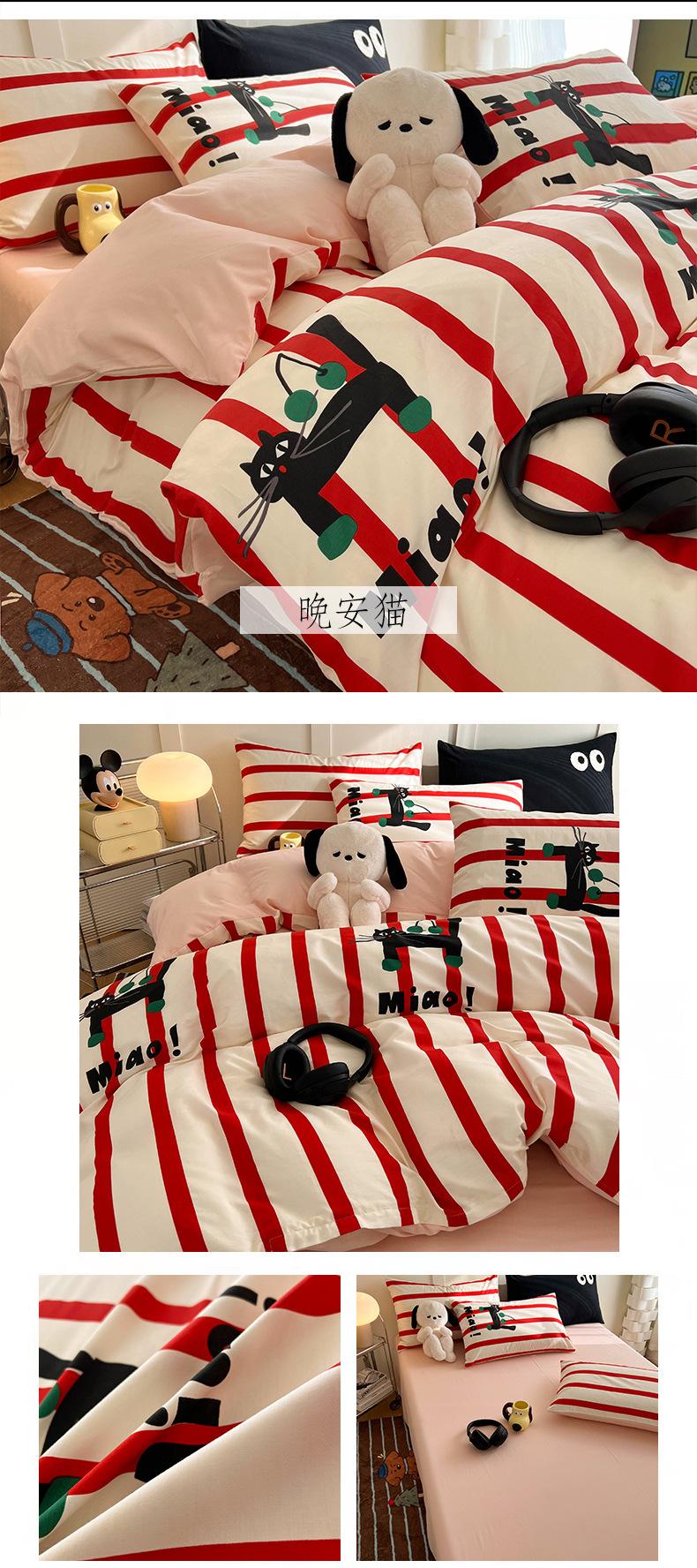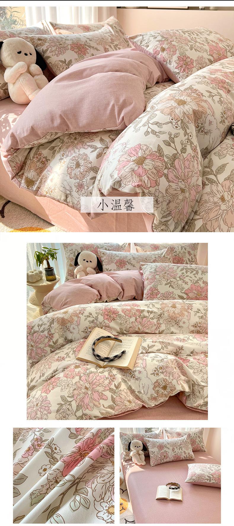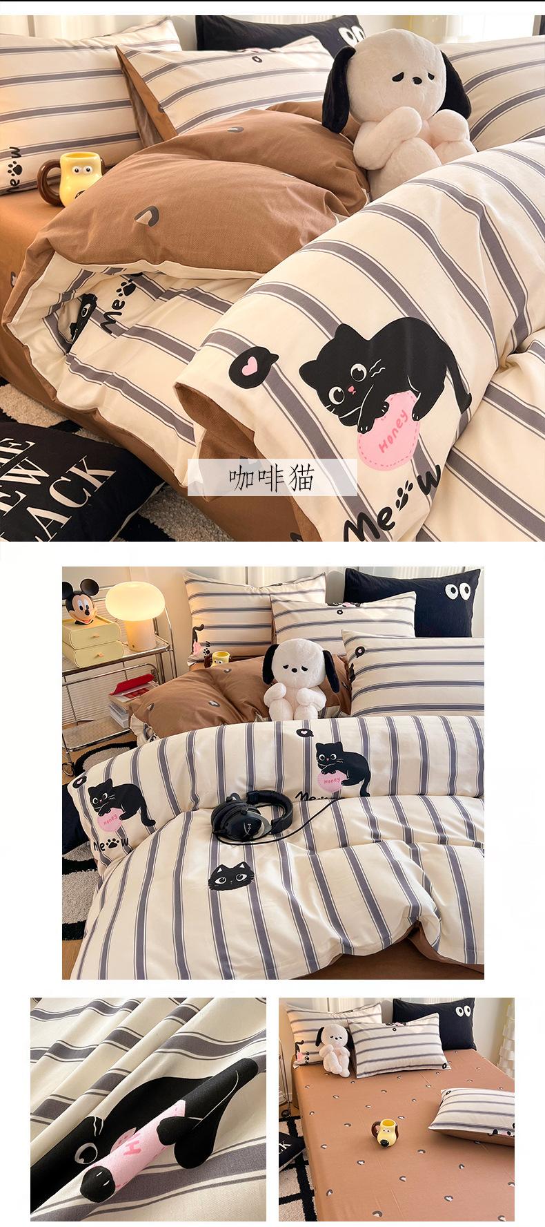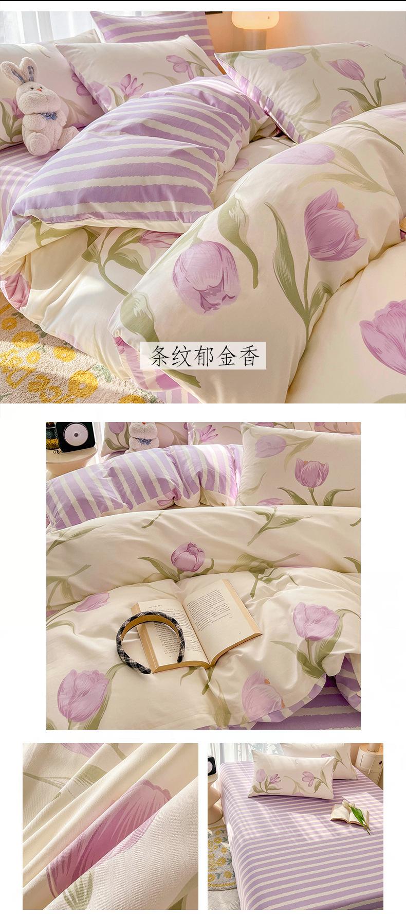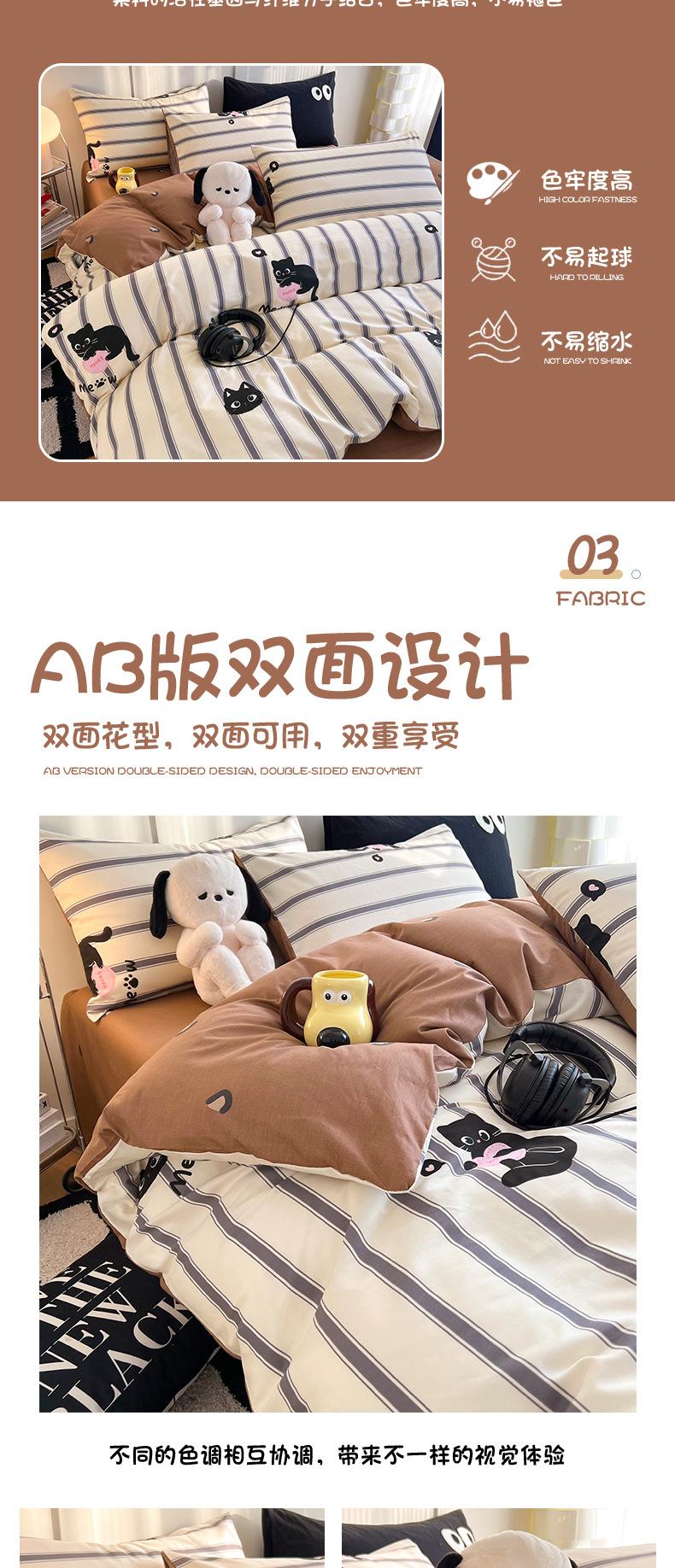 Juego de cama de algodón puro de cuatro piezas, sábana y edredón, sábana ajustable individual para dormitorio de estudiantes, juego de tres piezas.