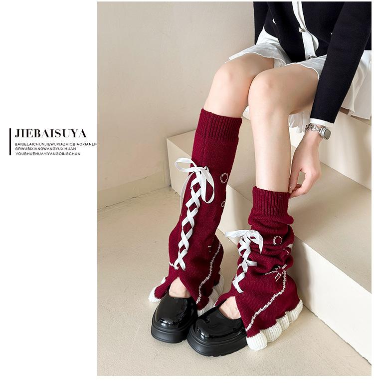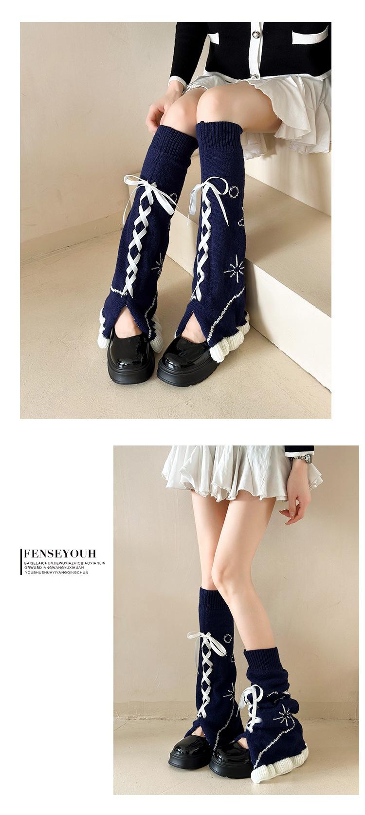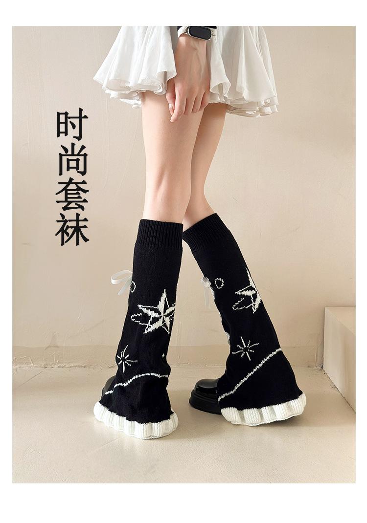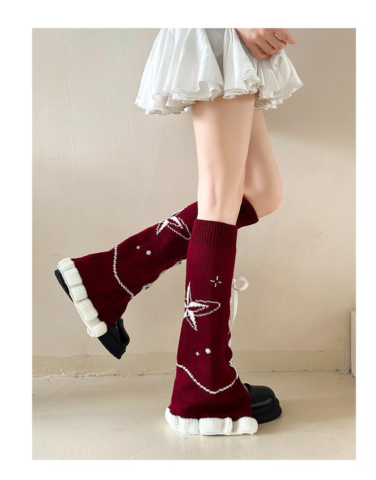 Calcetines japoneses Lolita de otoño/invierno con cinta, estrella, cubrepiernas, cuerno, lápiz labial, cubrepantorrillas, calcetines de punto apilados de subcultura