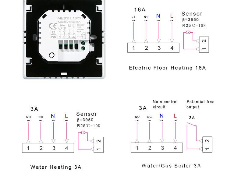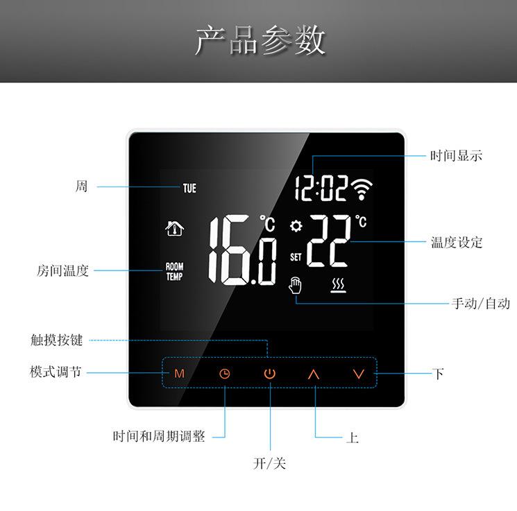 Dado que el termostato tiene un panel de espejo de cristal, el color puede cambiar en diferentes entornos. Cuando lo monta en la pared y aplica energía, se vuelve negro oscuro.