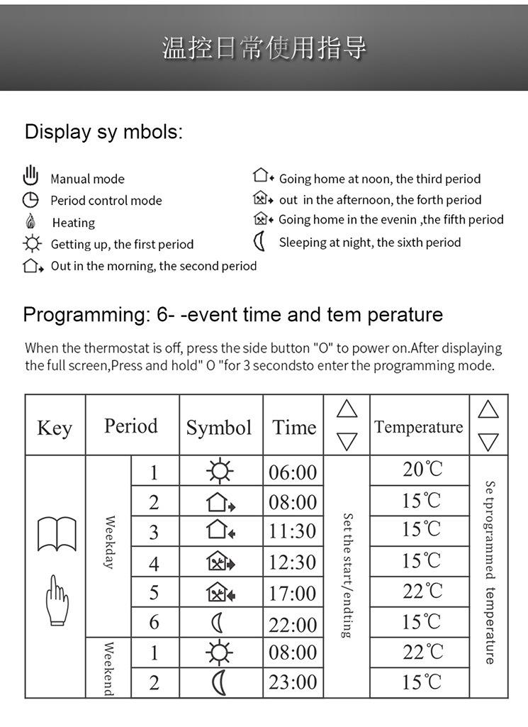 【Programable Semanalmente】El termostato admite diferentes configuraciones de temperatura con 6 modos horarios por día.