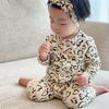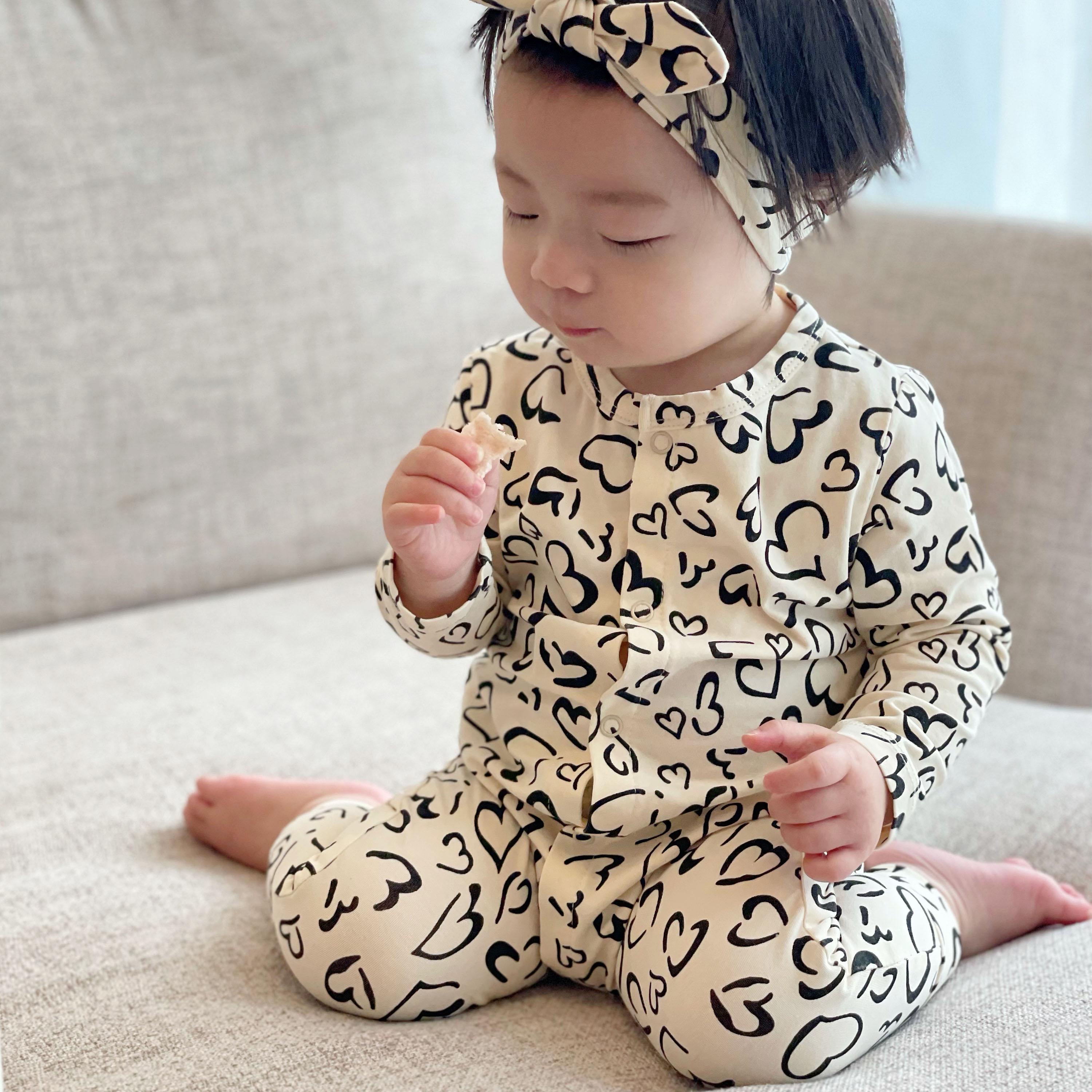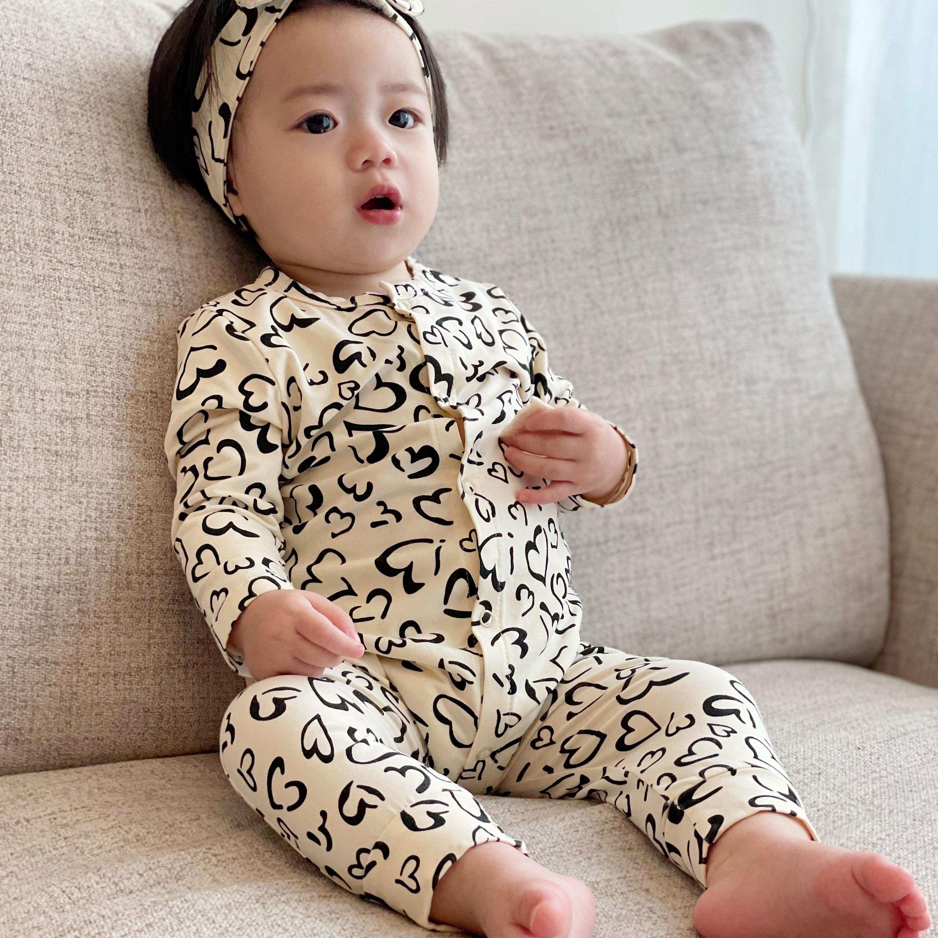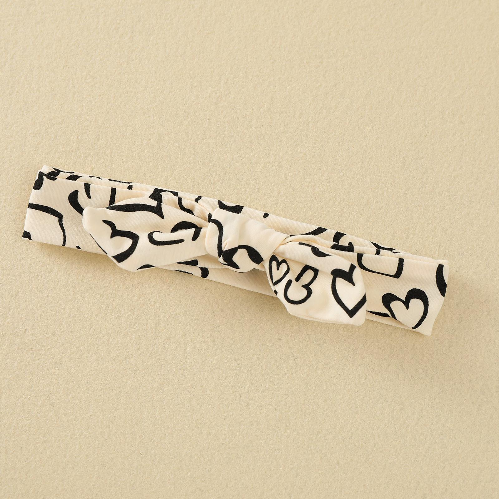 Mameluco con estampado de corazones de albaricoque con accesorios para el cabello, sin abertura en la entrepierna