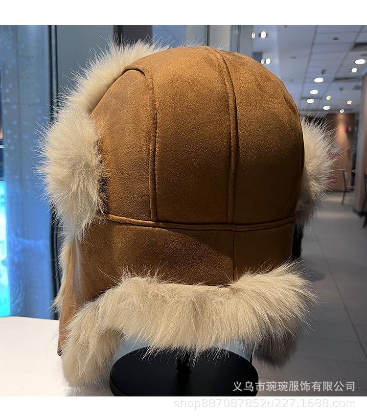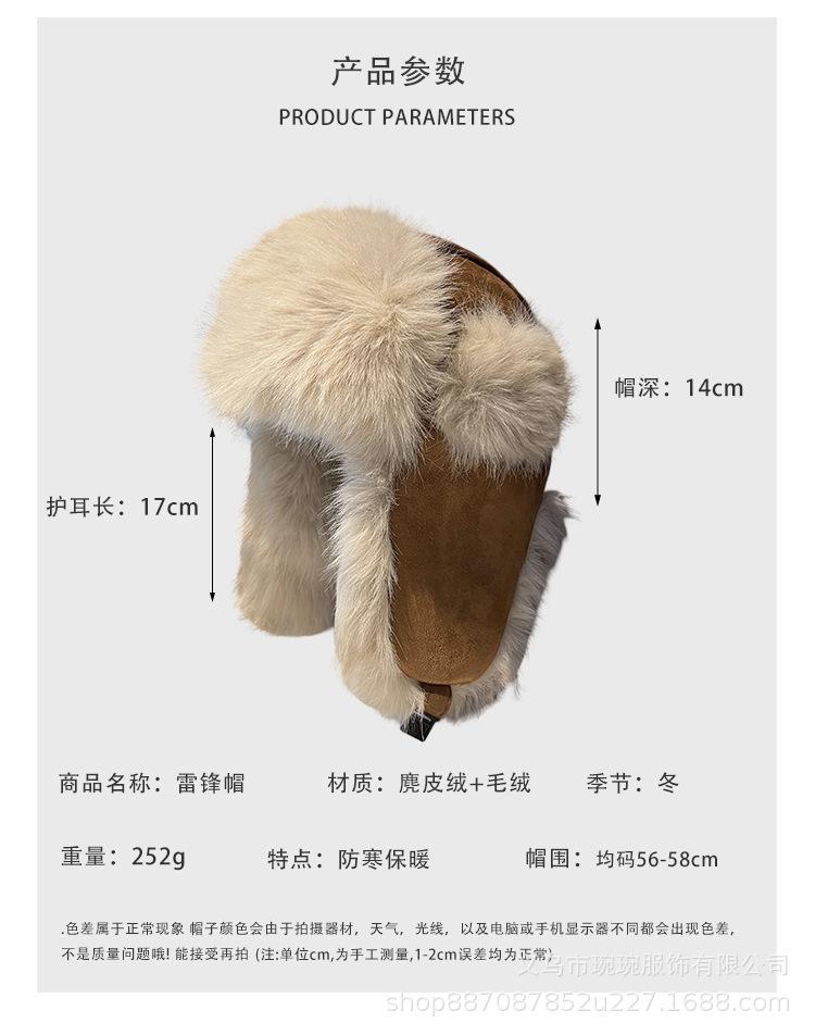 Sombrero Lei Feng para Hombre y Mujer Invierno Suede Sombrero de Orejeras a Prueba de Frío Piel Noreste Algodón para Exteriores Sombrero para Ciclismo al Aire Libre Esquí