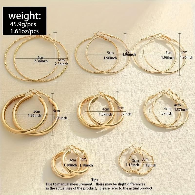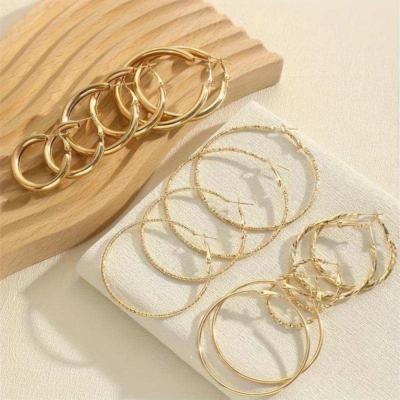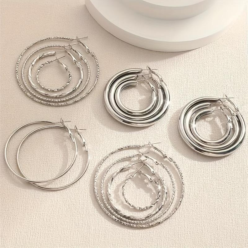 Pendientes colgantes circulares de metal exagerados y combinables de 8 pares, ideales para la moda europea y americana.