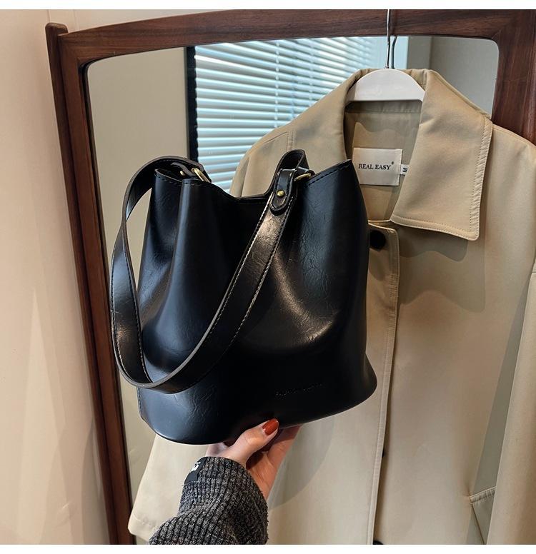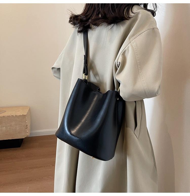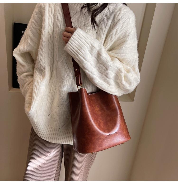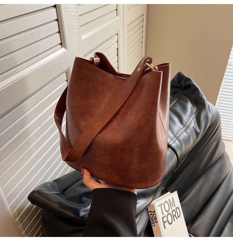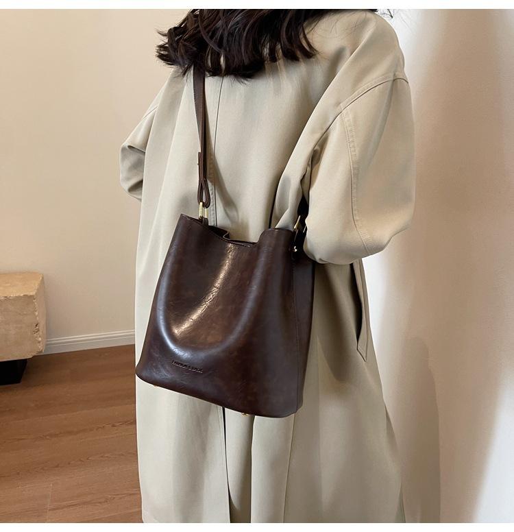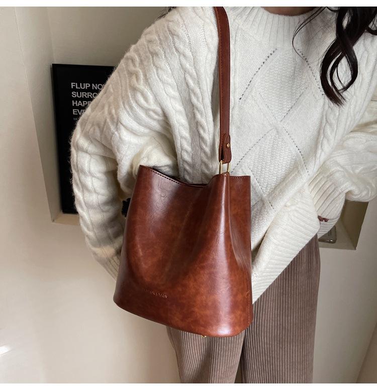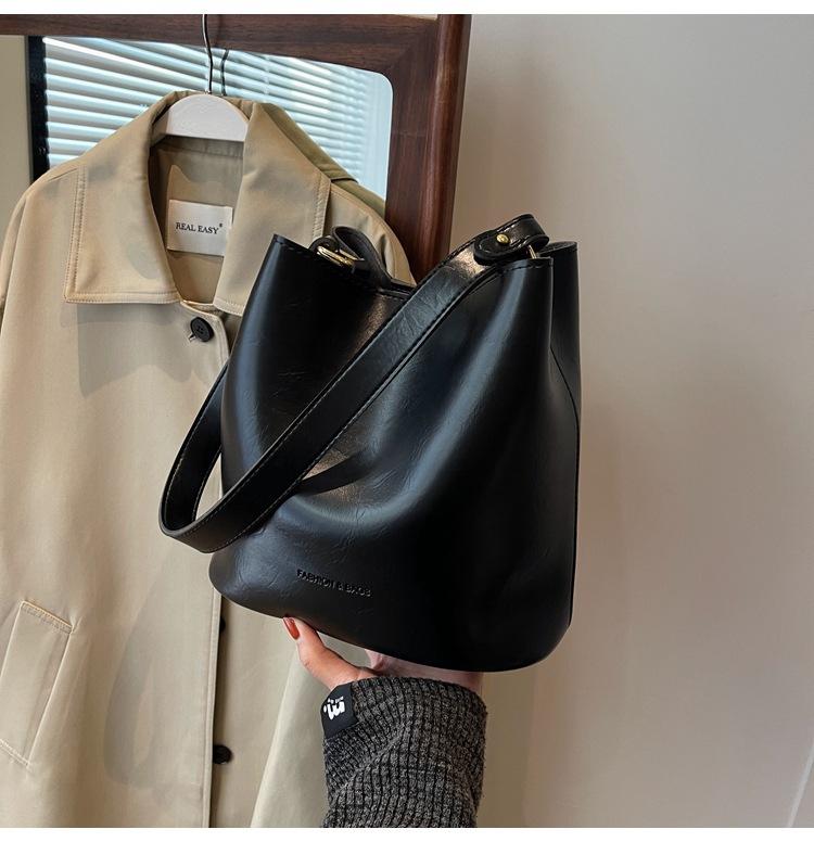 Bolso de gran capacidad para mujer, nuevo bolso de cubo de otoño e invierno de 2023, bolso bandolera retro sencillo y versátil para todo tipo de ocasiones.