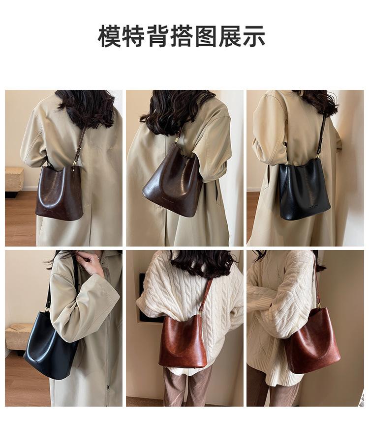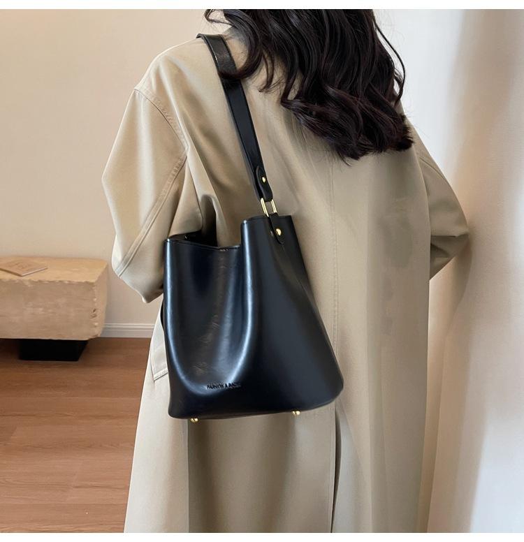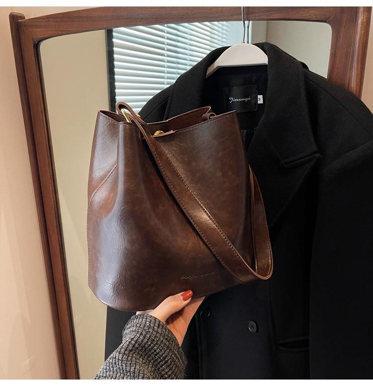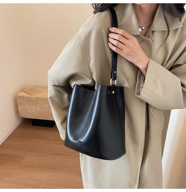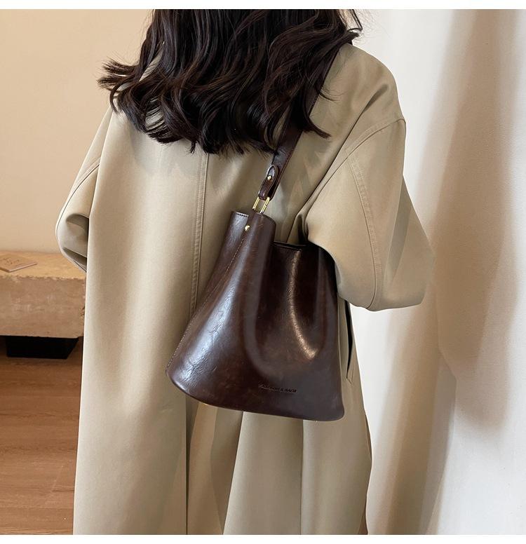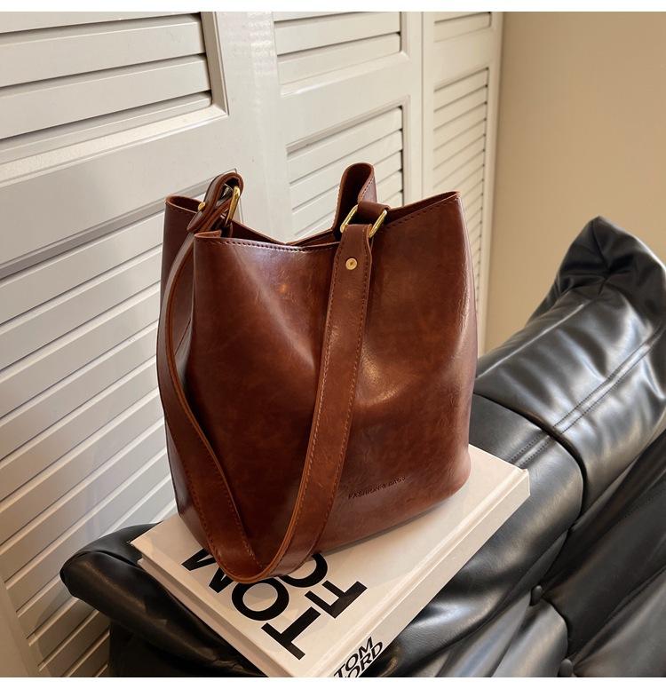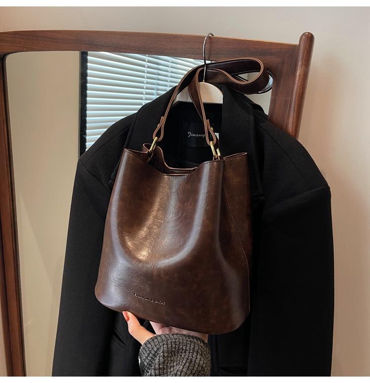 Bolso de gran capacidad para mujer, nuevo bolso de cubo de otoño e invierno de 2023, bolso bandolera retro sencillo y versátil para todo tipo de ocasiones.