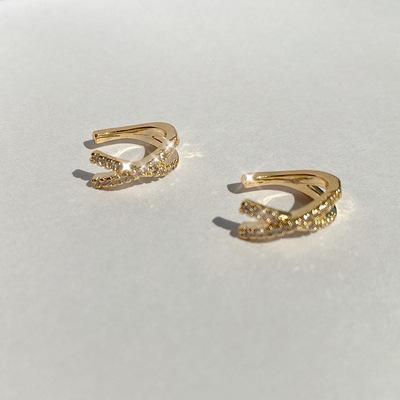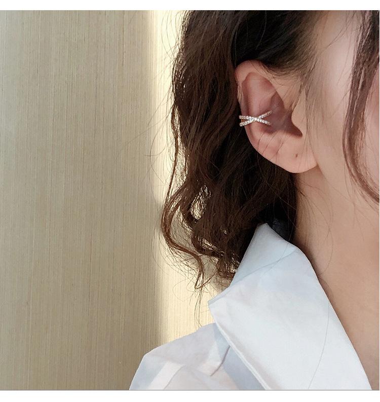 Diseño que no se desvanece clip para la oreja de cruz con diamantes completos clip para el hueso de la oreja femenino aretes pequeños simples ajustables temperamento sin perforaciones