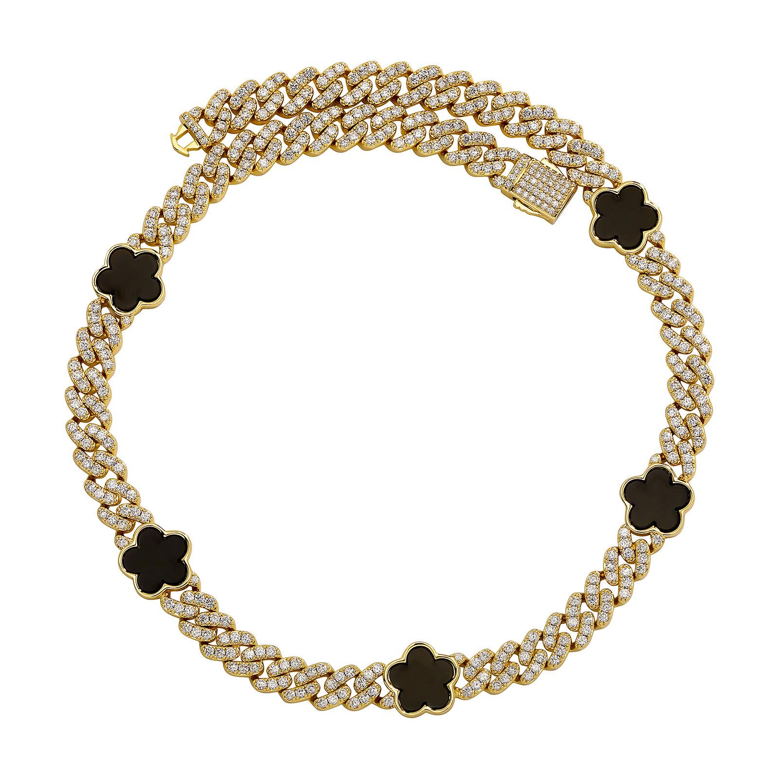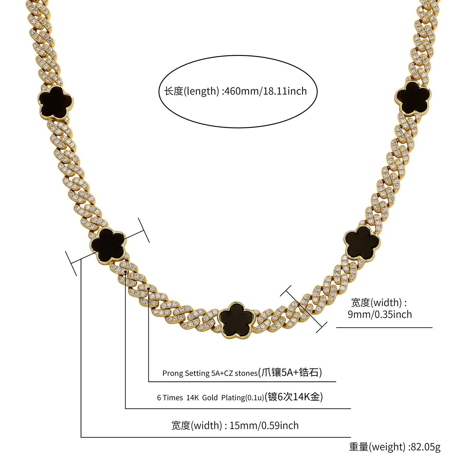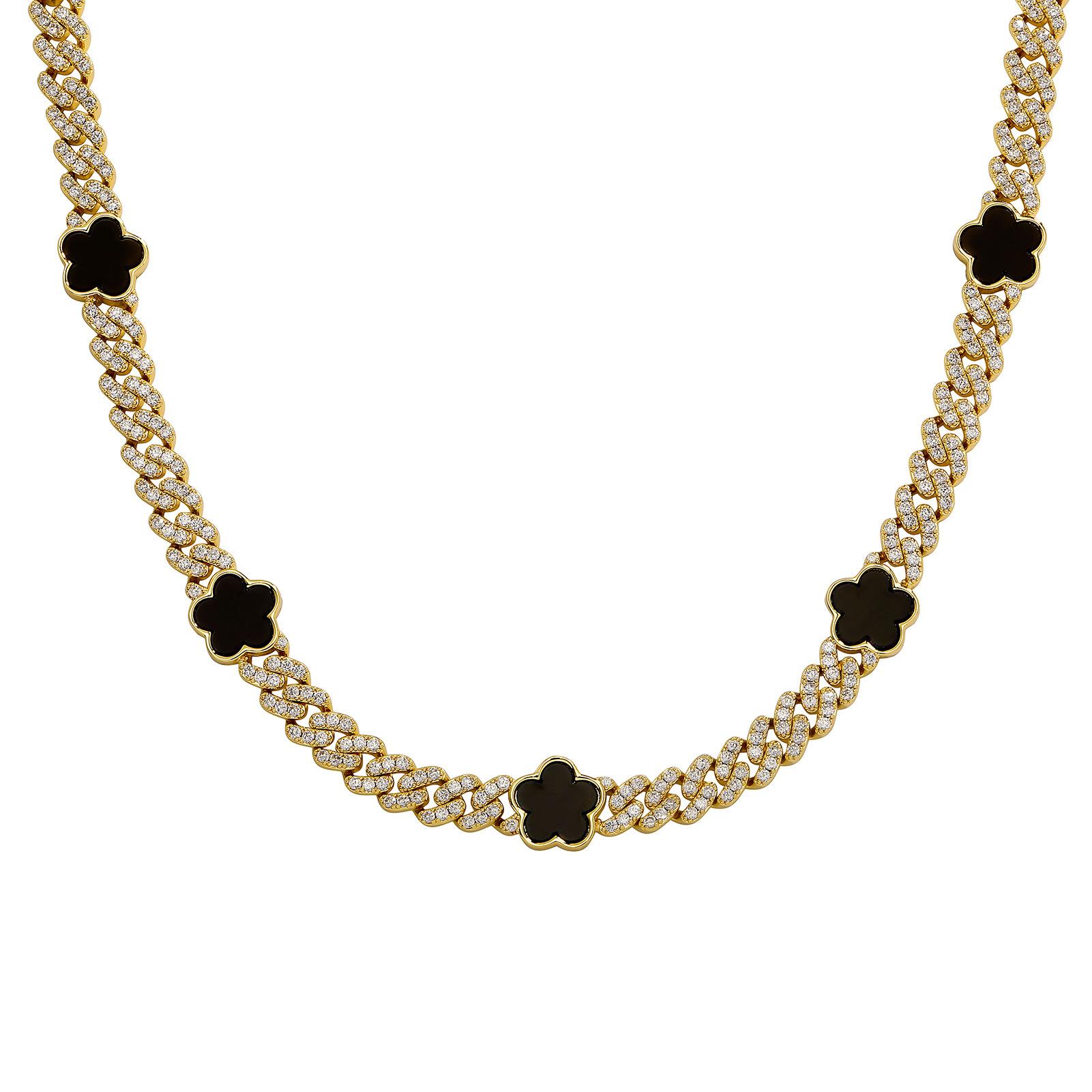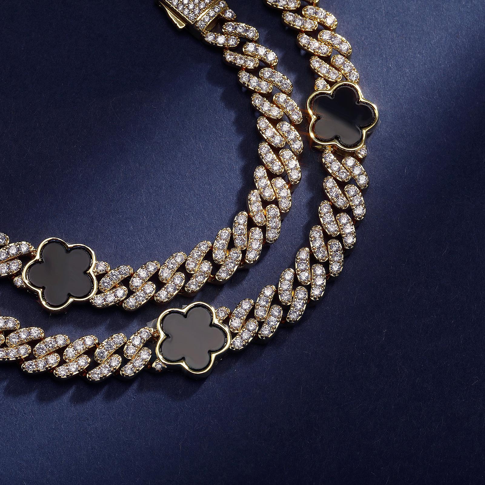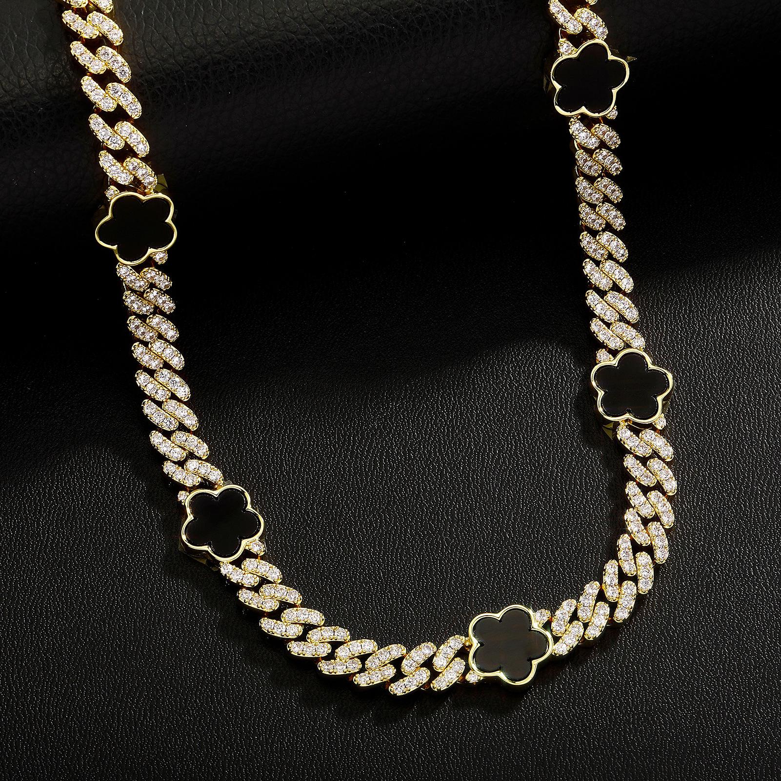 Collar cubano con hebilla de resorte de circonita de cinco pétalos de hip-hop europeo y americano de 15 mm con personalidad INS, joyería de moda para hombres al por mayor