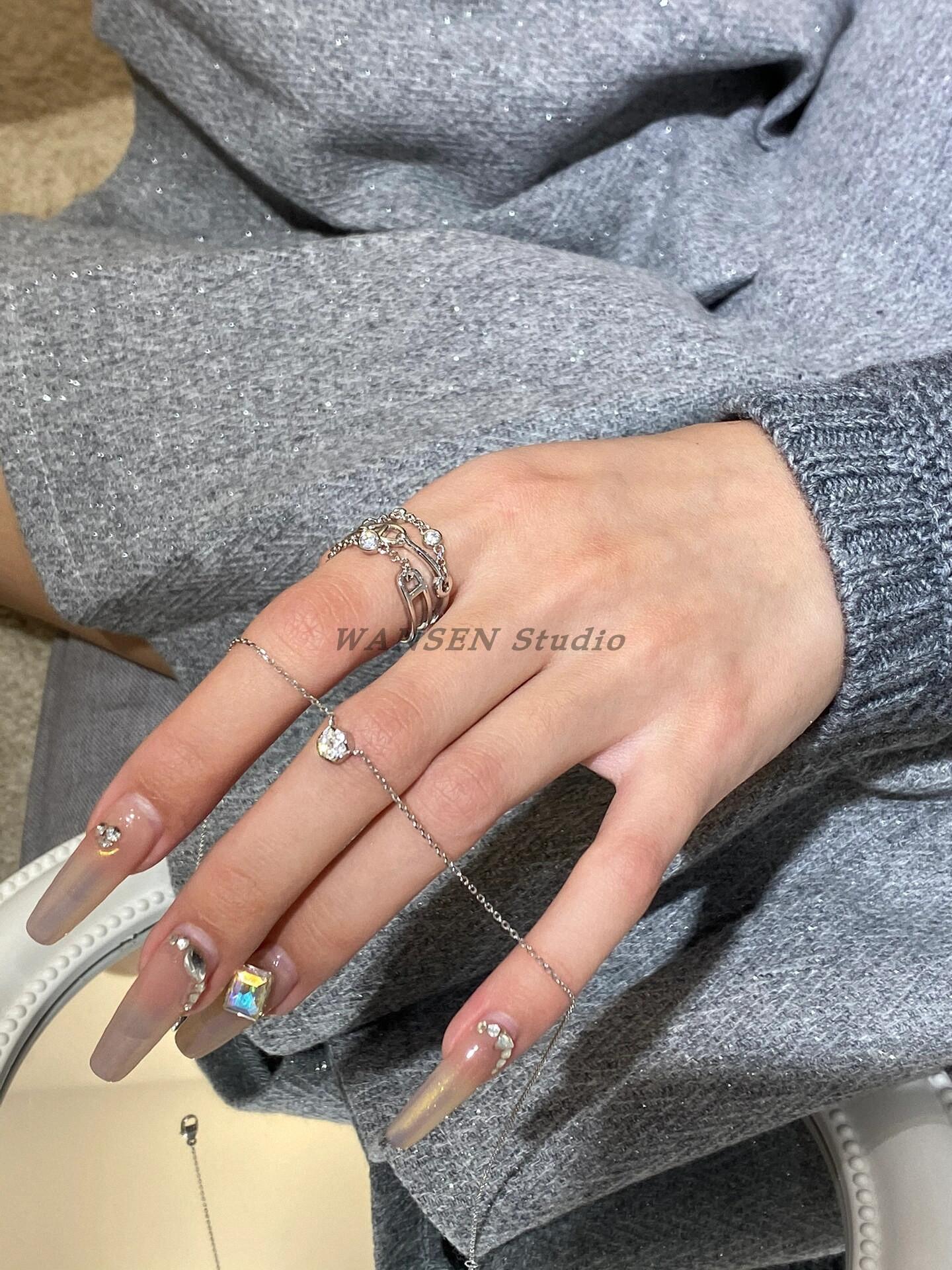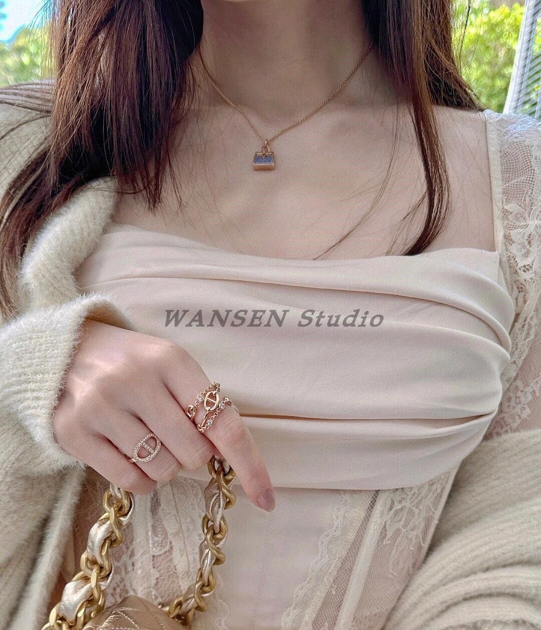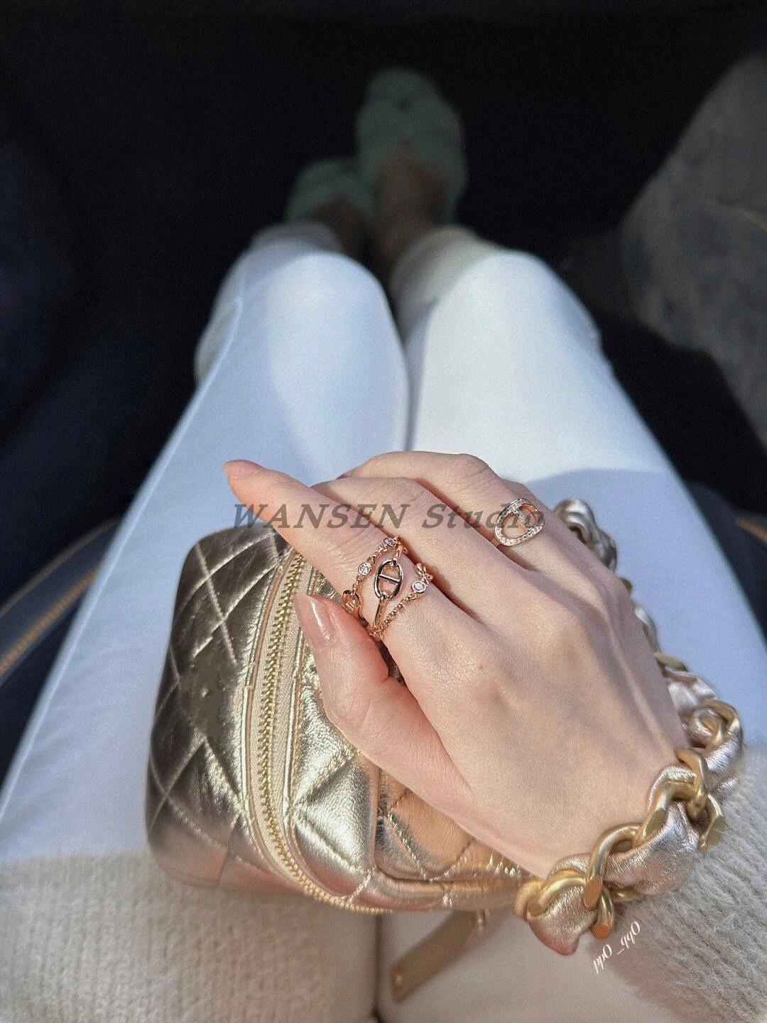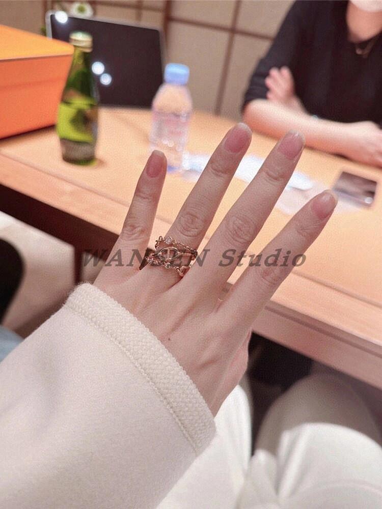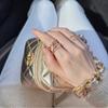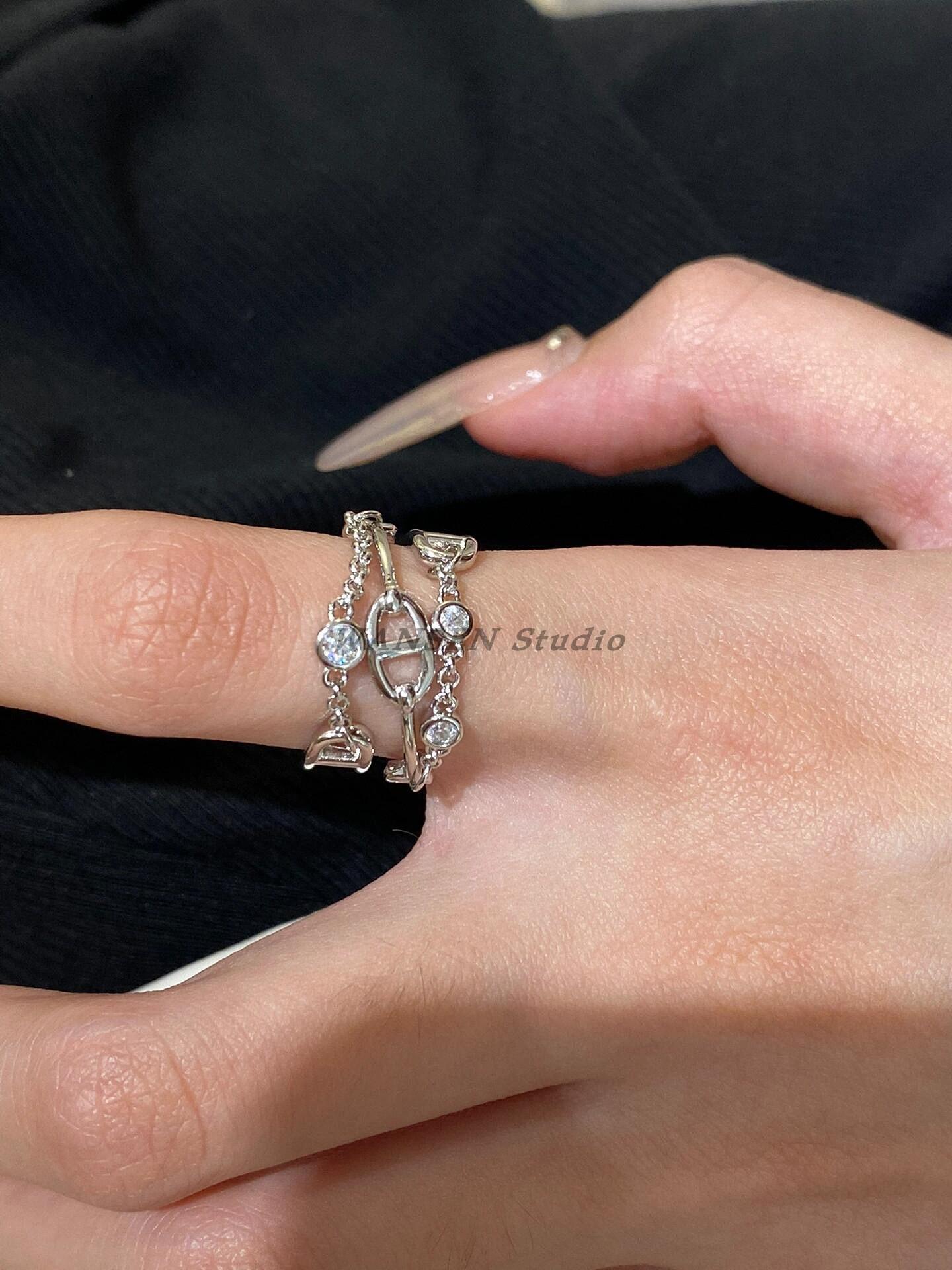 Anillo de cadena de lujo ligero con forma de nariz de cerdo, estilo europeo y americano, con diseño cruzado de tres capas y diamantes, cadena gruesa, abierto para mujer.