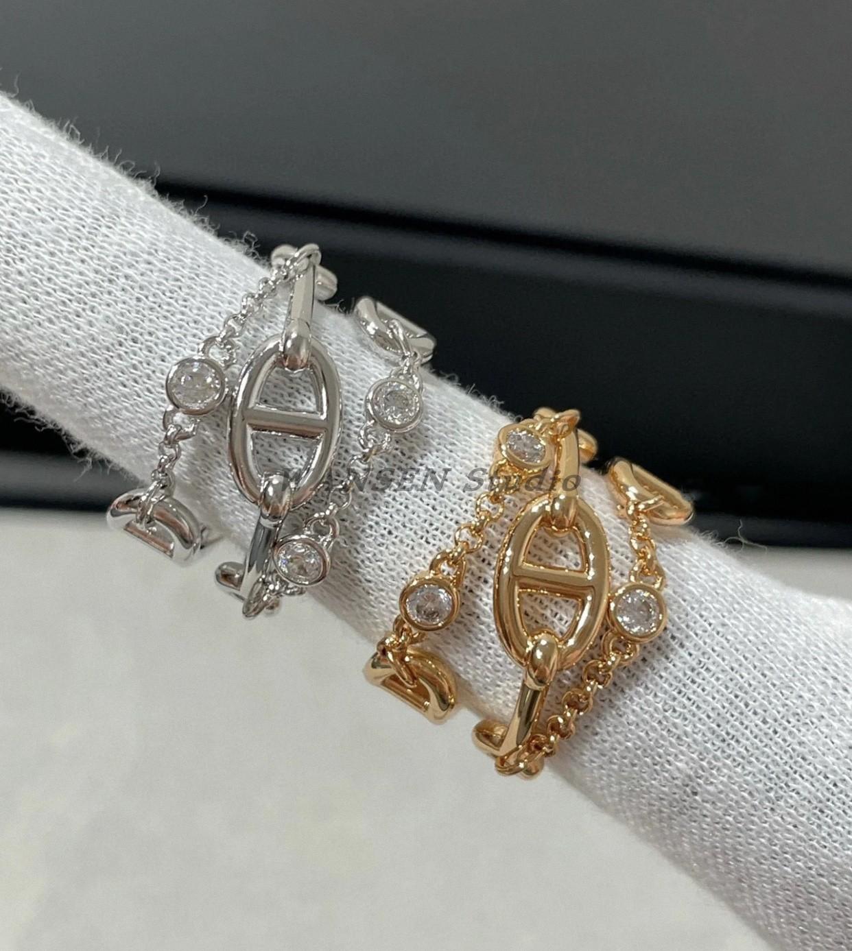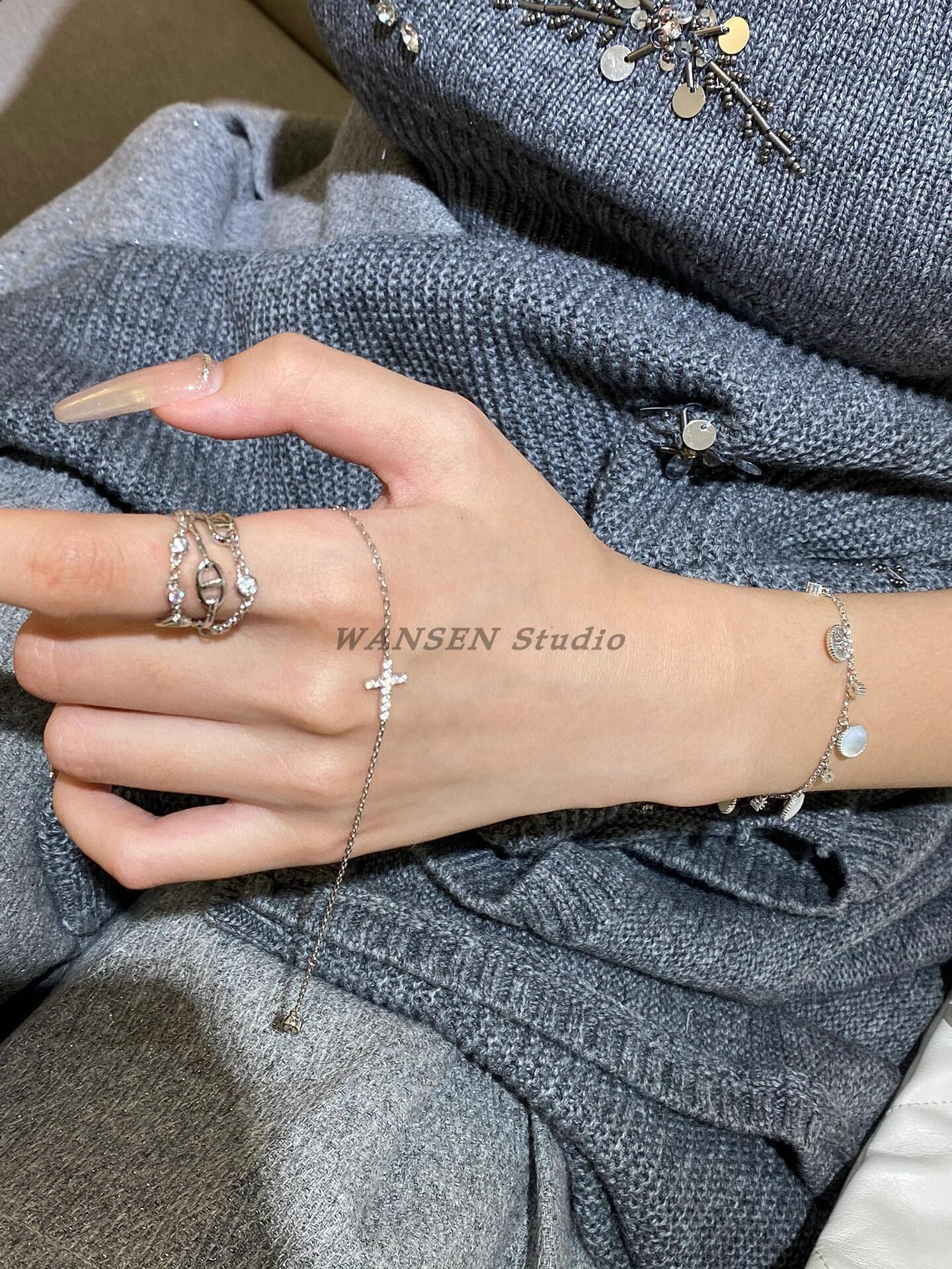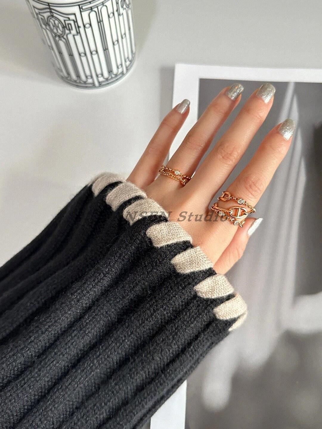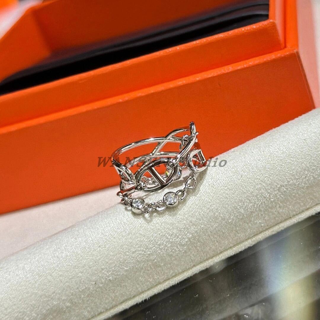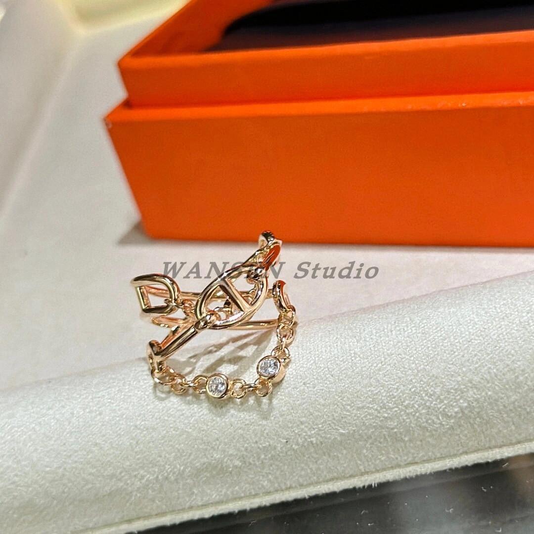 Anillo de cadena de lujo ligero con forma de nariz de cerdo, estilo europeo y americano, con diseño cruzado de tres capas y diamantes, cadena gruesa, abierto para mujer.