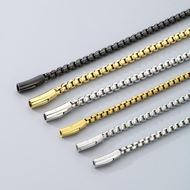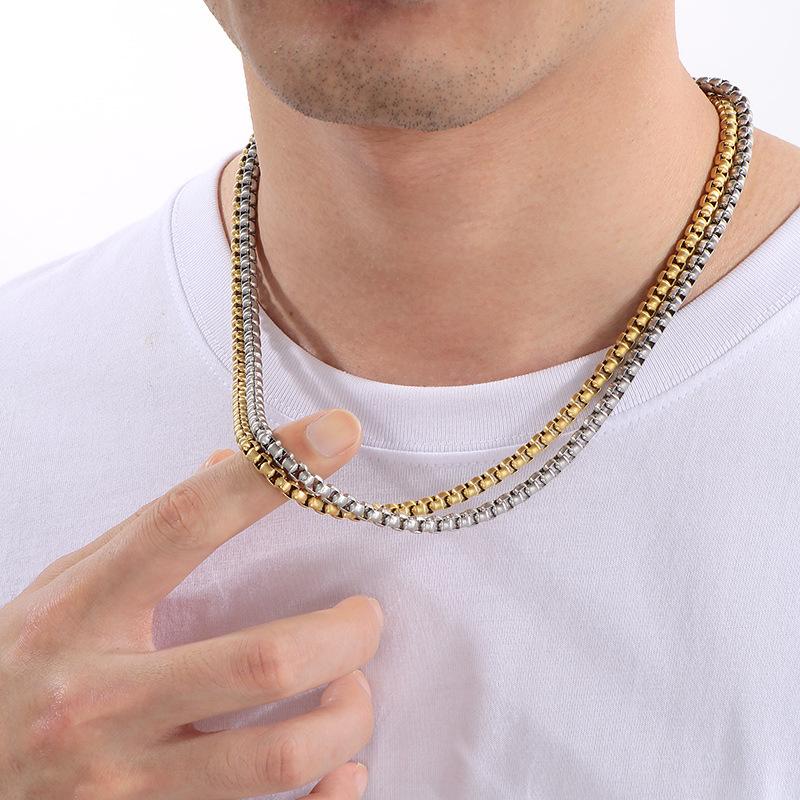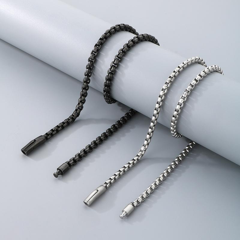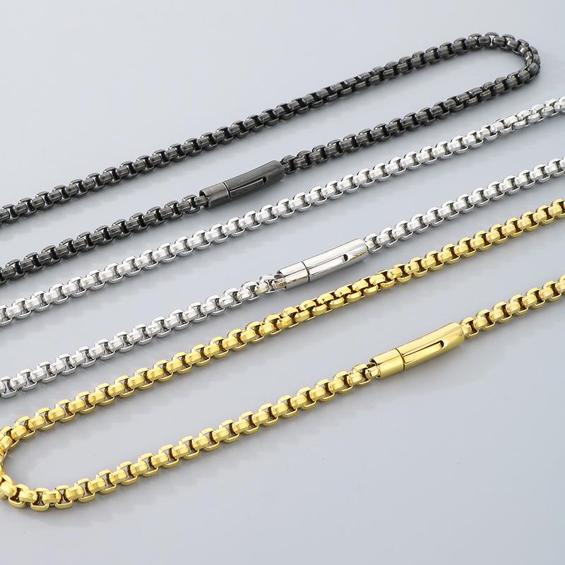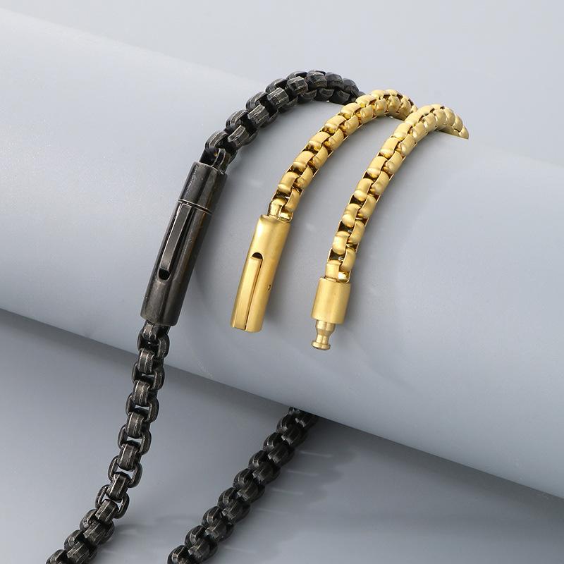 Collar de cadena simple y a la moda con diseño de hip-hop, estilo rock retro, cadena de perlas cuadradas, hebilla magnética, collar de acero de titanio para hombre
