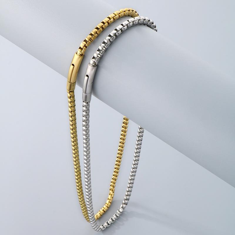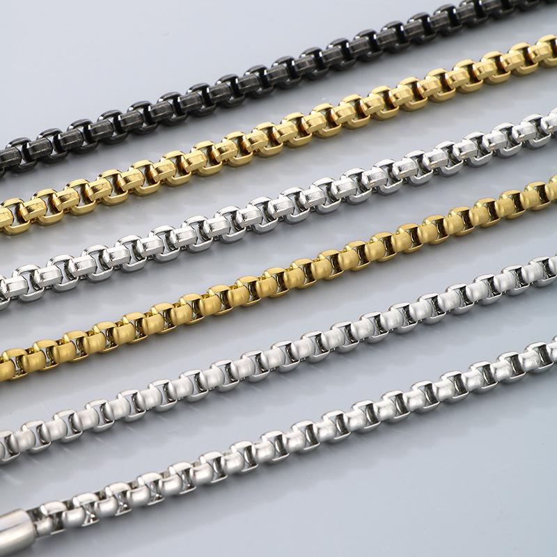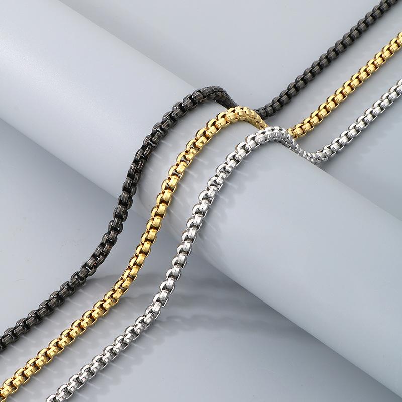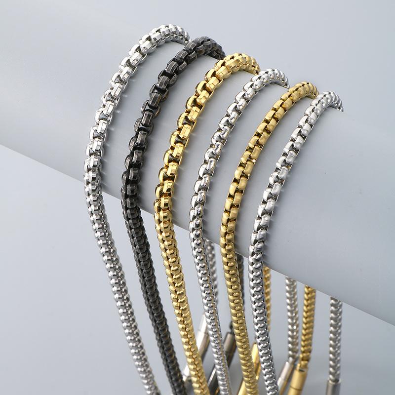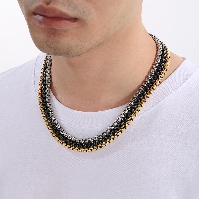 Collar de cadena simple y a la moda con diseño de hip-hop, estilo rock retro, cadena de perlas cuadradas, hebilla magnética, collar de acero de titanio para hombre
