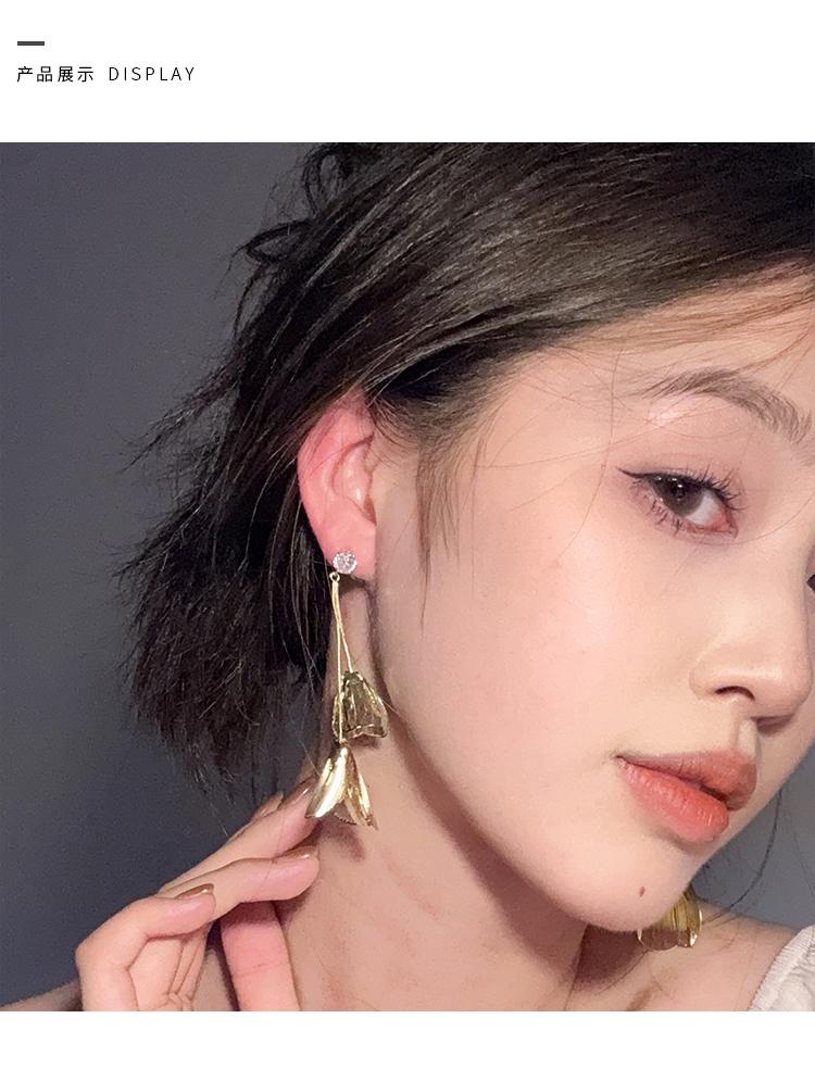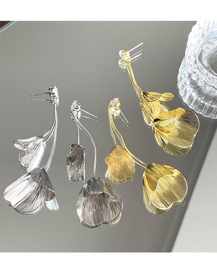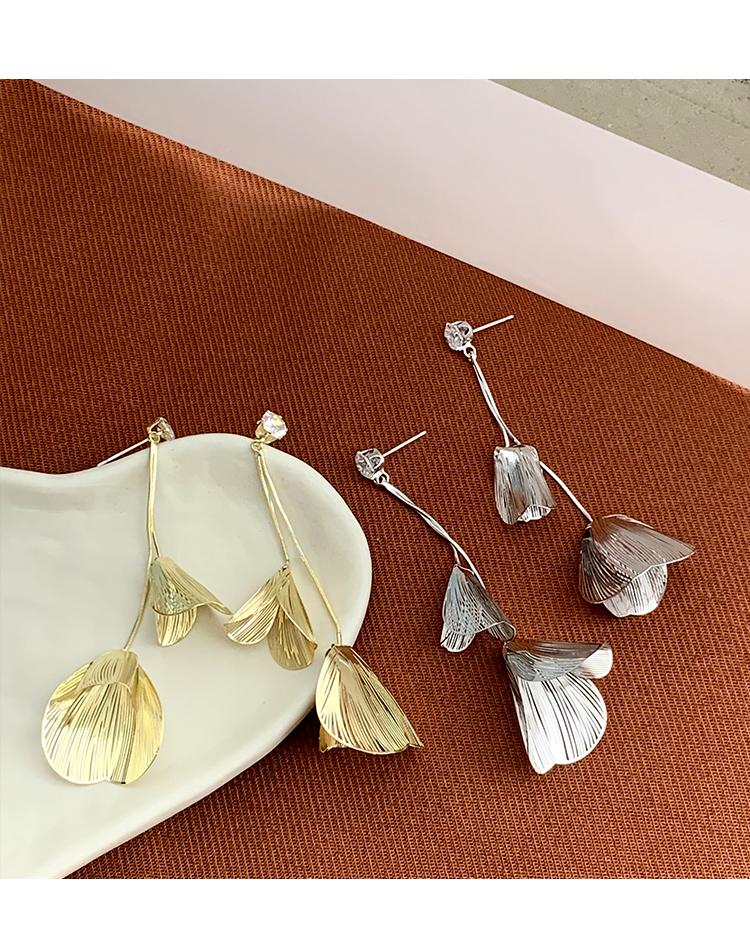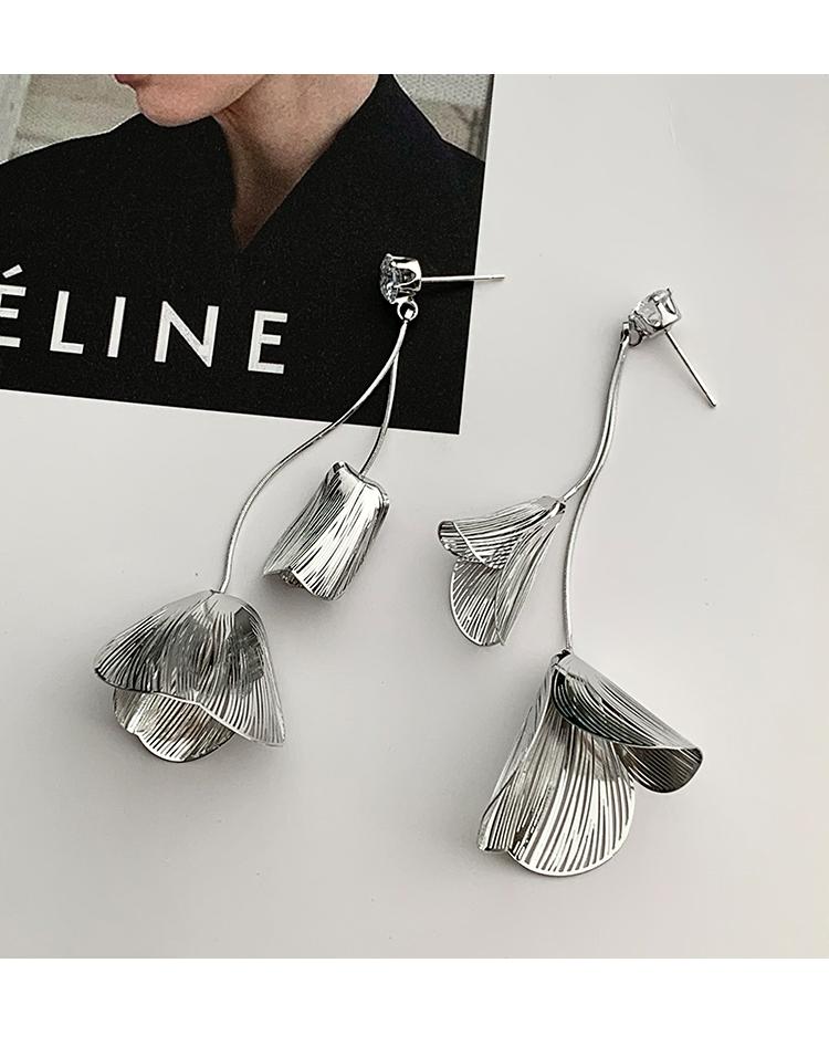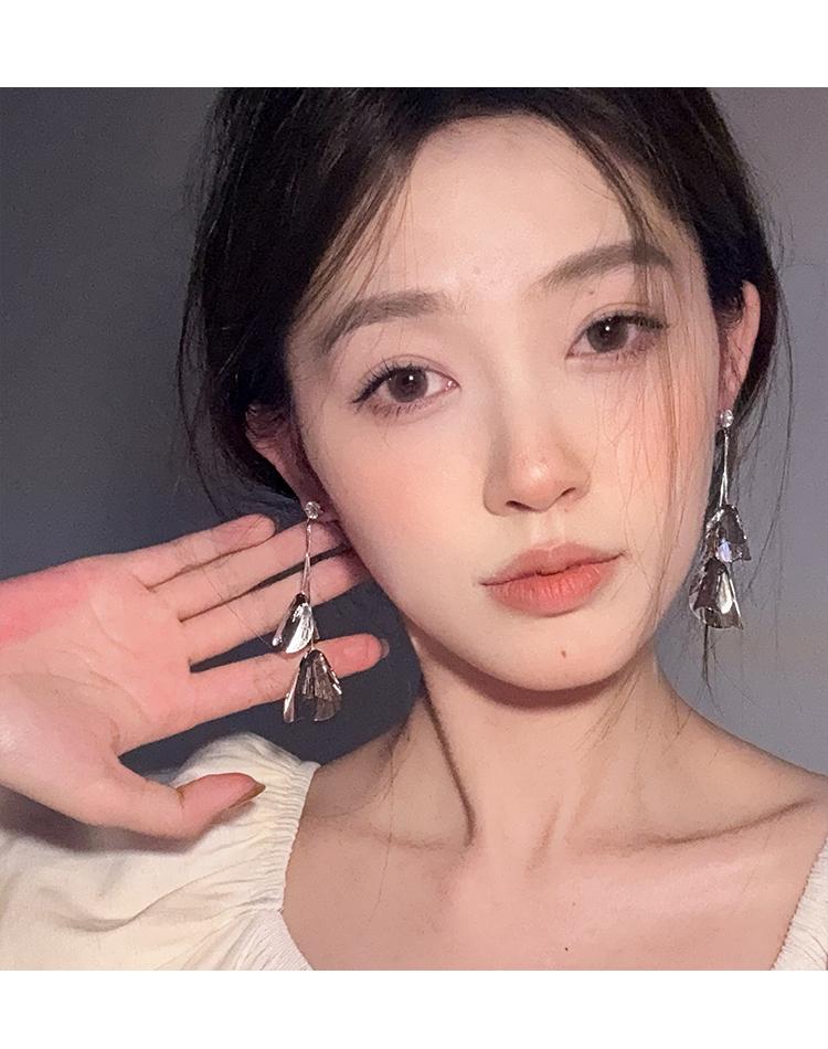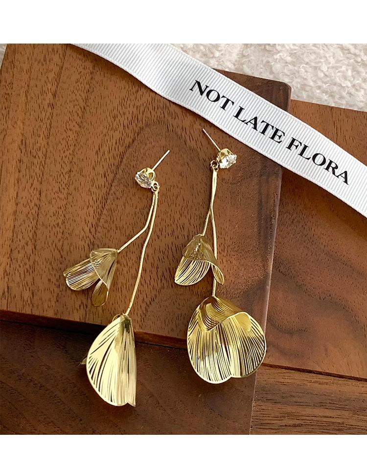 Pendientes elegantes y sencillos de flores huecas francesas, ligeros, de lujo, de alta gama, con borlas de tulipán largas, pendientes que combinan con todo.