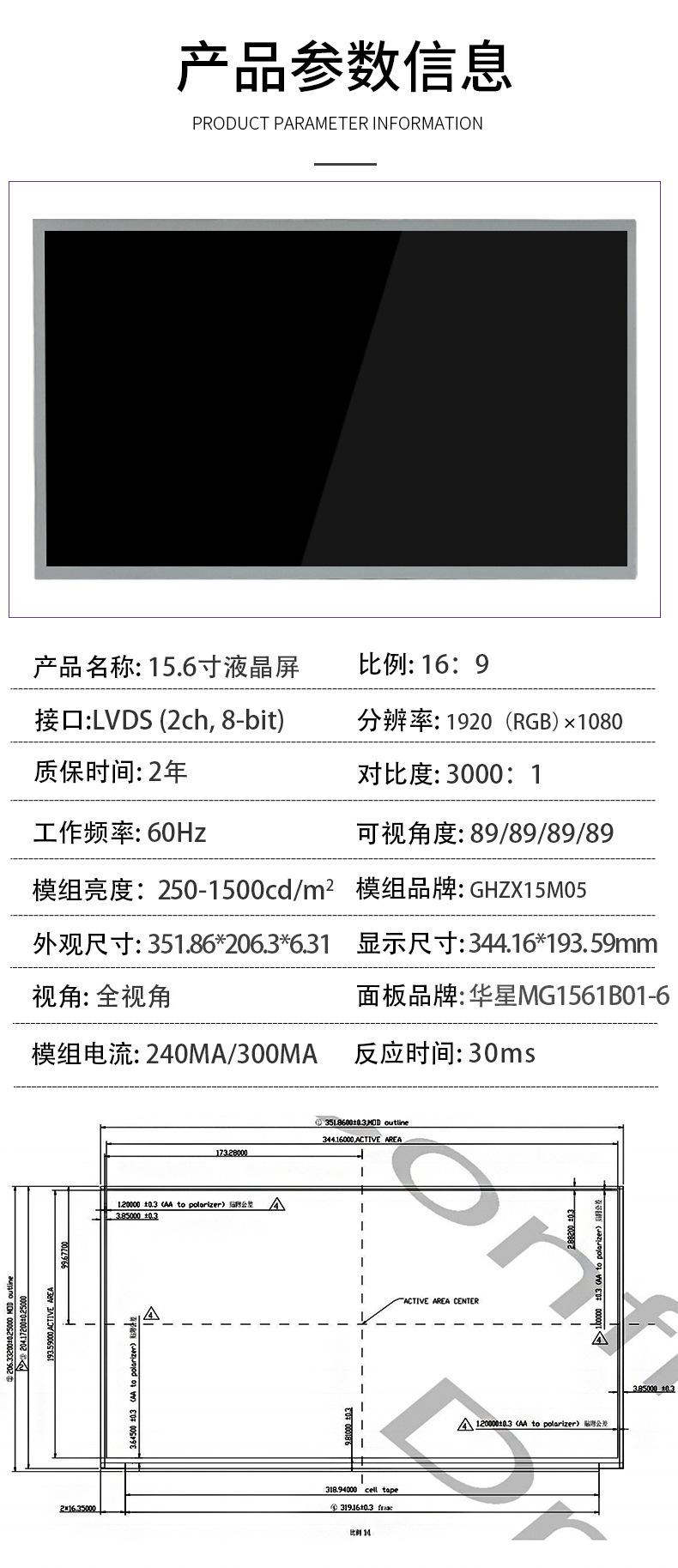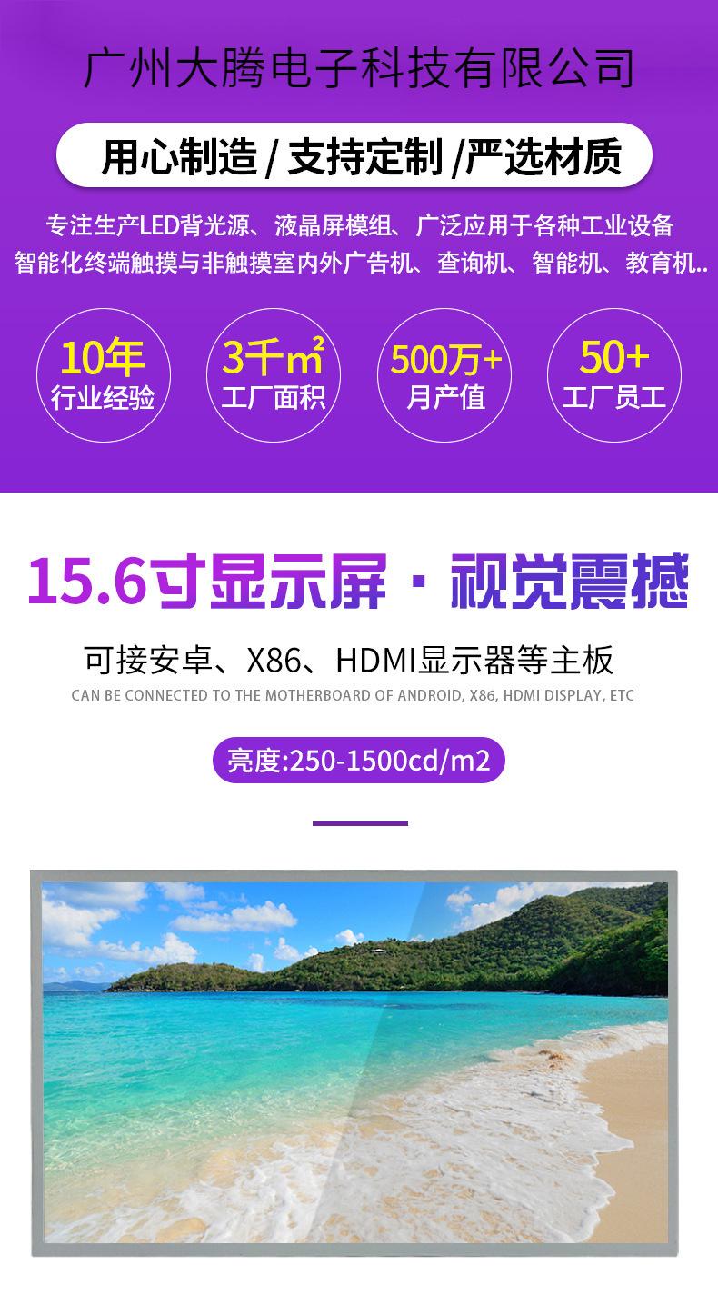 Monitor LCD de 15.6 pulgadas control industrial pantalla LED interfaz LVDS equipo médico pantalla LCD pantalla HD