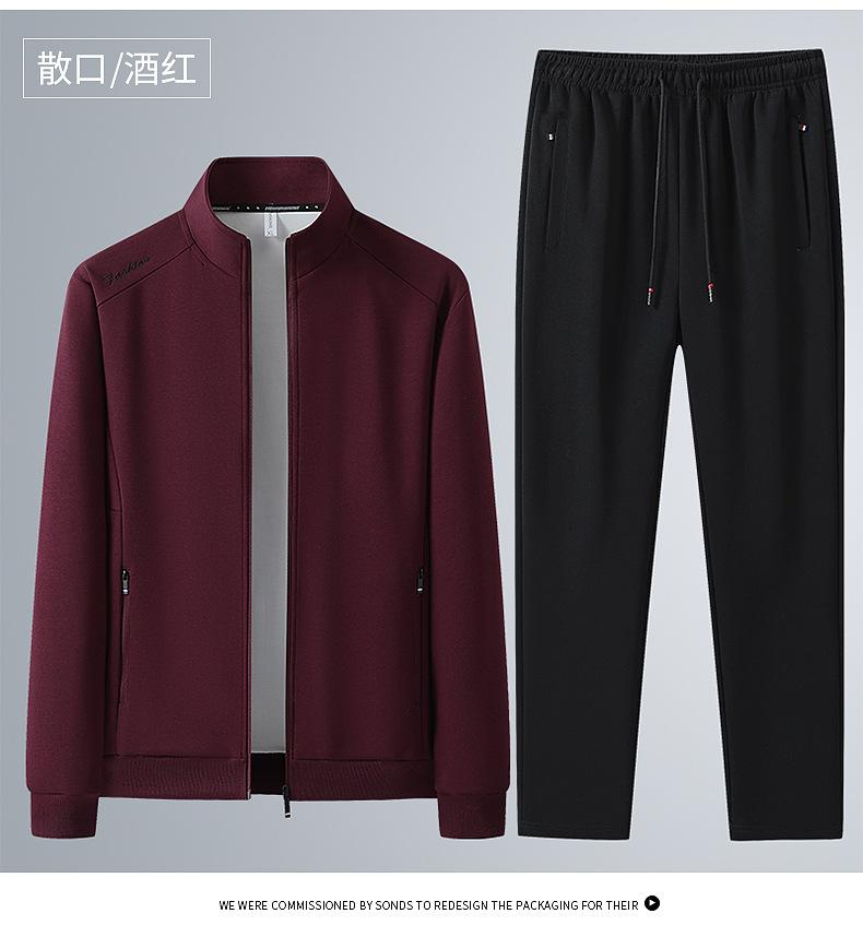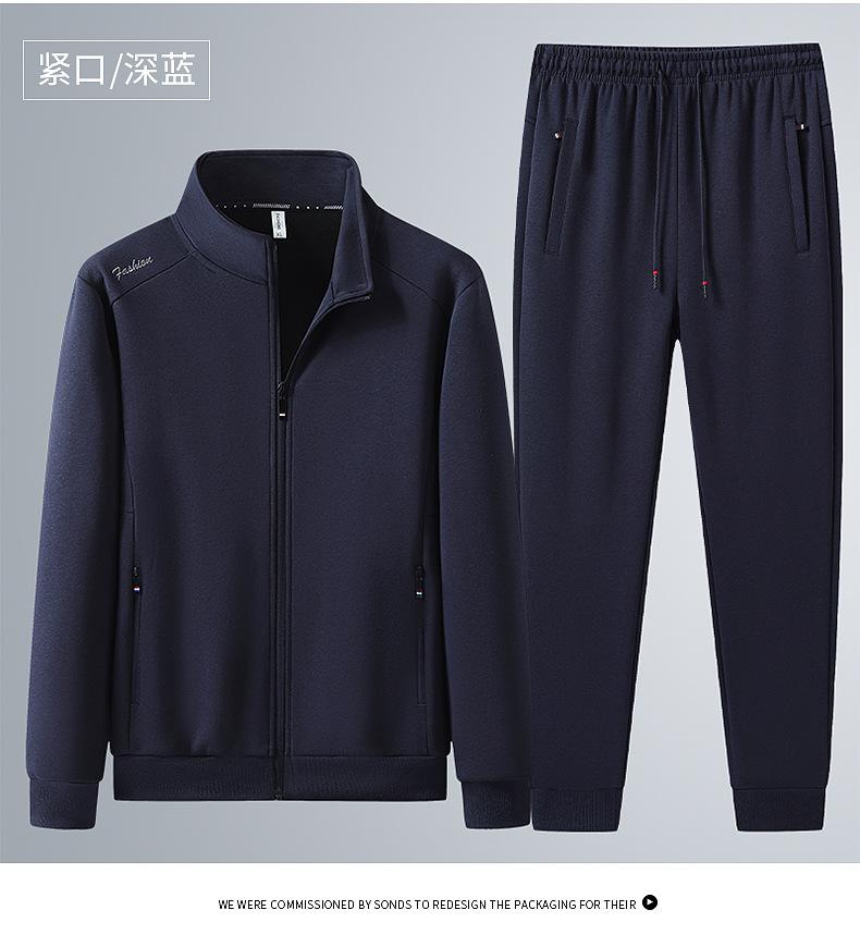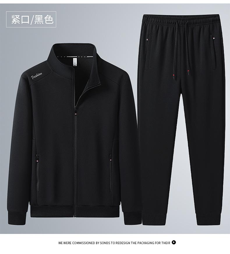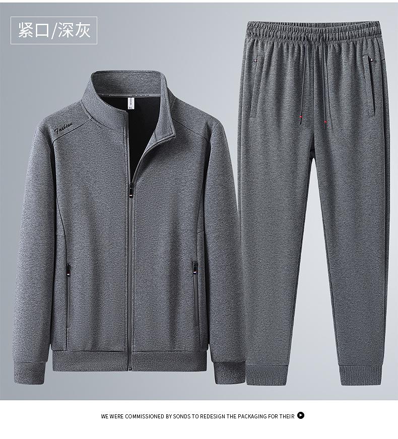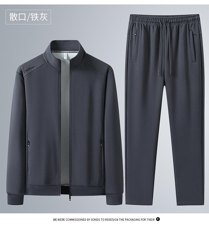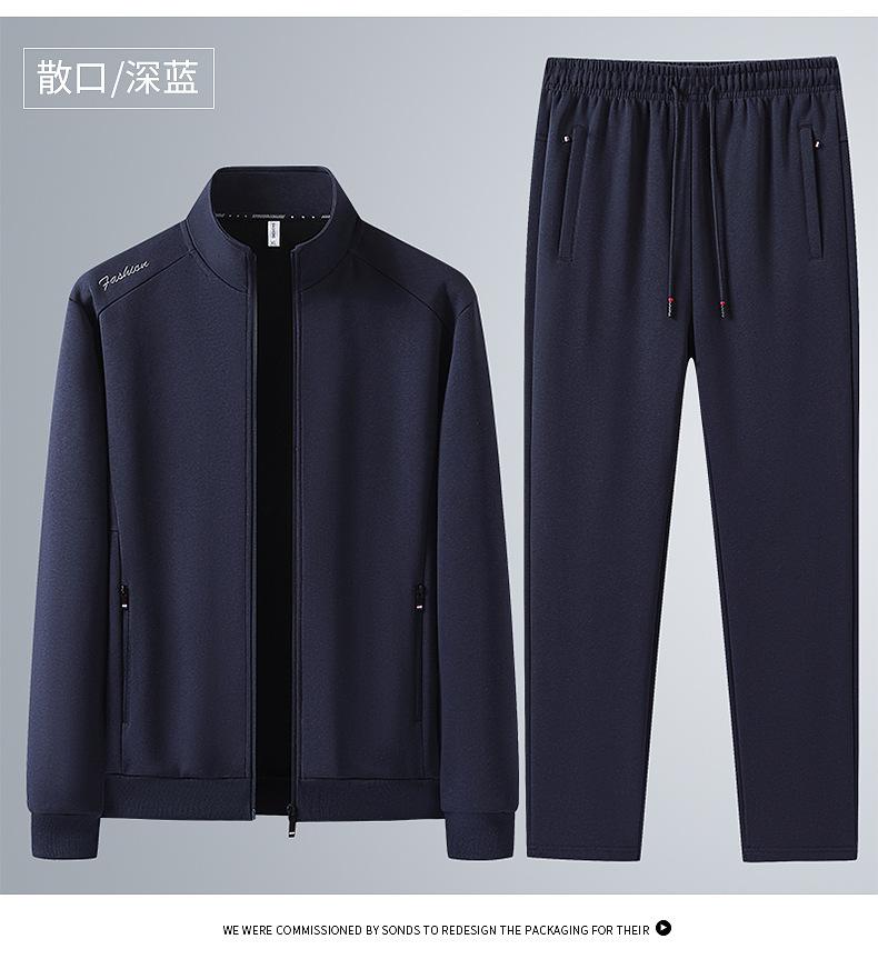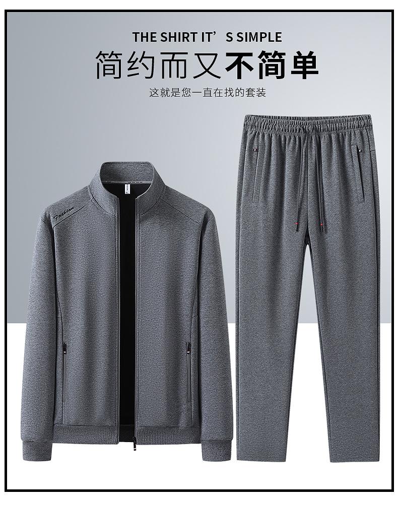 Conjunto deportivo de algodón para primavera y otoño, suéter de cuello vertical, cárdigan informal y elegante para hombre, conjunto holgado de dos piezas.