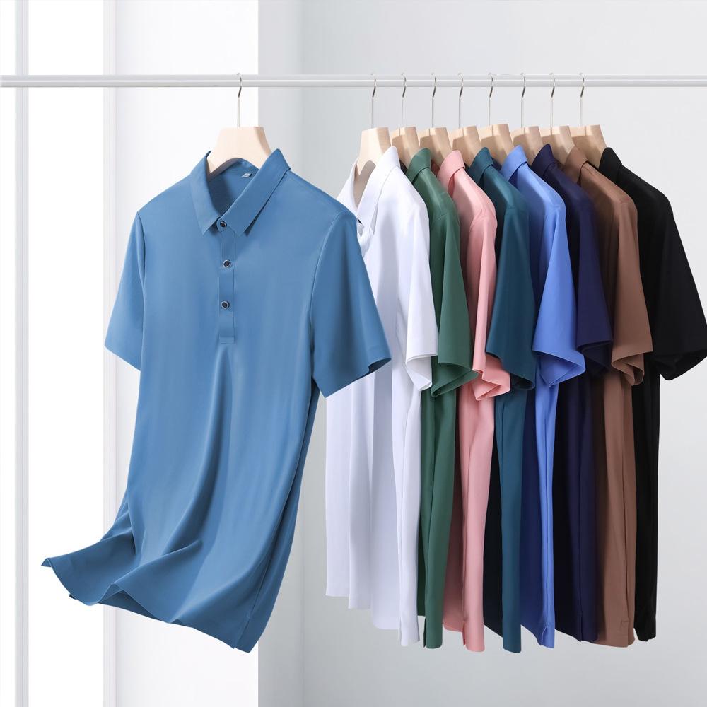Polo Fresco Color Sólido Hielo Fresco Ropa de Trabajo con Cuentas Logo Bordado Camiseta Polo de Golf de Gama Alta