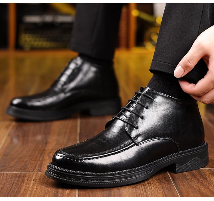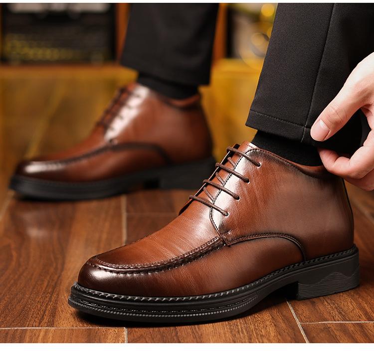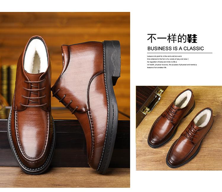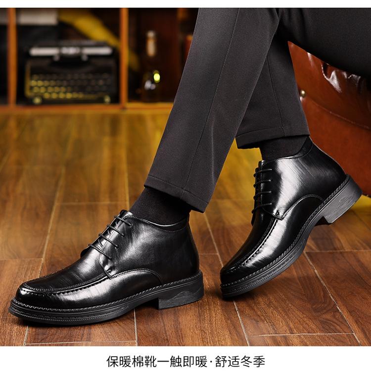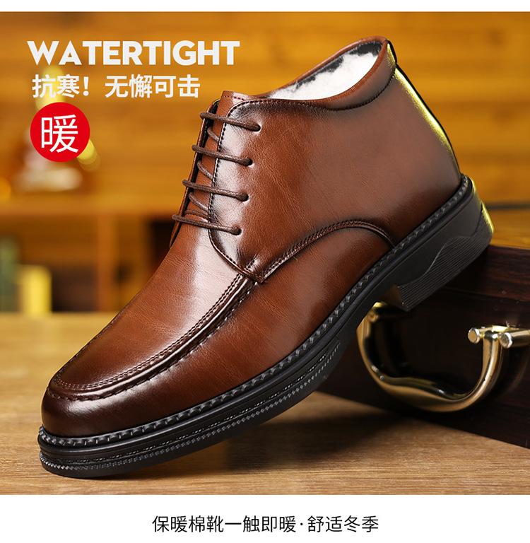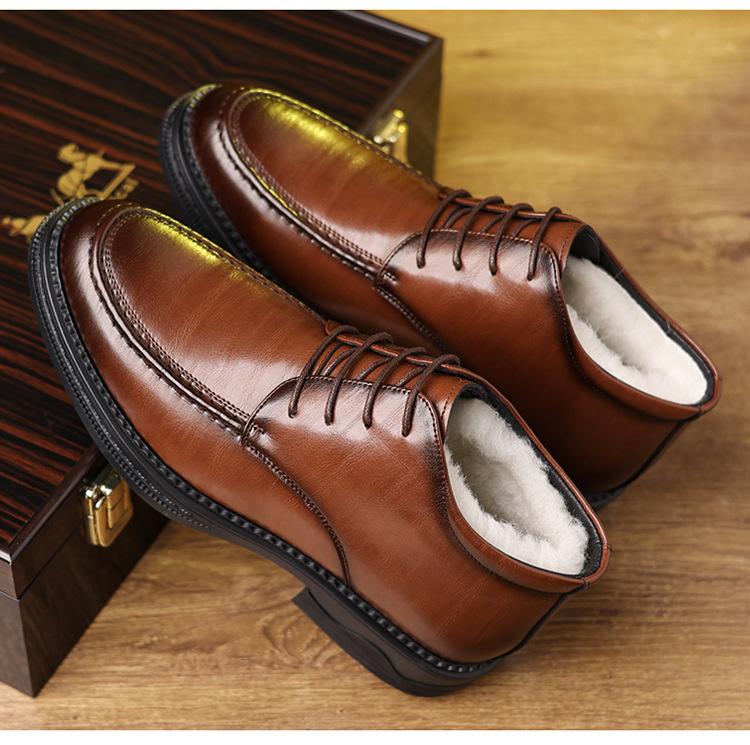 Zapatos de Algodón para Hombre 2025 Invierno Nuevo Estilo Forrados de Lana Cálidos Botas de Cuero Engrosadas Regalo para Adultos Mayores Negocios Zapatos de Cuero de Caña Alta Zapatos de Papá