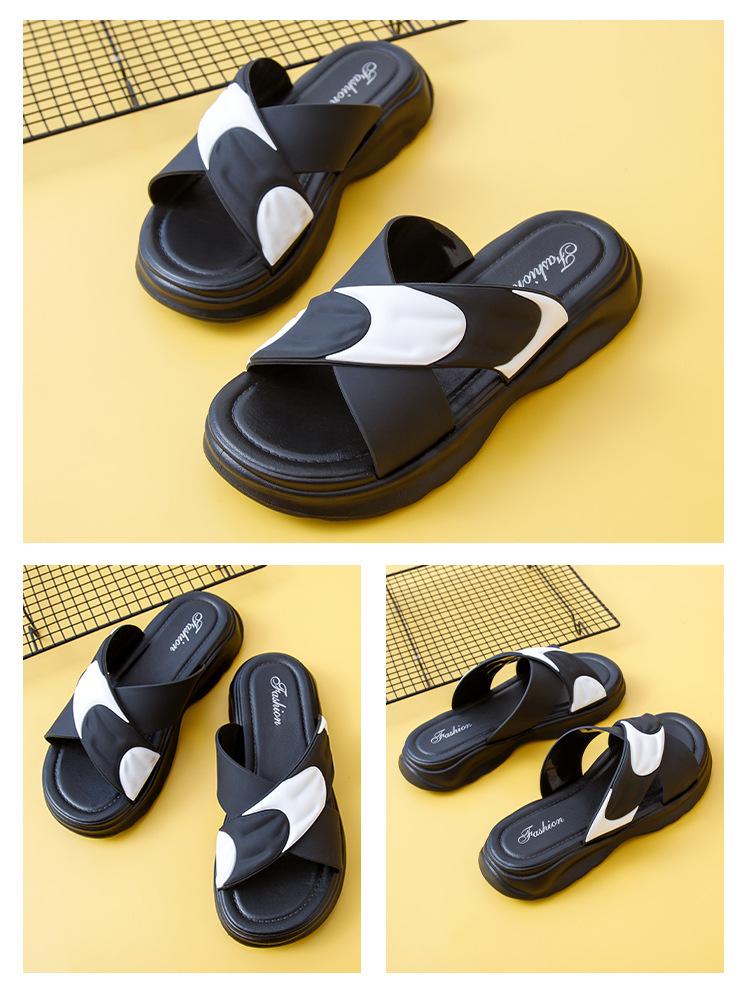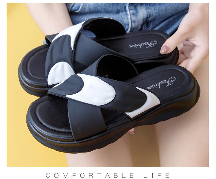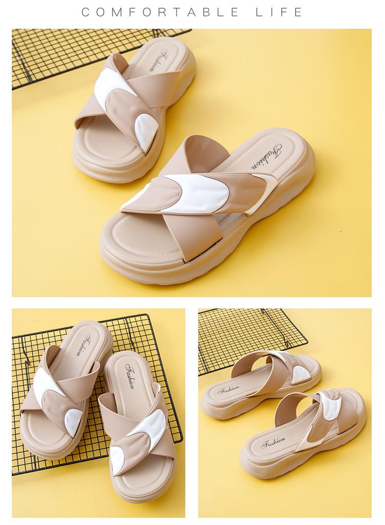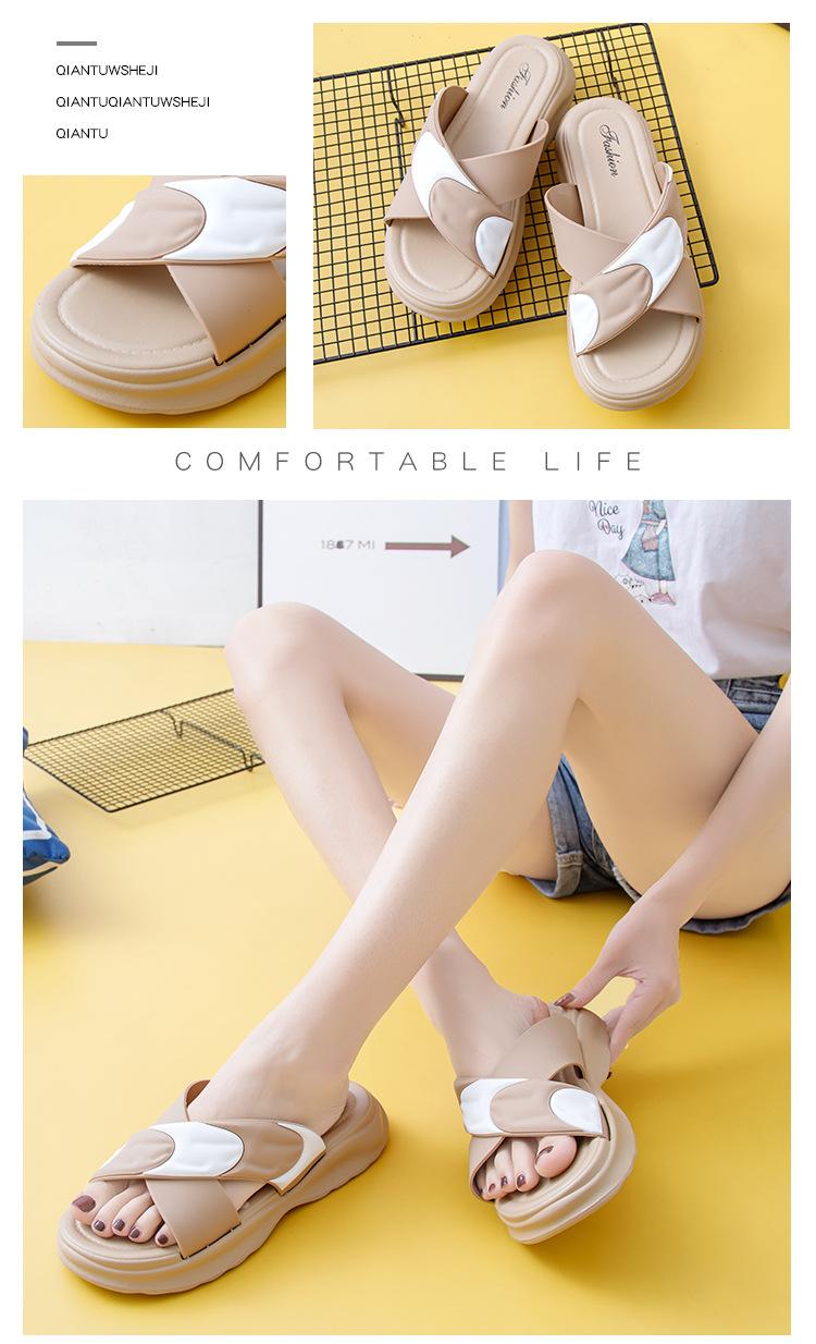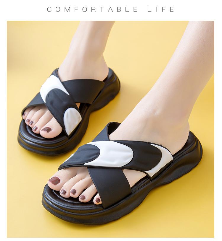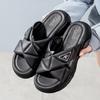 Zapatillas de Plataforma de Suela Gruesa Cruzadas para Mujer 2024 Nueva Moda de Verano de Celebridad de Internet Sandalias Planas Antideslizantes Zapatos de Playa