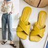 Pantuflas cruzadas de celebridades de Internet para mujer, verano 2024, estilo coreano, color caramelo, punta cuadrada, planas, para mujer, zapatos de playa