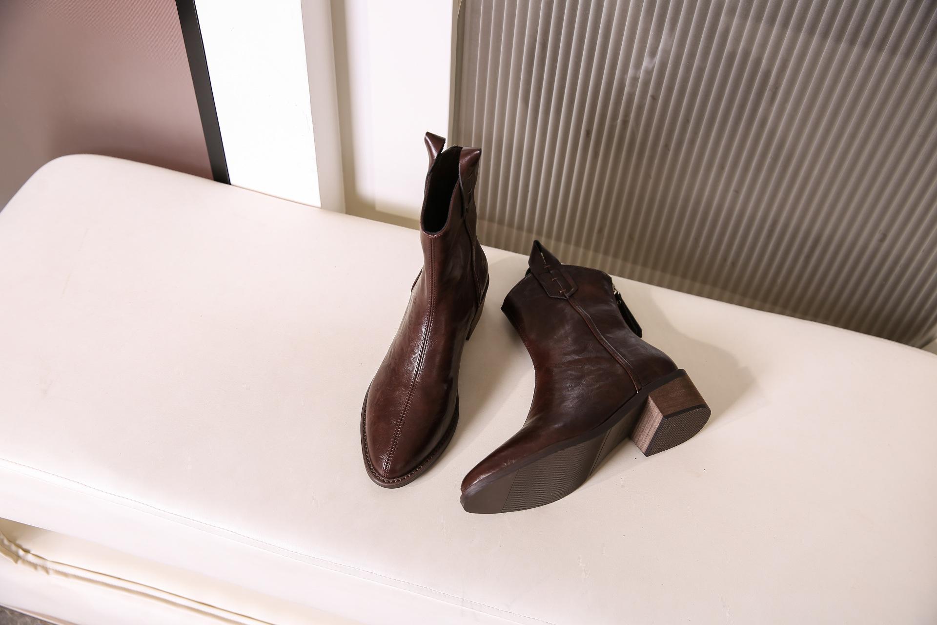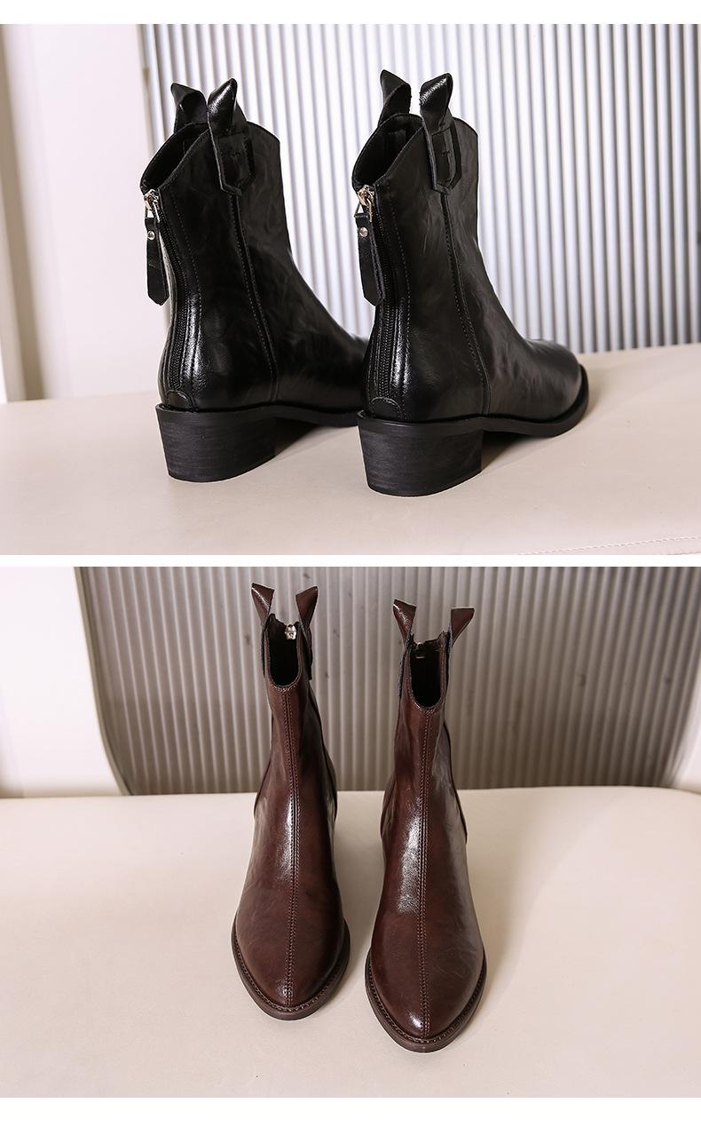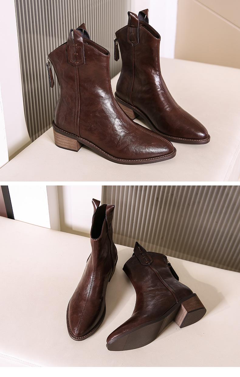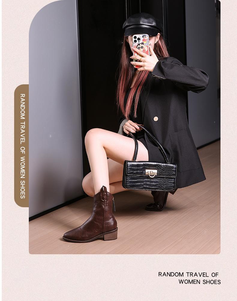 Botas de Moda para Mujer 2024 Otoño e Invierno Retro Punta Afilada Botas Vaqueras Occidentales Tacón Ancho Botas de Equitación Estilo Vintage