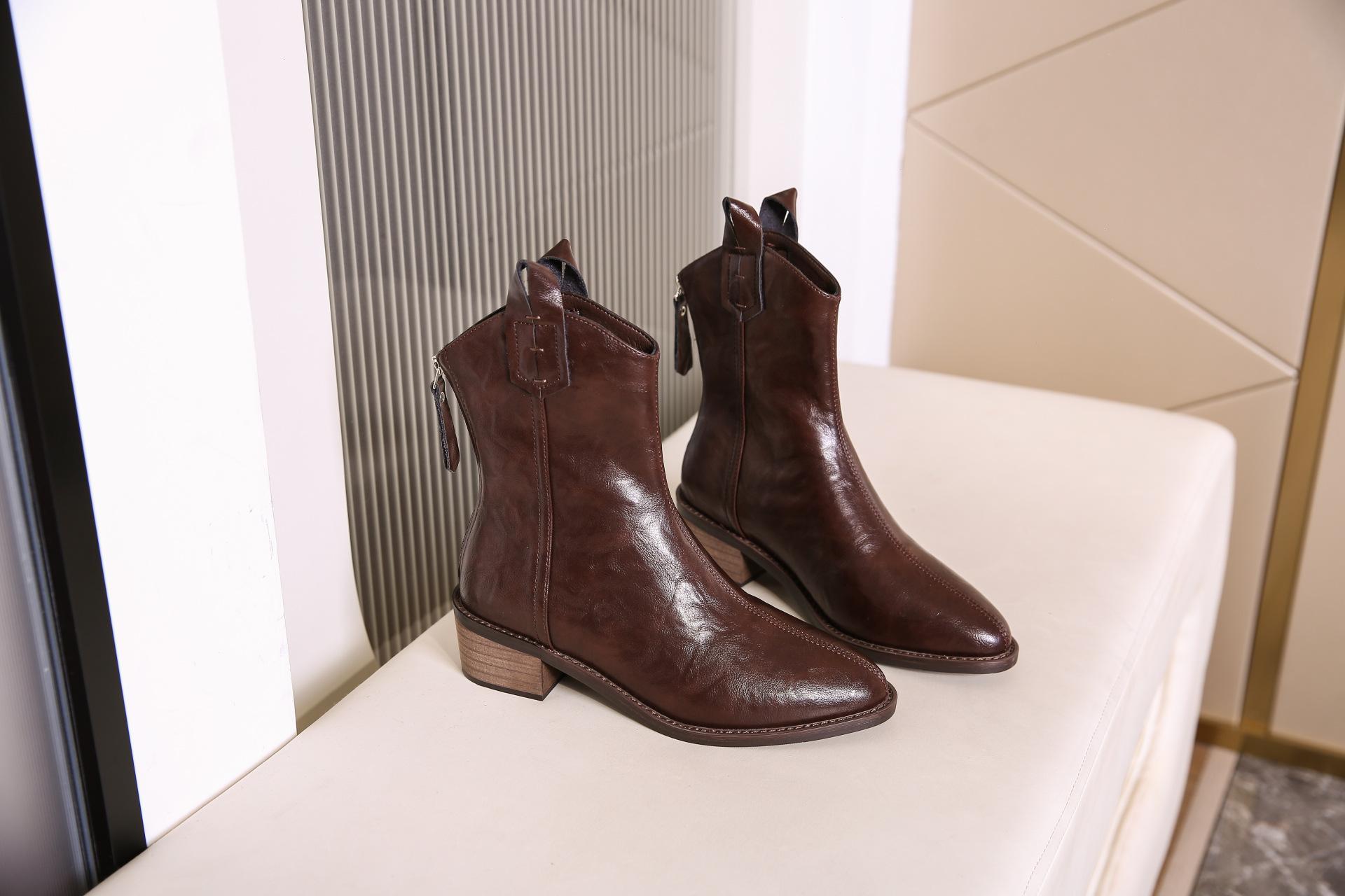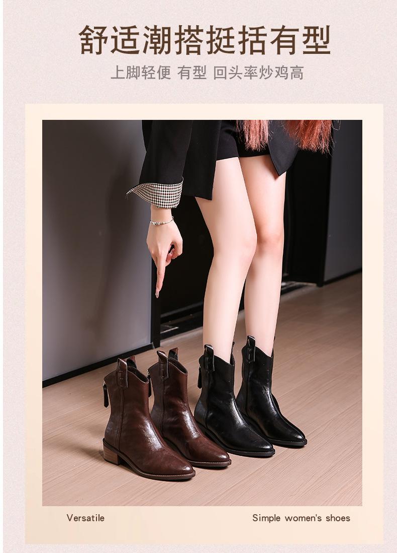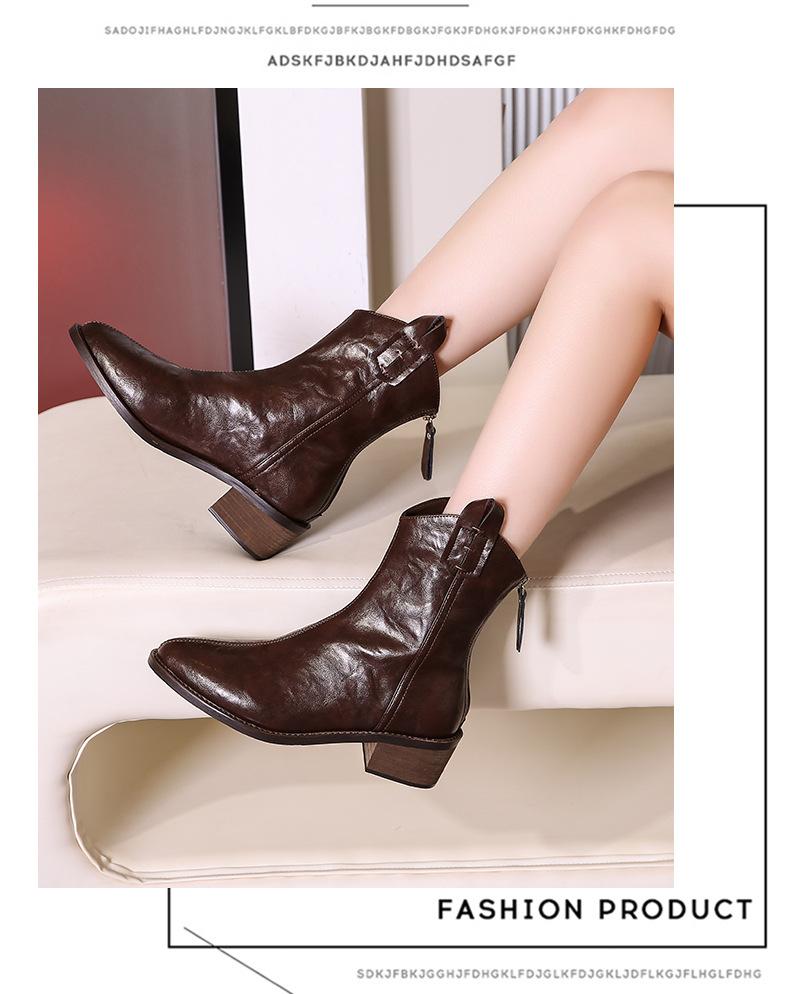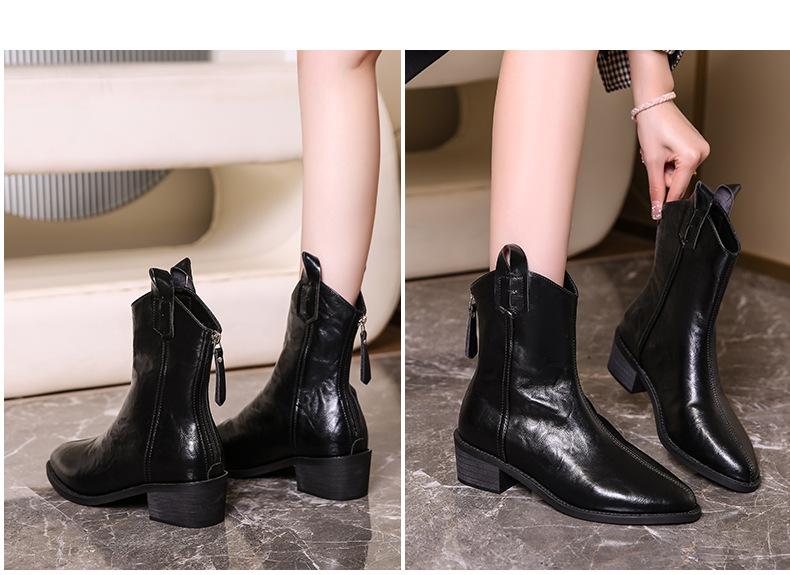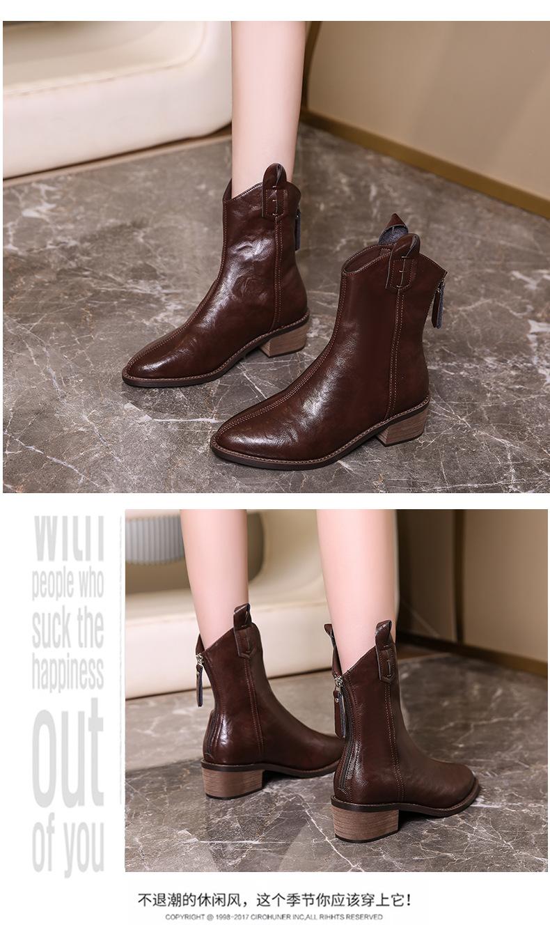 Botas de Moda para Mujer 2024 Otoño e Invierno Retro Punta Afilada Botas Vaqueras Occidentales Tacón Ancho Botas de Equitación Estilo Vintage