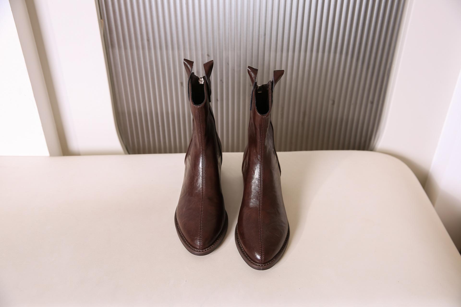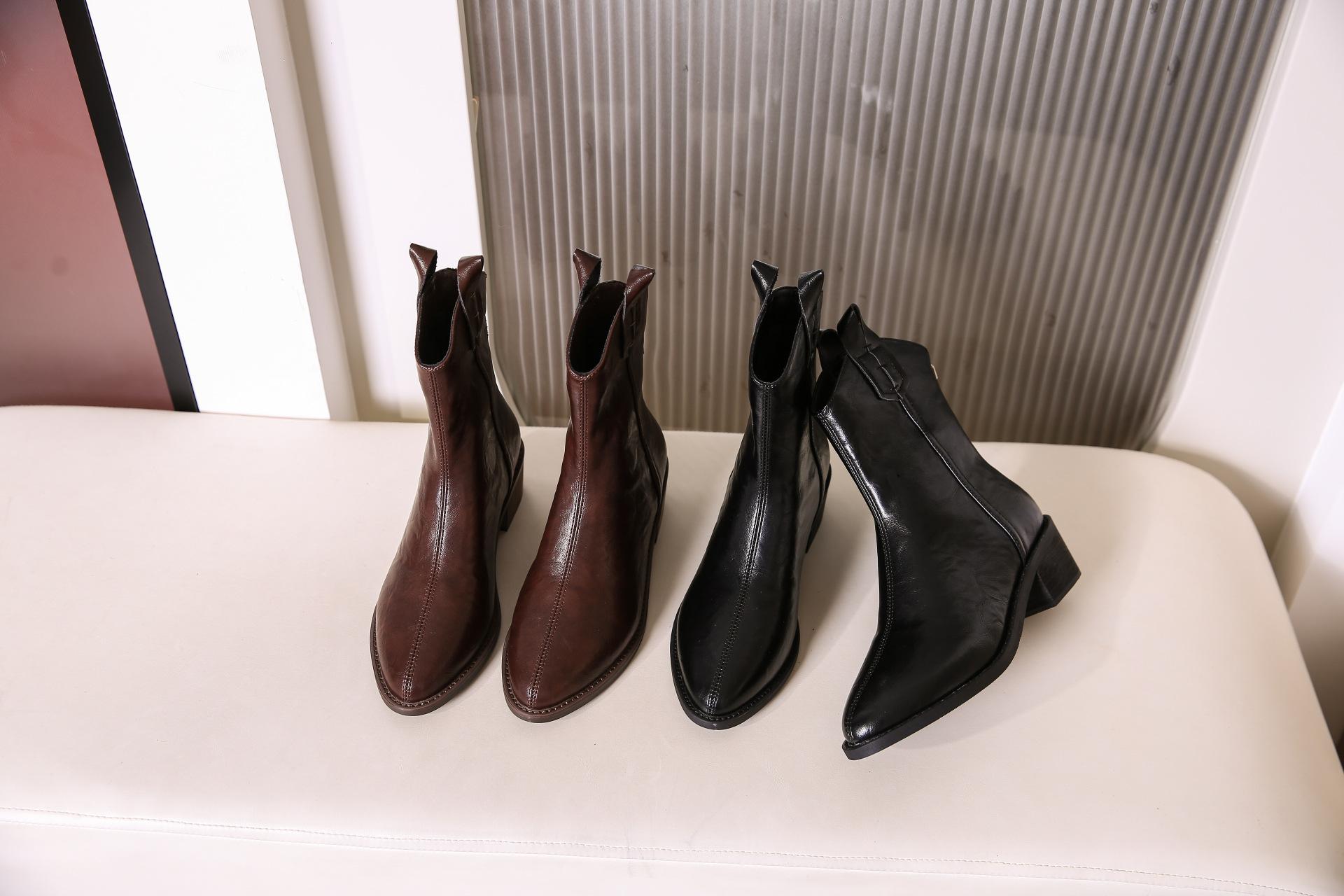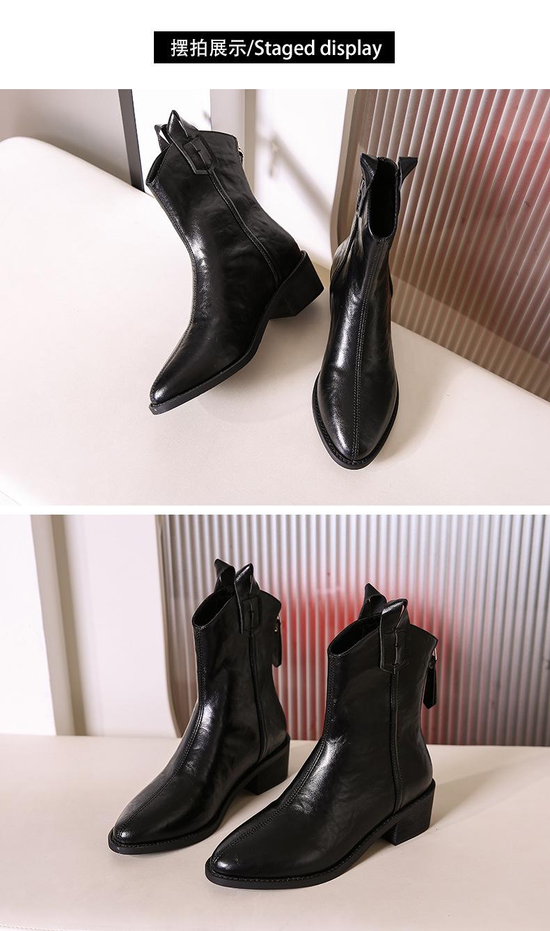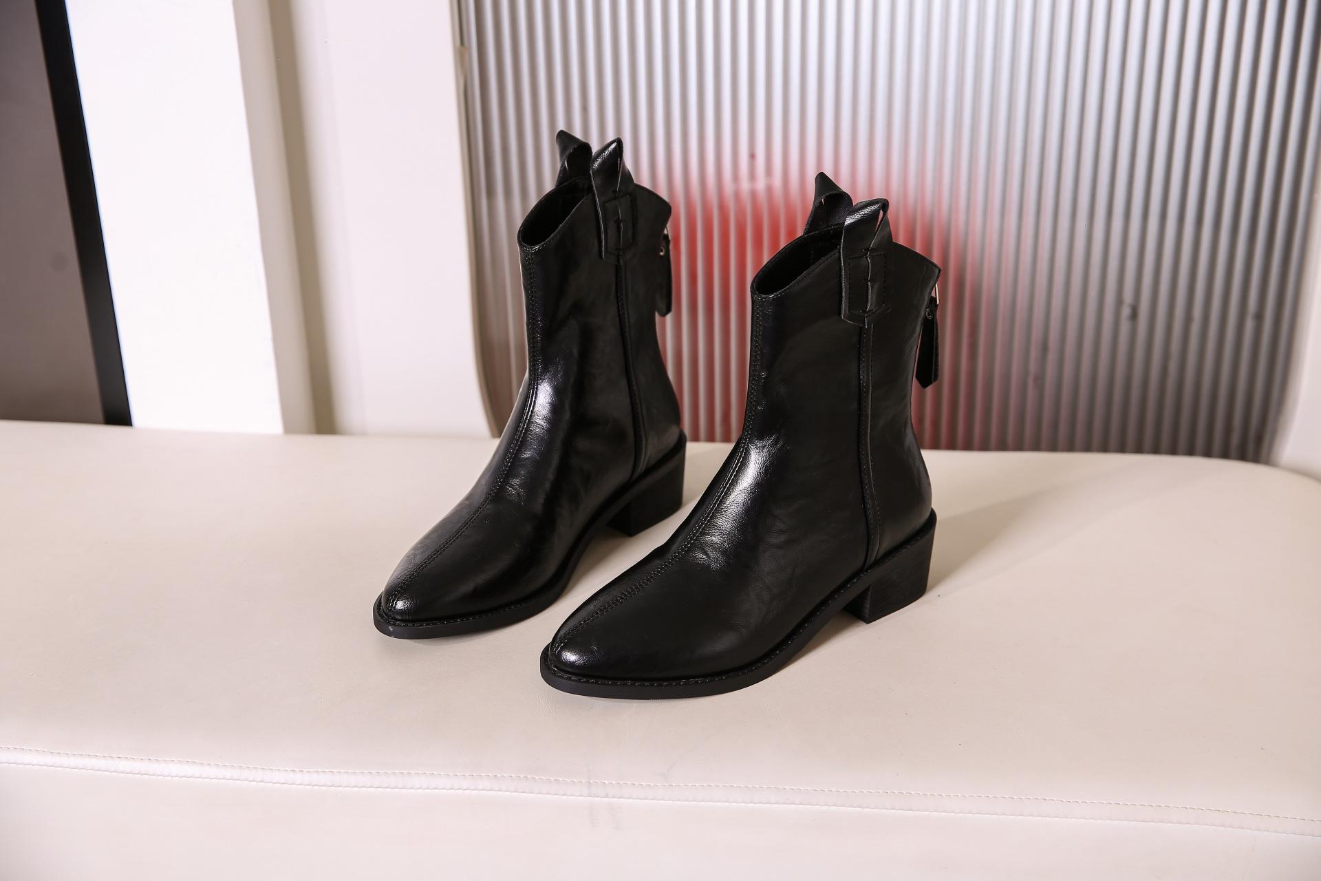 Botas de Moda para Mujer 2024 Otoño e Invierno Retro Punta Afilada Botas Vaqueras Occidentales Tacón Ancho Botas de Equitación Estilo Vintage