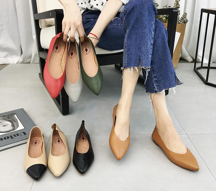 Compra Zapatos individuales de boca baja de talla grande nuevos de primavera/verano 2025, punta puntiaguda de piel genuina suave, planos versátiles de piel de vaca, zapatos de abuelita para mujer al por mayor en Joom.pro