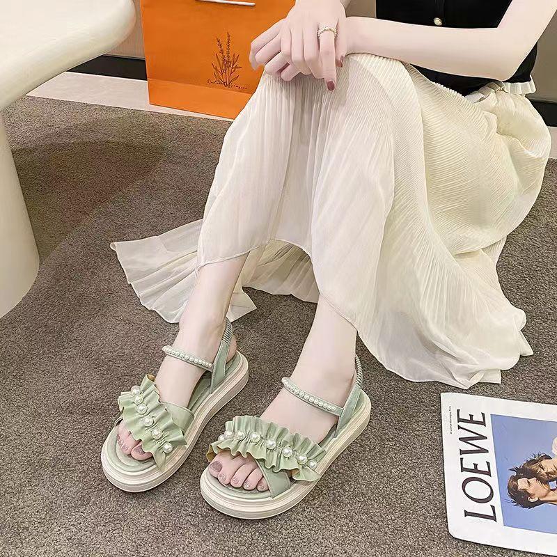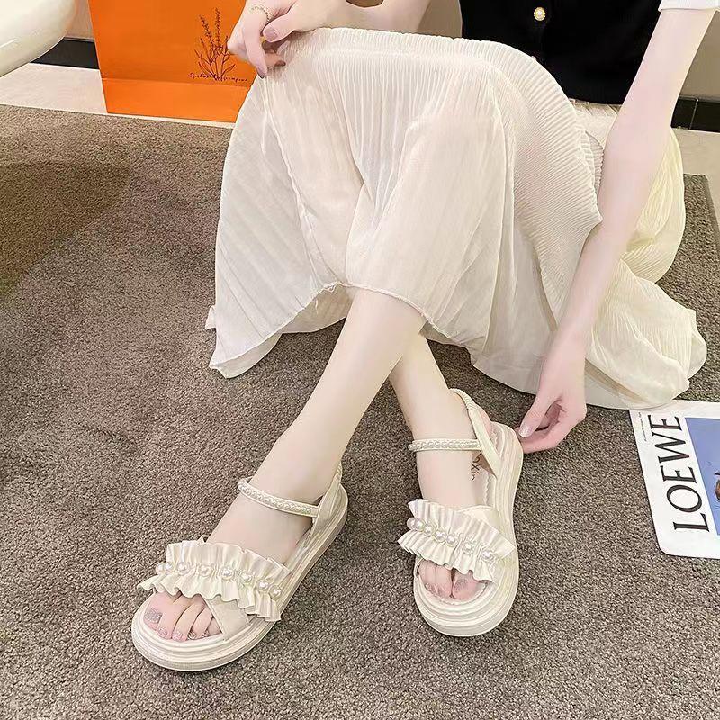 Sandalias para Mujer Verano 2024 Nuevas Zapatos de Playa de Suela Blanda para Niñas Sandalias Estilo Hada para Mujer Verano Suelas Gruesas Versátiles y a la Moda