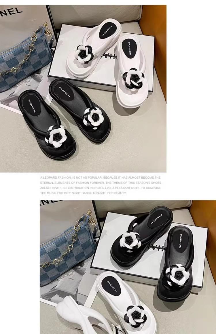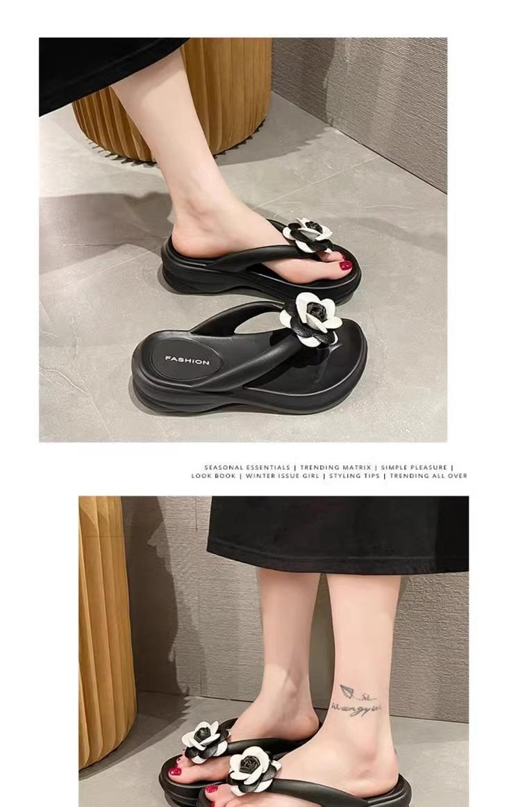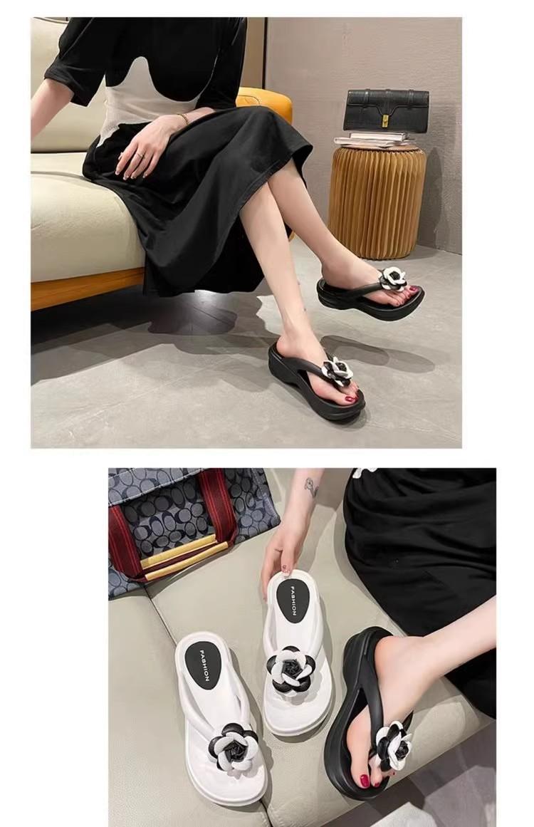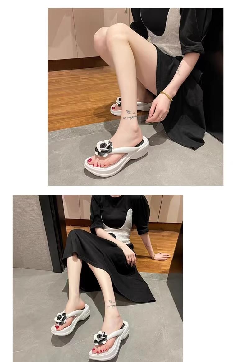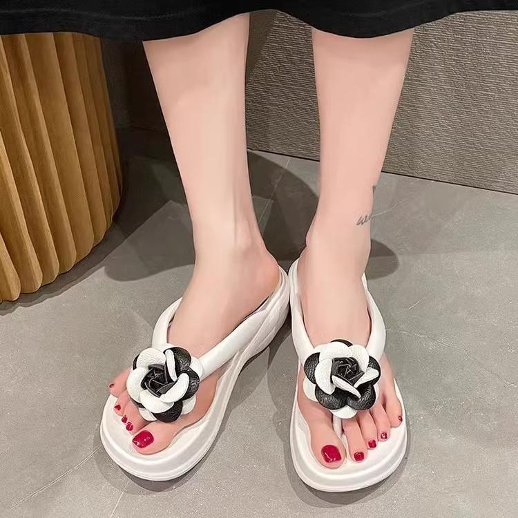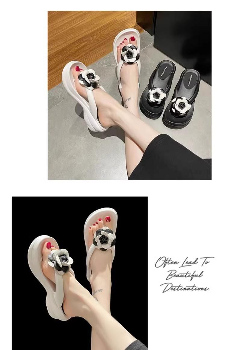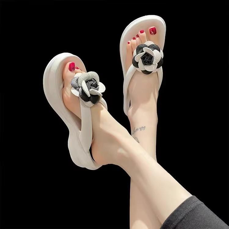 Sandalias de suela gruesa con diseño transfronterizo para mujer, estilo bohemio, con clip en la pierna, de verano, con flores y tacón alto.