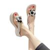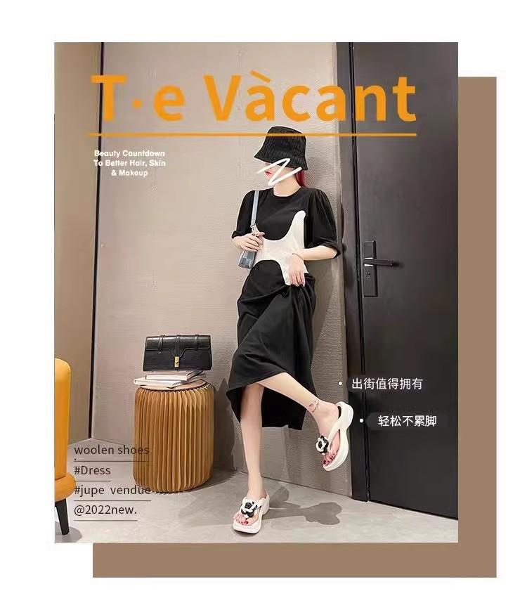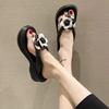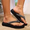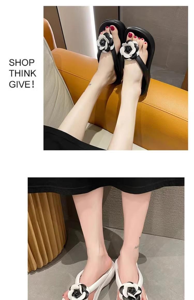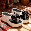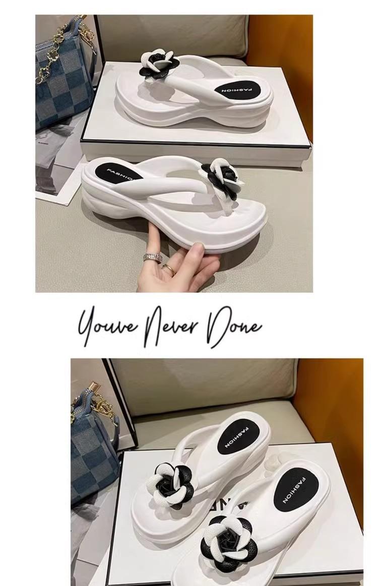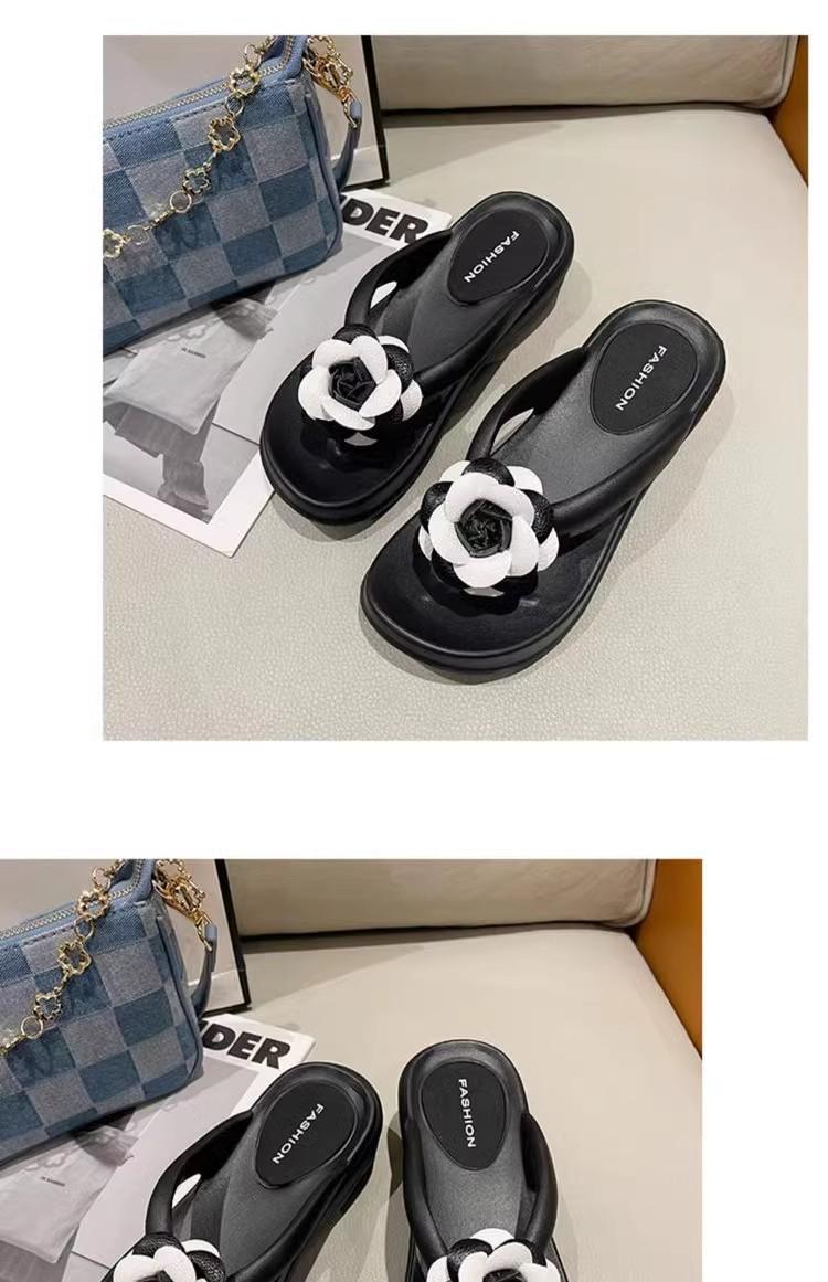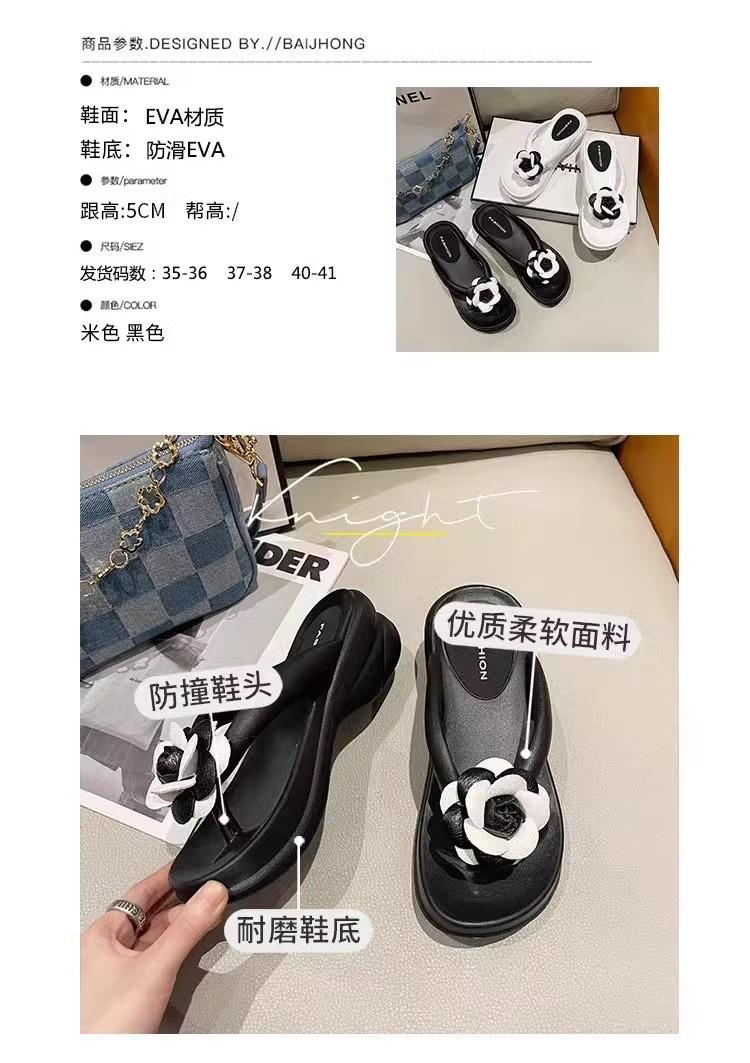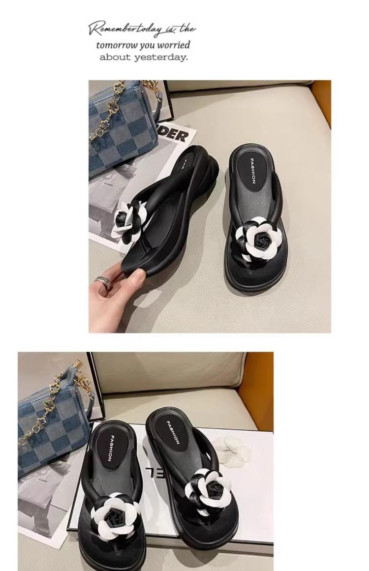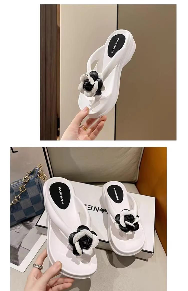 Sandalias de suela gruesa con diseño transfronterizo para mujer, estilo bohemio, con clip en la pierna, de verano, con flores y tacón alto.