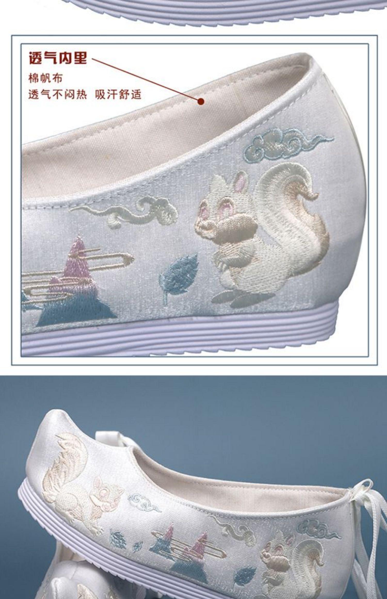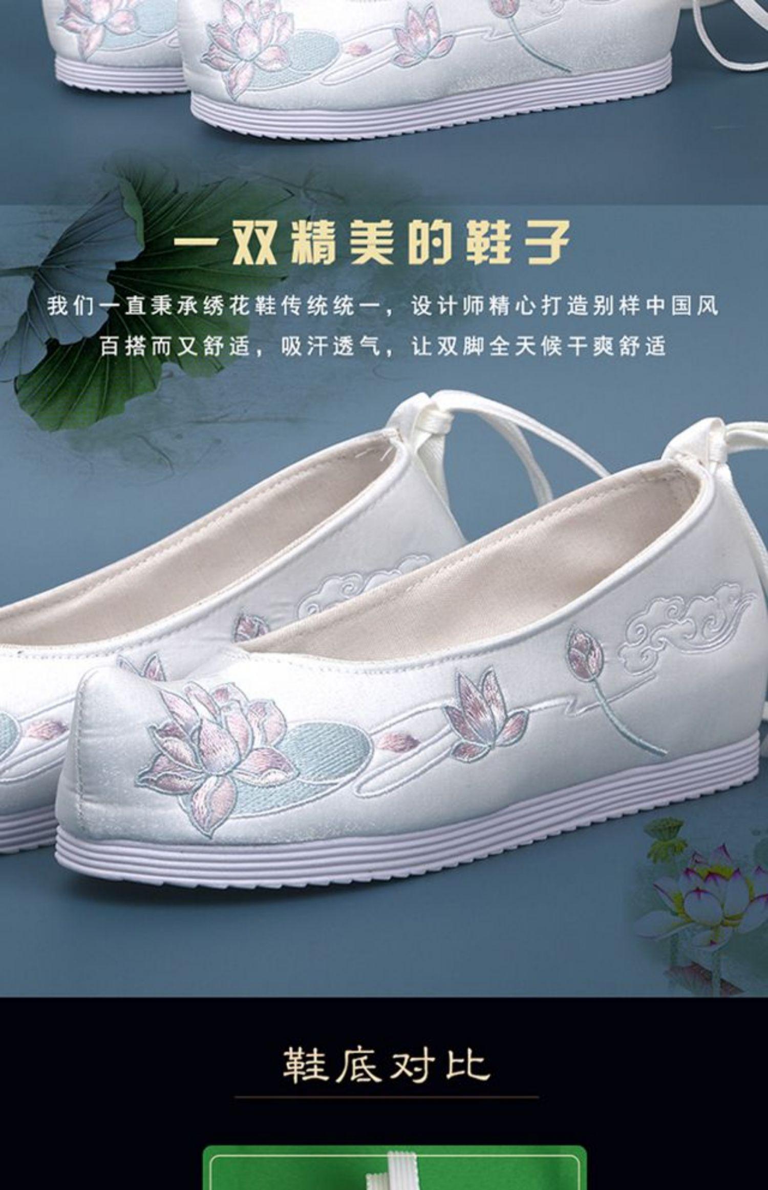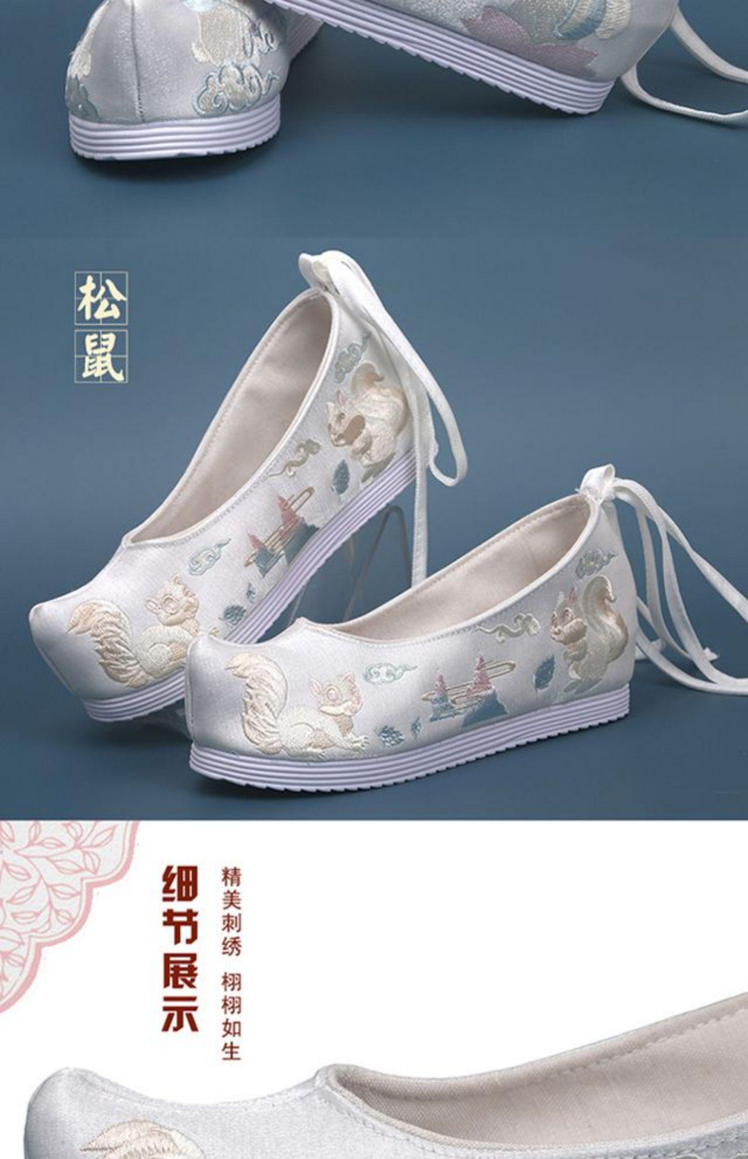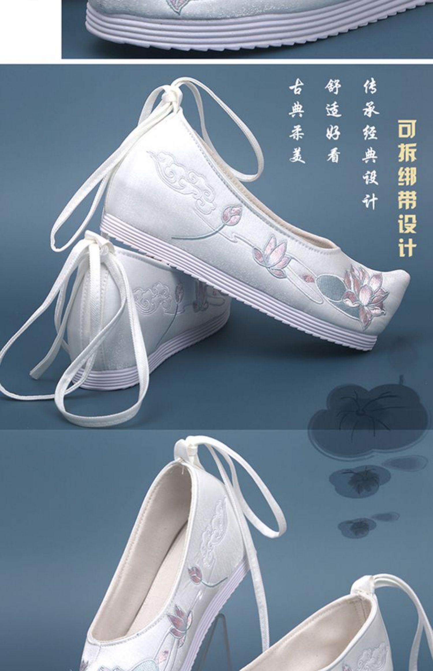 Zapatos Hanfu originales nuevos de otoño e invierno, zapatos antiguos bordados para mujer con zapatos de traje antiguo, zapatos de arco aumentado de altura interior, elegantes