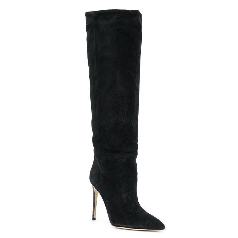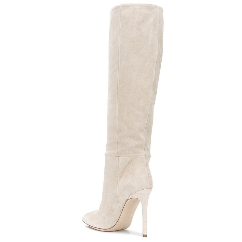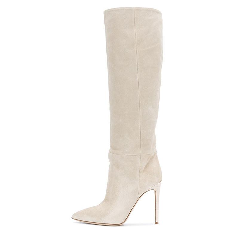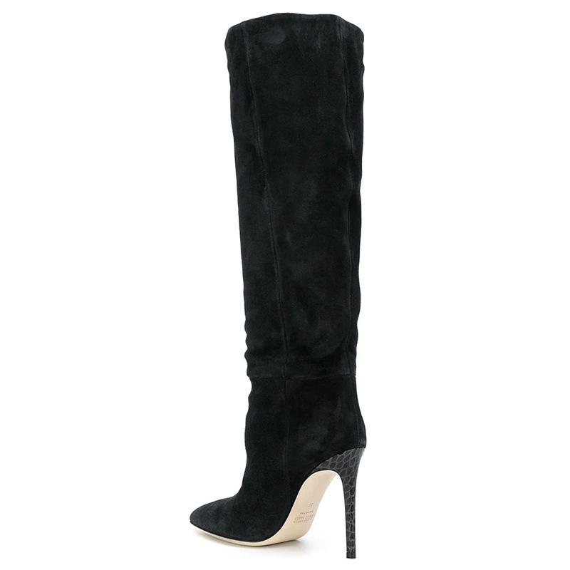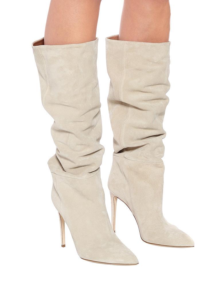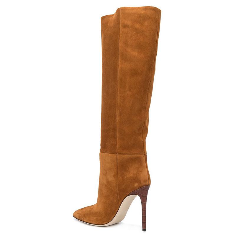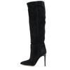 Botas altas hasta la rodilla con tacón fino de gamuza y cuero de comercio exterior transfronterizo europeo y americano, botas apiladas con mangas plisadas, botas altas hasta la rodilla que adelgazan.