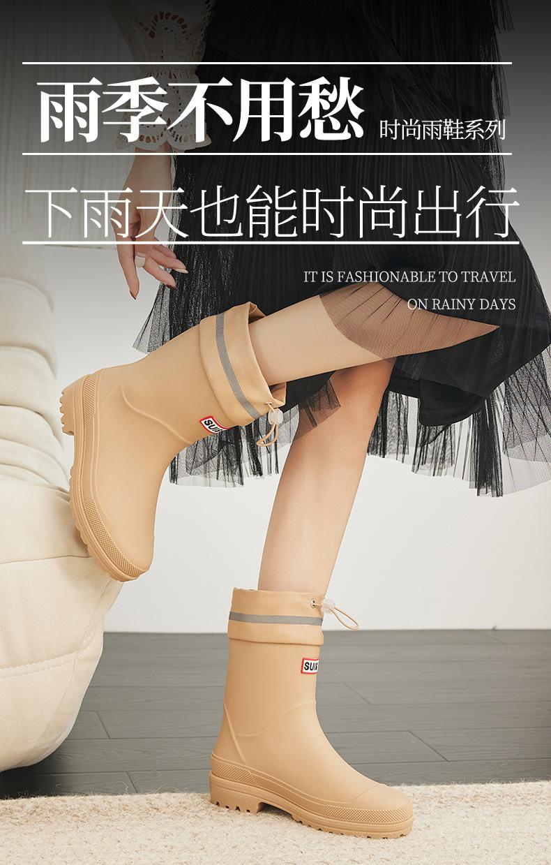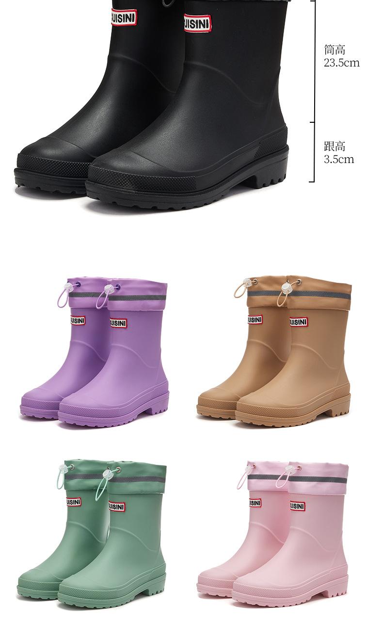 Zapatos de lluvia para mujer, calzado impermeable de tubo medio, para uso en exteriores durante las cuatro estaciones, para el lavado de autos, impermeables, antideslizantes, resistentes al desgaste y de goma.