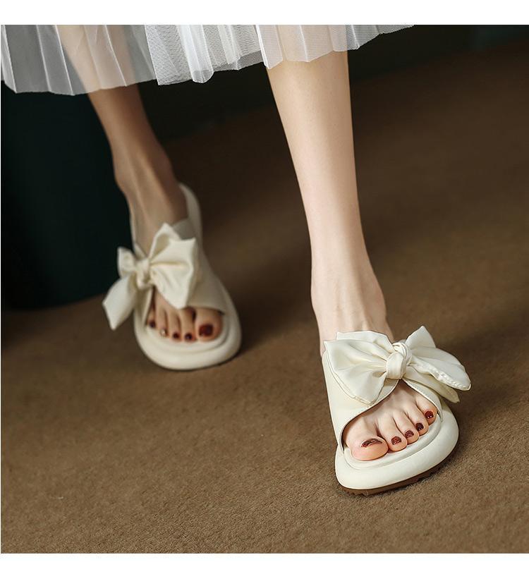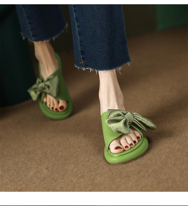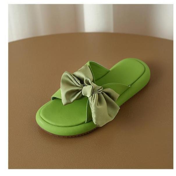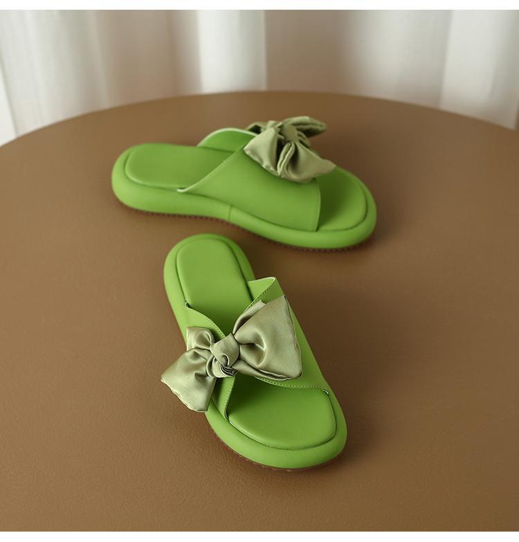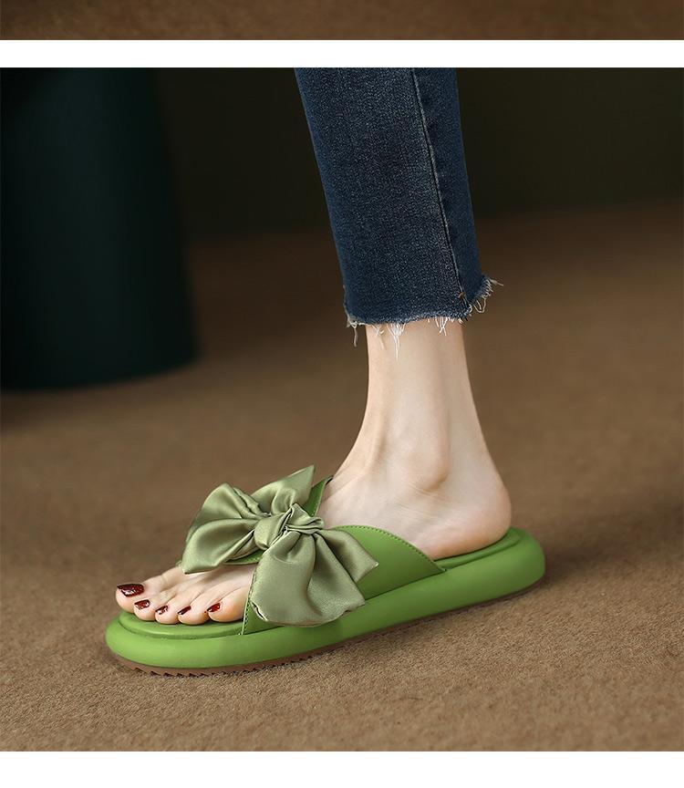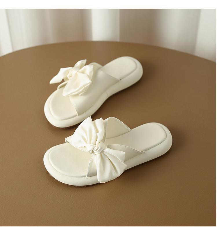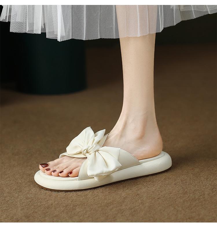 Sandalias planas de lazo de suela blanda 2025 Verano Nuevo Sandalias y pantuflas de plataforma para mujer para uso exterior Estilo de verano