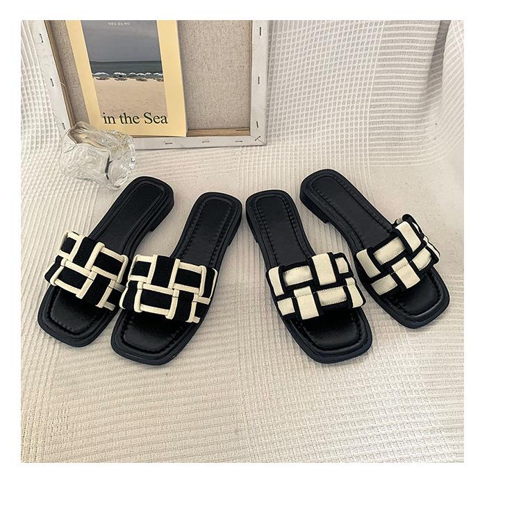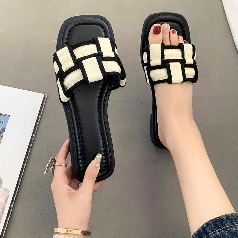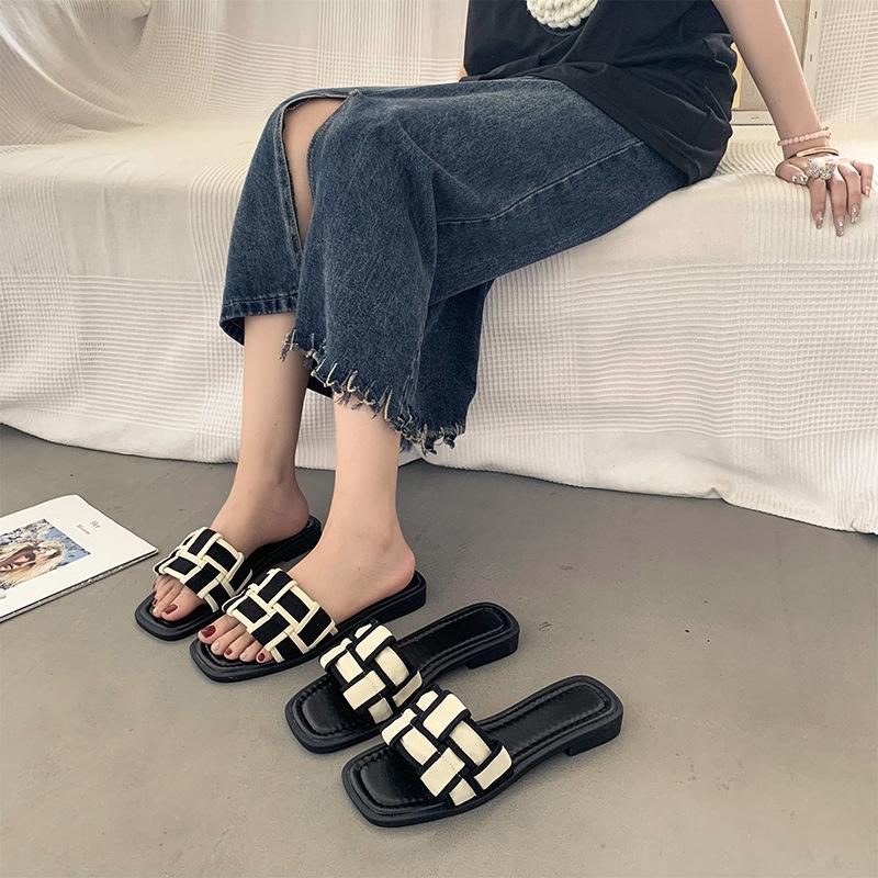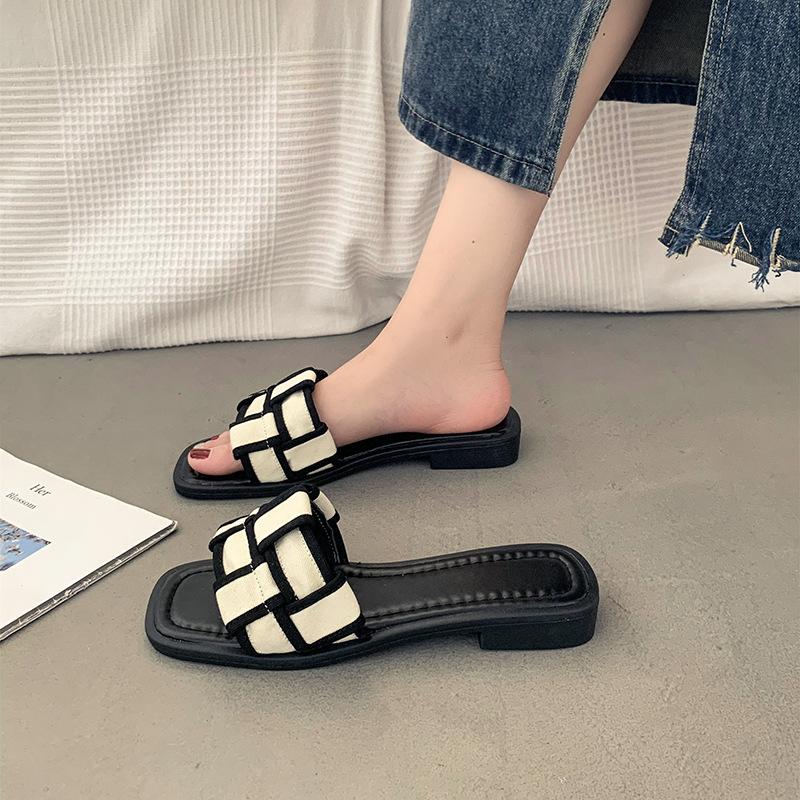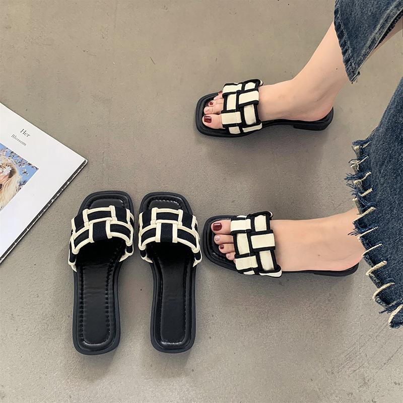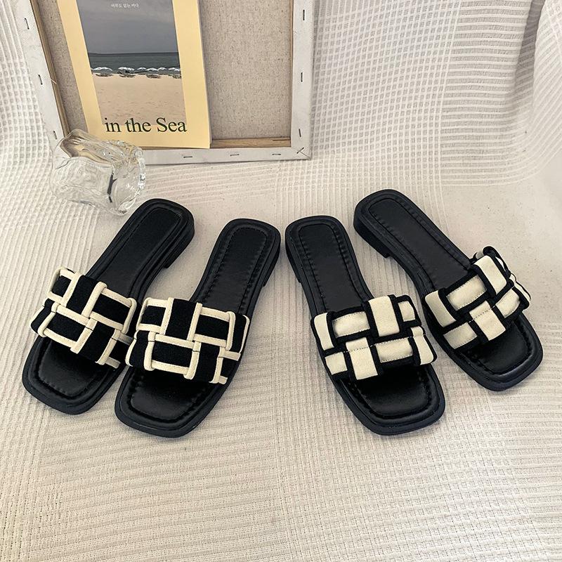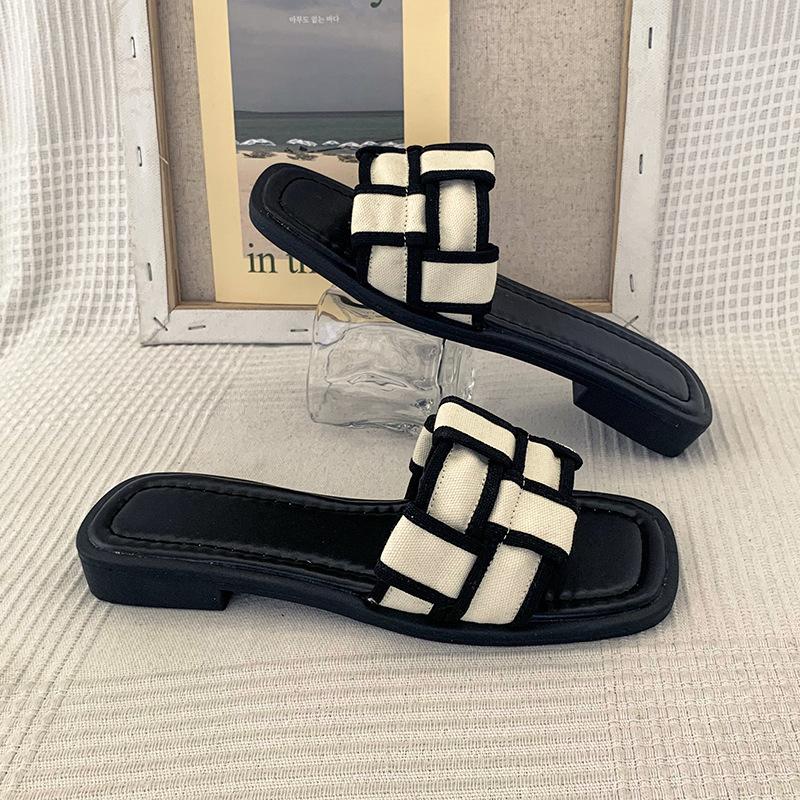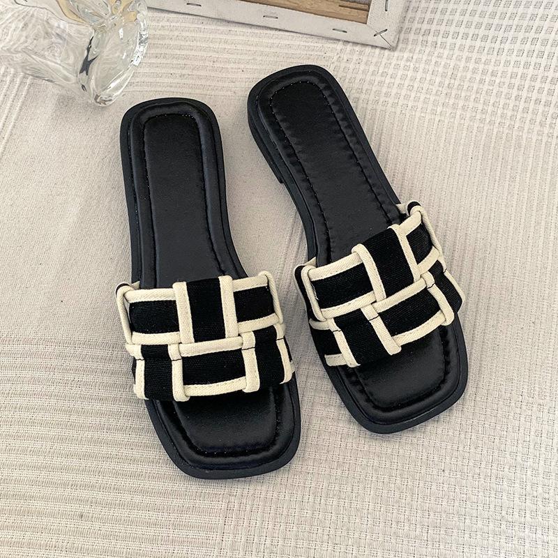 Zapatillas de Verano 2024 Nuevo Estilo Fondo Plano Moda Hogar Suela Suave Estilo Francés Playa Zapatillas Planas de Mujer