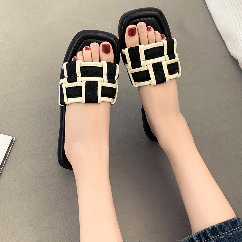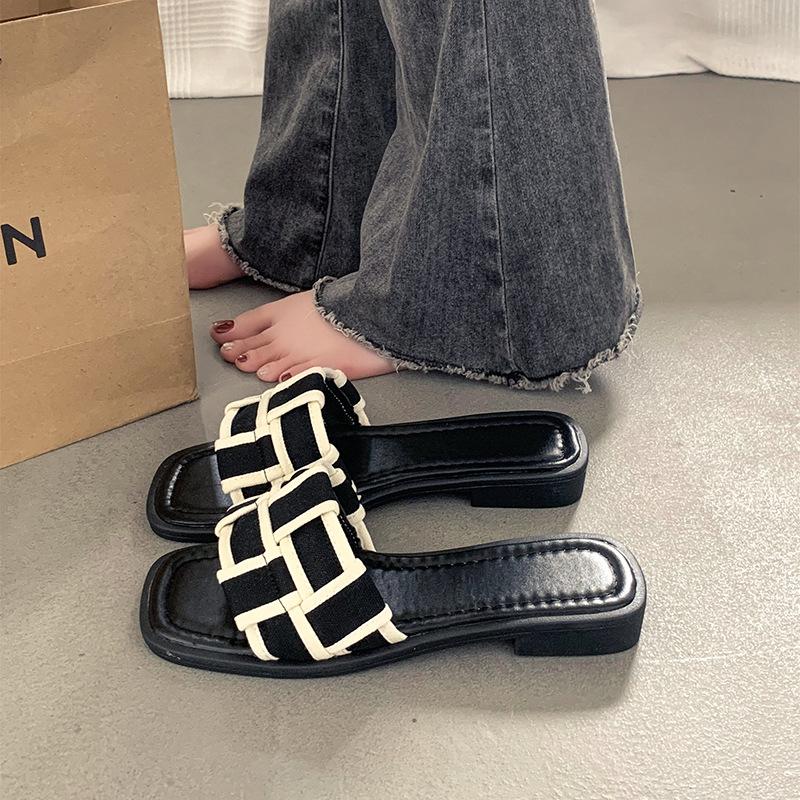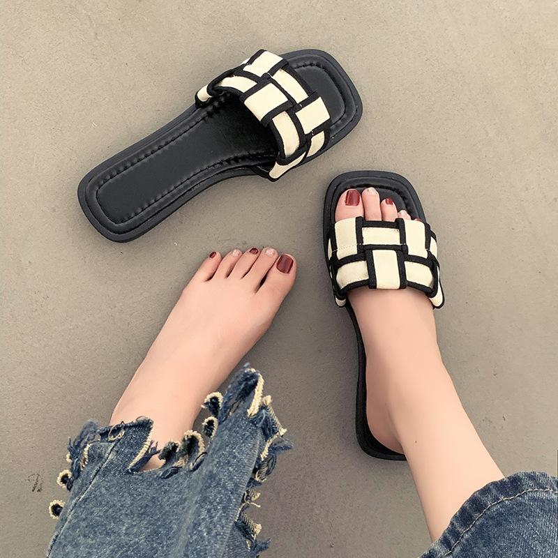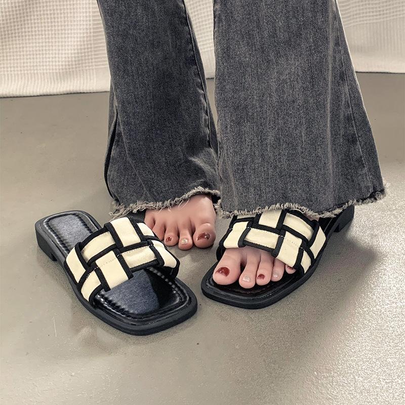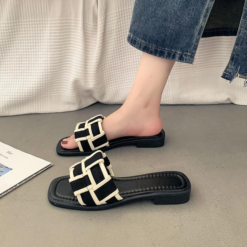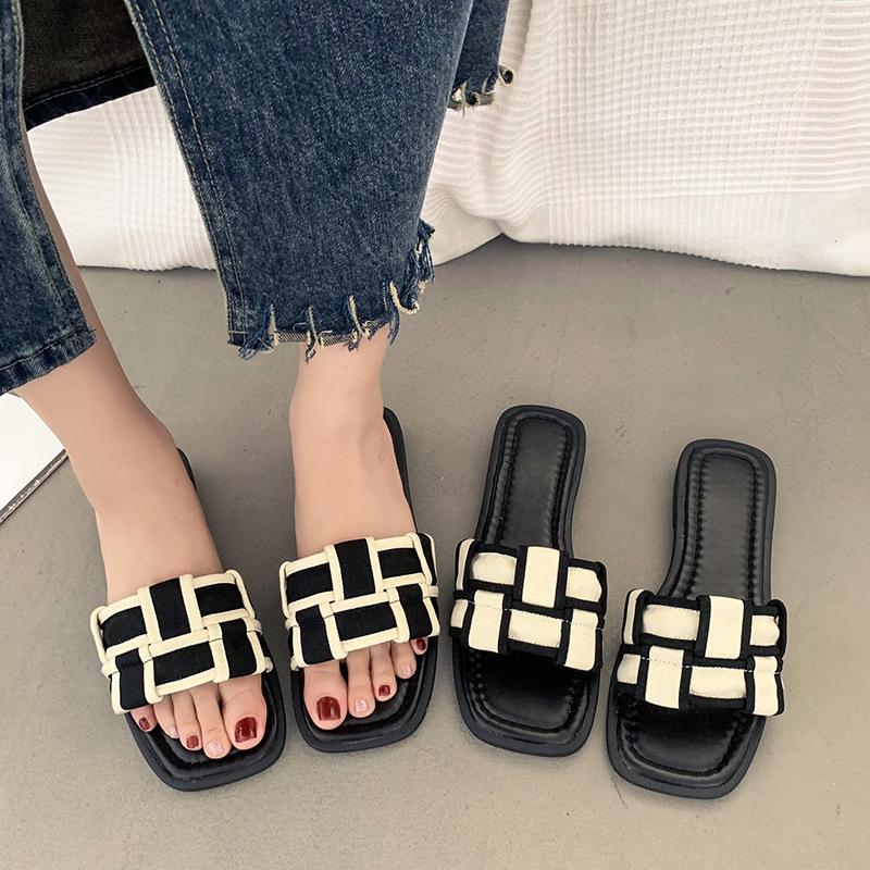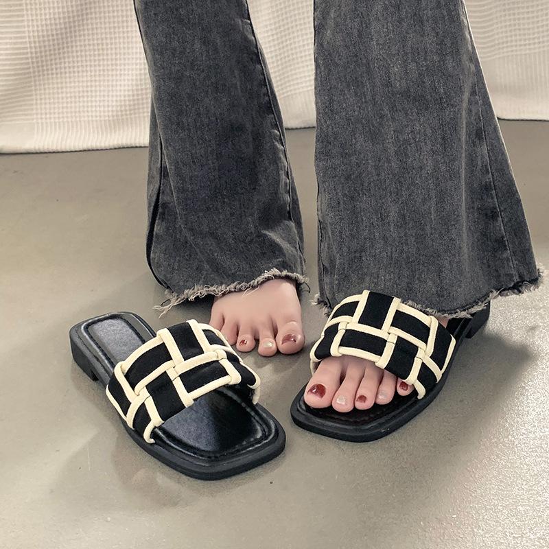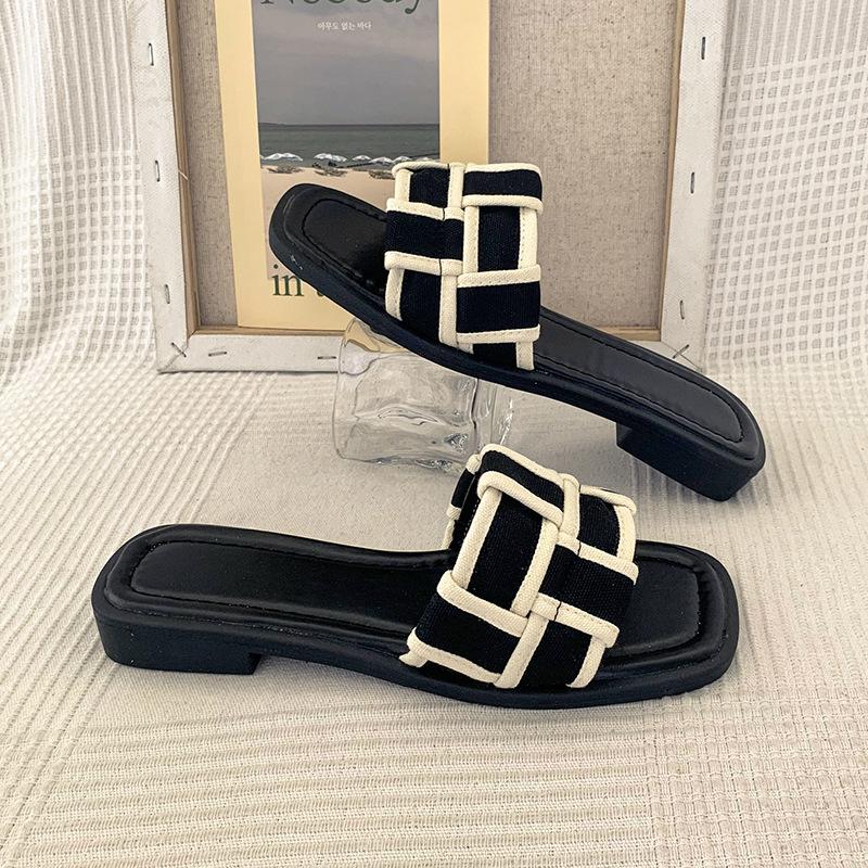 Zapatillas de Verano 2024 Nuevo Estilo Fondo Plano Moda Hogar Suela Suave Estilo Francés Playa Zapatillas Planas de Mujer