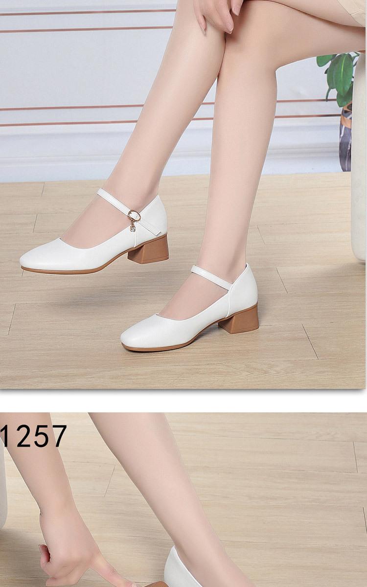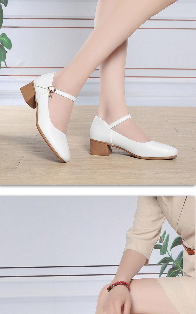 Compra Zapatos Blancos de Cuero Suave para Madre Zapatos de Un Botón Tacón Medio Suela Blanda Cómodos Zapatos de Mujer Zapatos para Mediana Edad Zapatos de Cuero para Mujer de Pala Baja al por mayor en Joom.pro