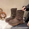 Botas cortas transpirables de tejido con mosca y forro polar de talla grande para comercio exterior europeo y americano, botas elásticas de punto con tacón grueso y puntiagudo para mujer, suministro deseado