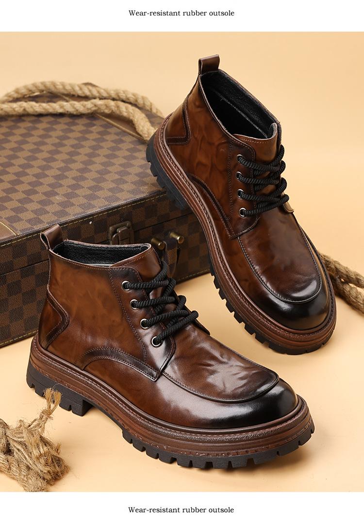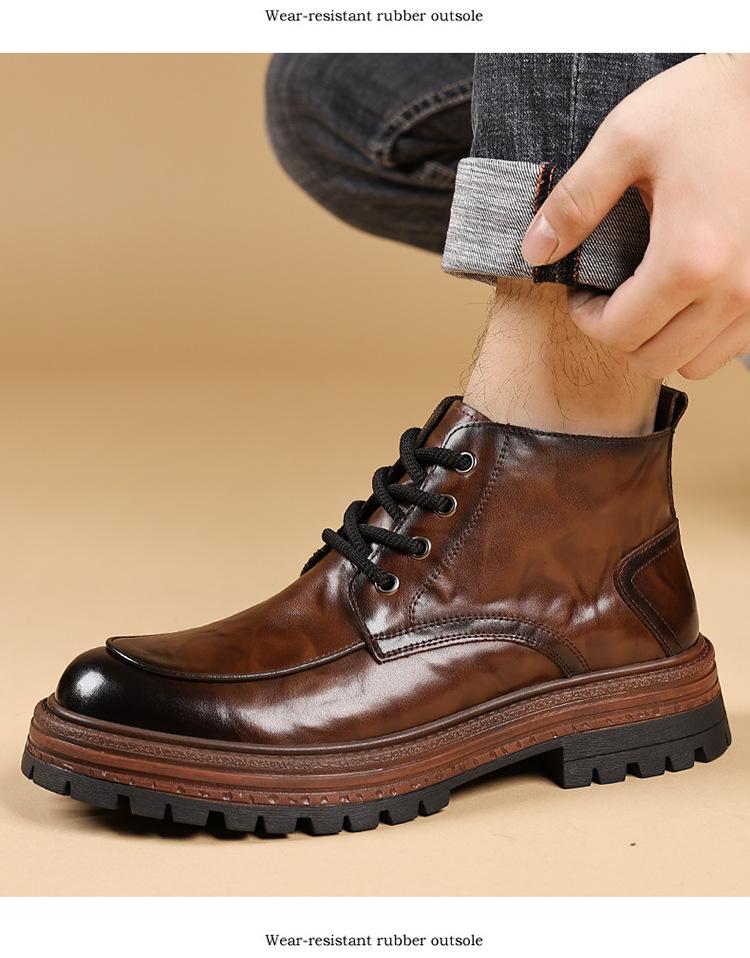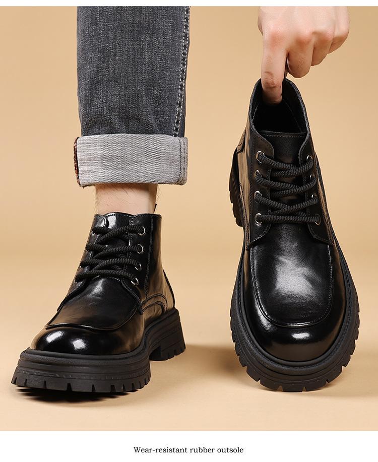 Botas para Hombre de Caña Media Invierno 2025 Nuevo Terciopelo Acolchado Cálido para Hombre de Caña Alta Británico Retro Lana Algodón Zapatos
