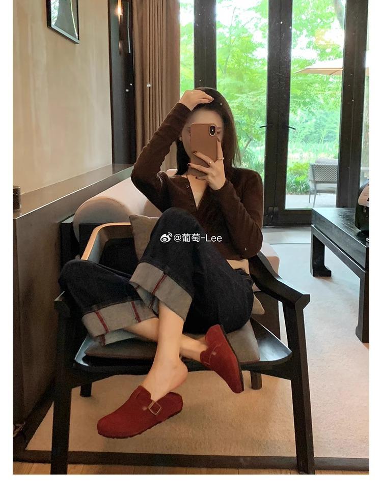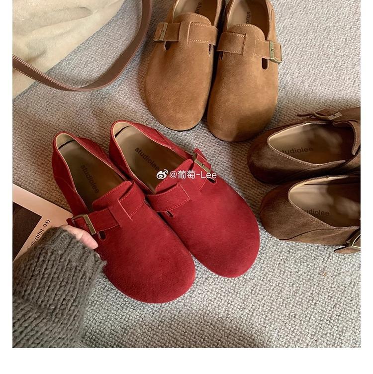 Versión de Piel de Vaca ~ Zapatos Slip-On de Cuero Genuino Estilo Mamá Uva con Hebilla en el Talón y Suelas Gruesas, Zapatos Casuales, Zapatos Birkenstock Flojos, a la Moda
