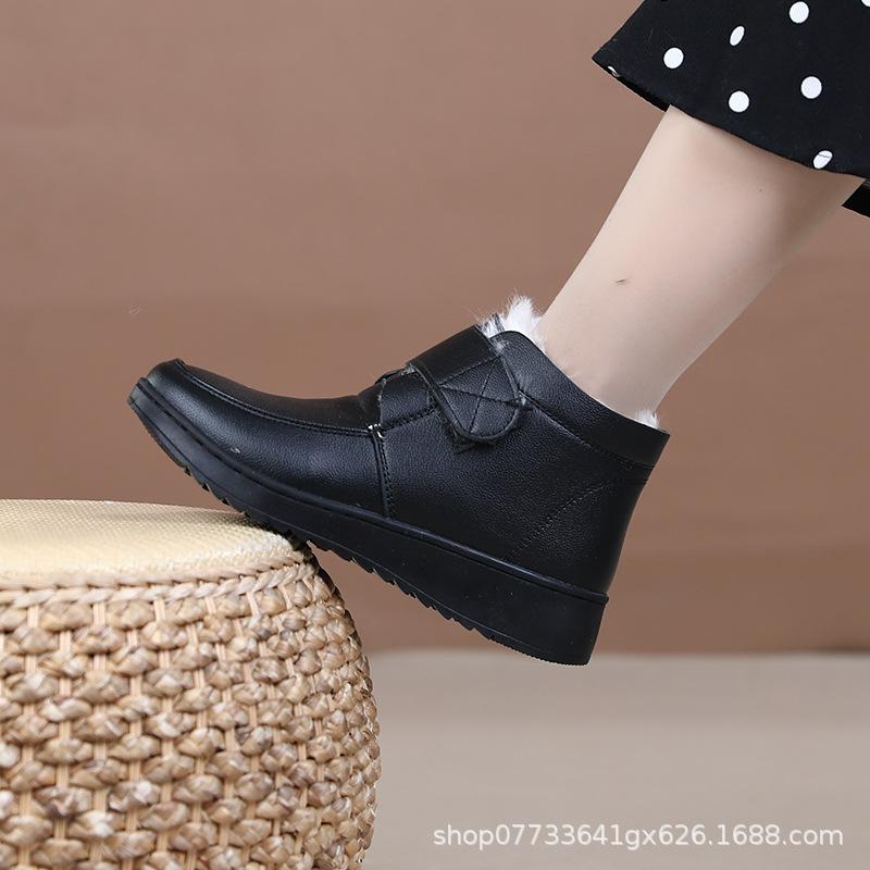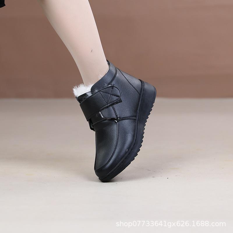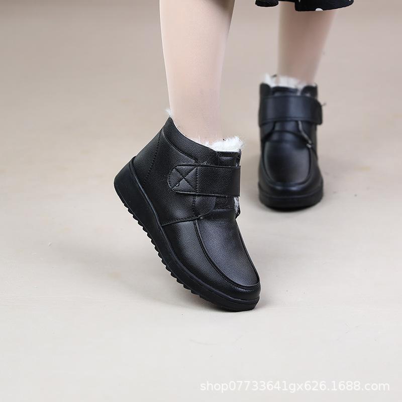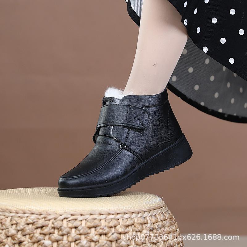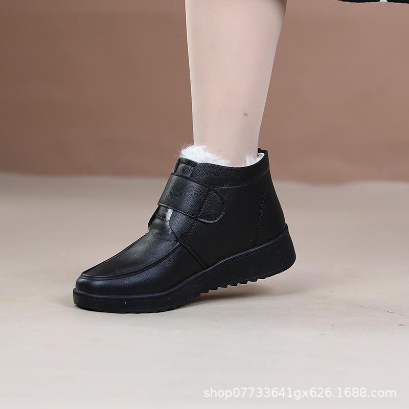 Zapatos de Invierno de Cuero de Lana Real para Mujeres Mayores Zapatos de Algodón Cálido Gruesos Botines Cortos con Suela Blanda Antideslizante con Forro Polar para Madres de Mediana Edad y Mayores