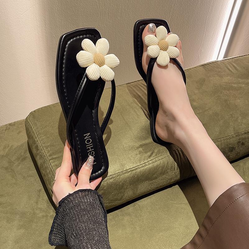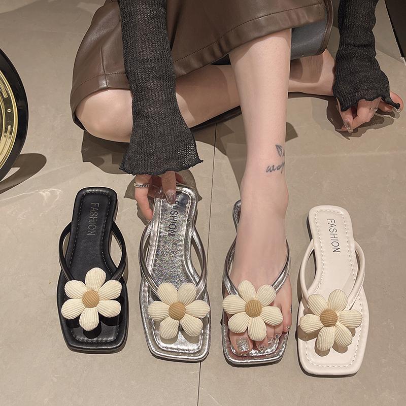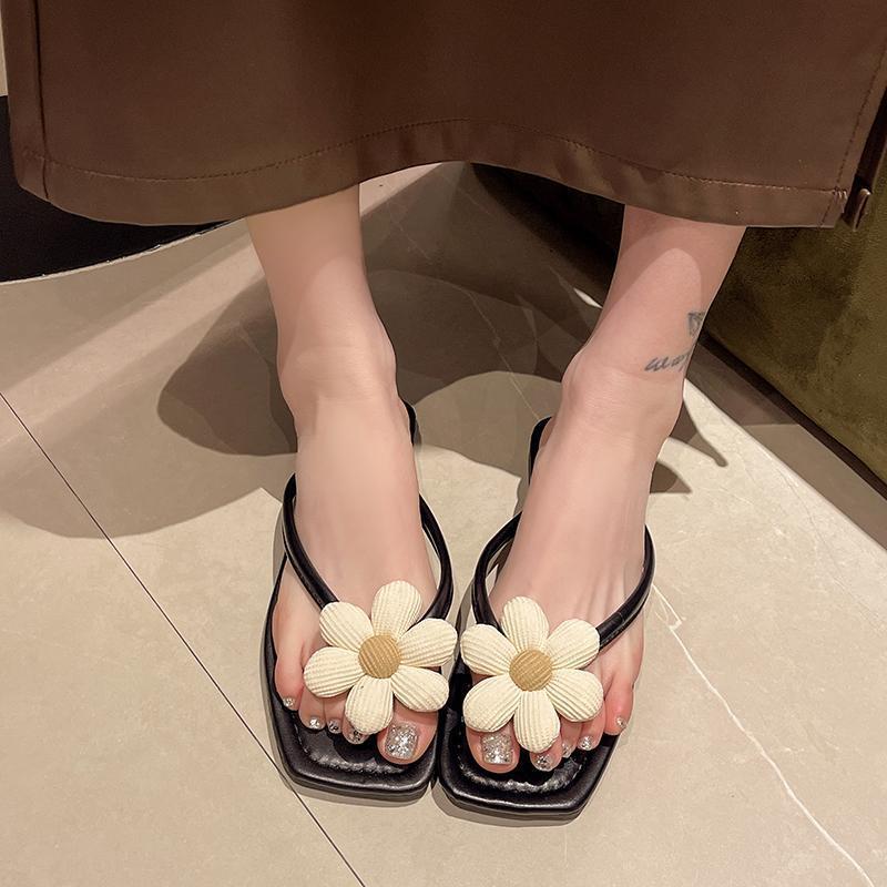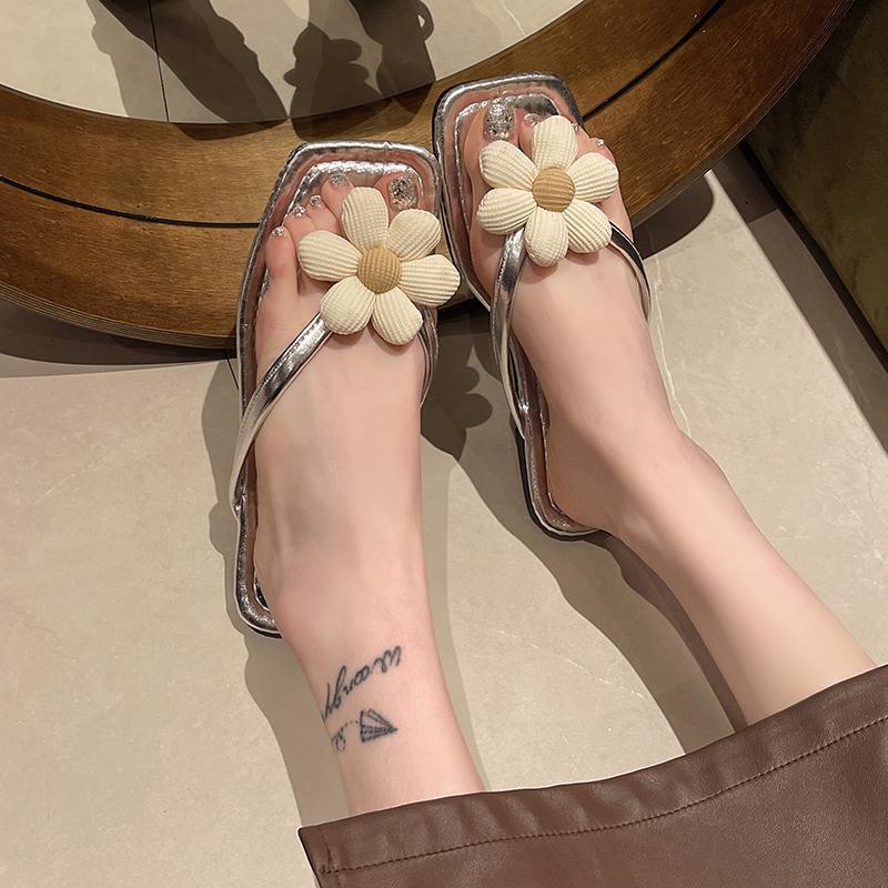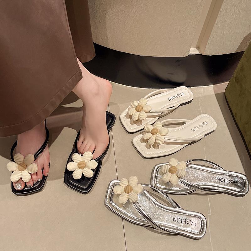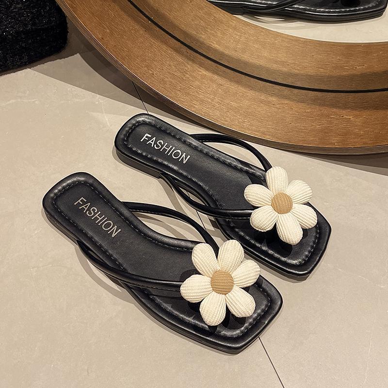 Chanclas Estilo Hada para Mujer Verano para Exterior Sandalias Planas de Flores 2025 Nuevas Zapatos de Playa para la Orilla del Mar