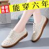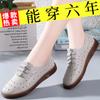Zapatos de Tela de Pekín Antiguo Zapatos de Cuero para Mujer Impermeables Antideslizantes Suela Suave Zapatos Planos Cómodos para Mamá Casual Trabajo Zapatos Individuales
