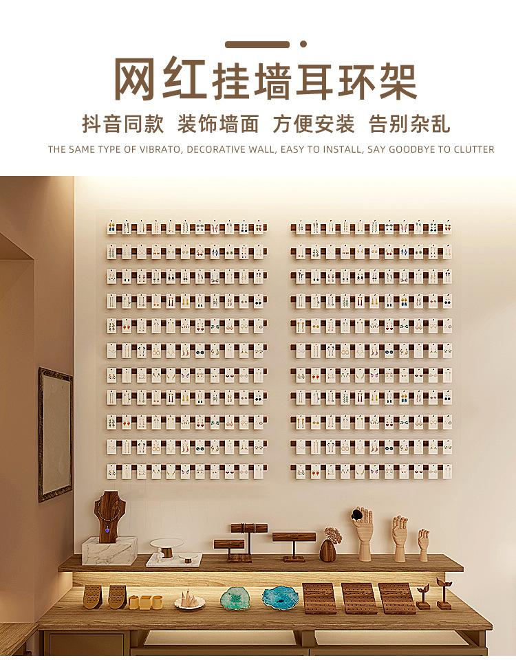 Exhibidor de Aretes Estante Exhibidor Colgante de Pared Tira de Madera Tienda de Joyería Joyería Aretes Especiales Aretes Almacenamiento de Pared Estante Exhibidor