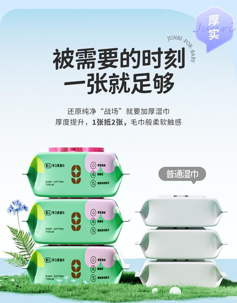 Toallitas Húmedas Junri Baby para Manos y Boca Especiales 80 Toallitas con Tapa Bolsa Grande Bebé Especial Familia Paquete Asequible