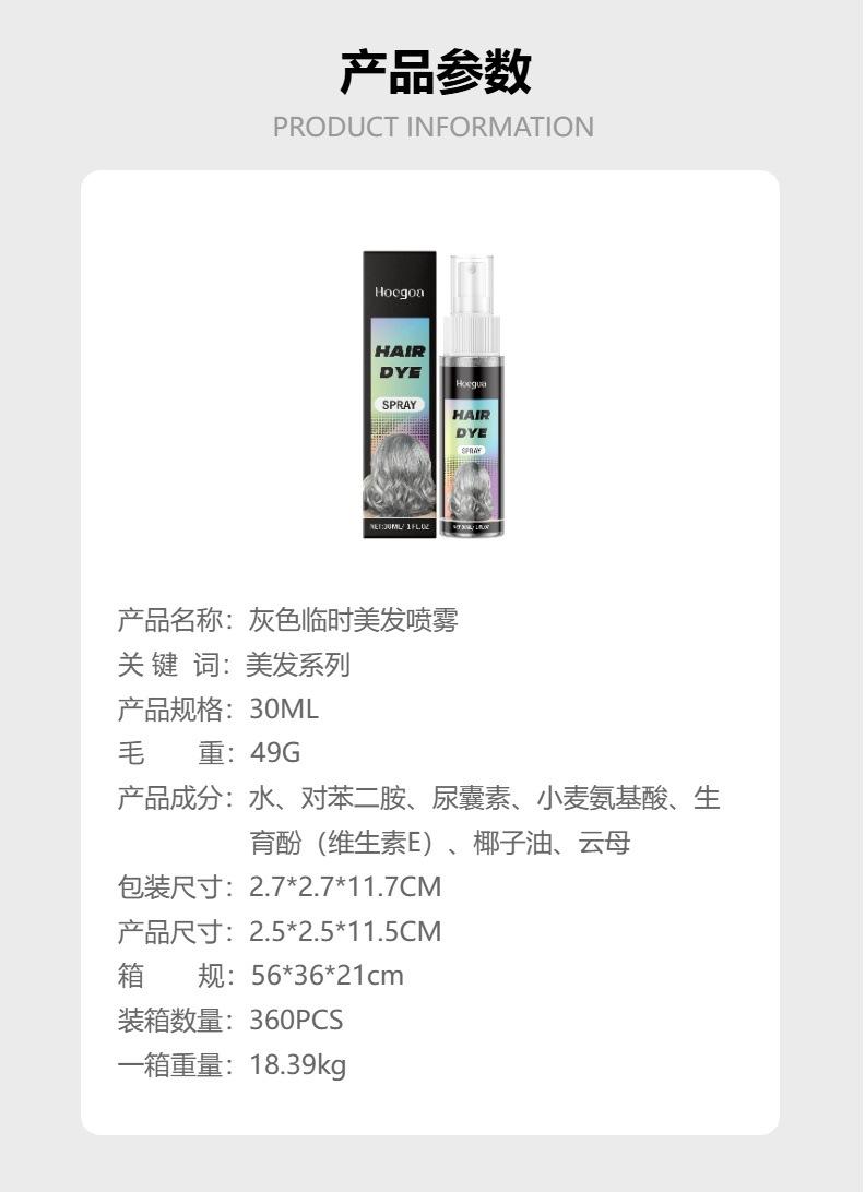 Spray temporal para cabello gris HOEGOA, color natural suave, coloración del cabello, moda, belleza del cabello