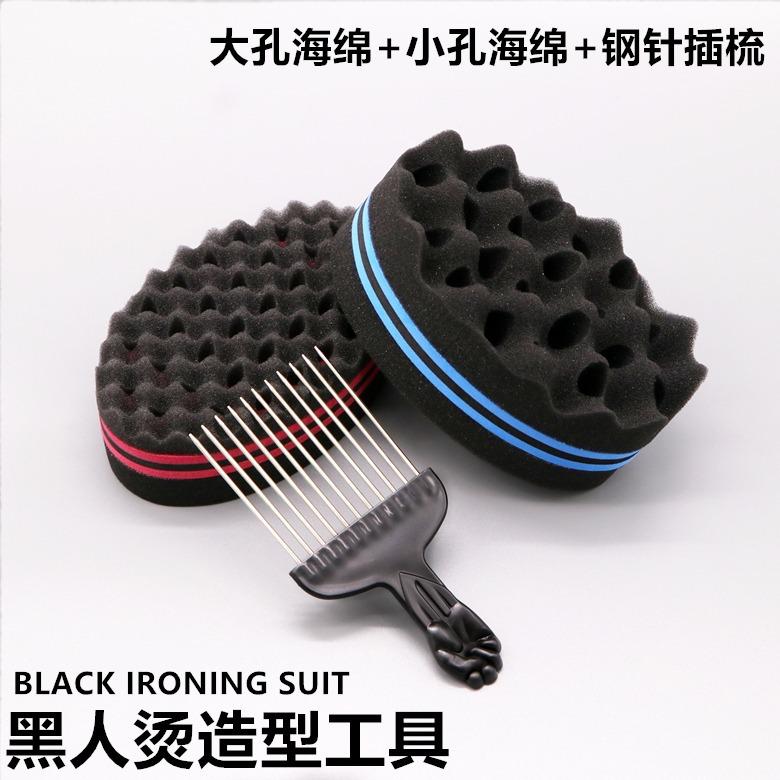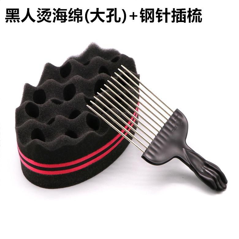 Big and small hole black perm sponge "black" + steel fork comb